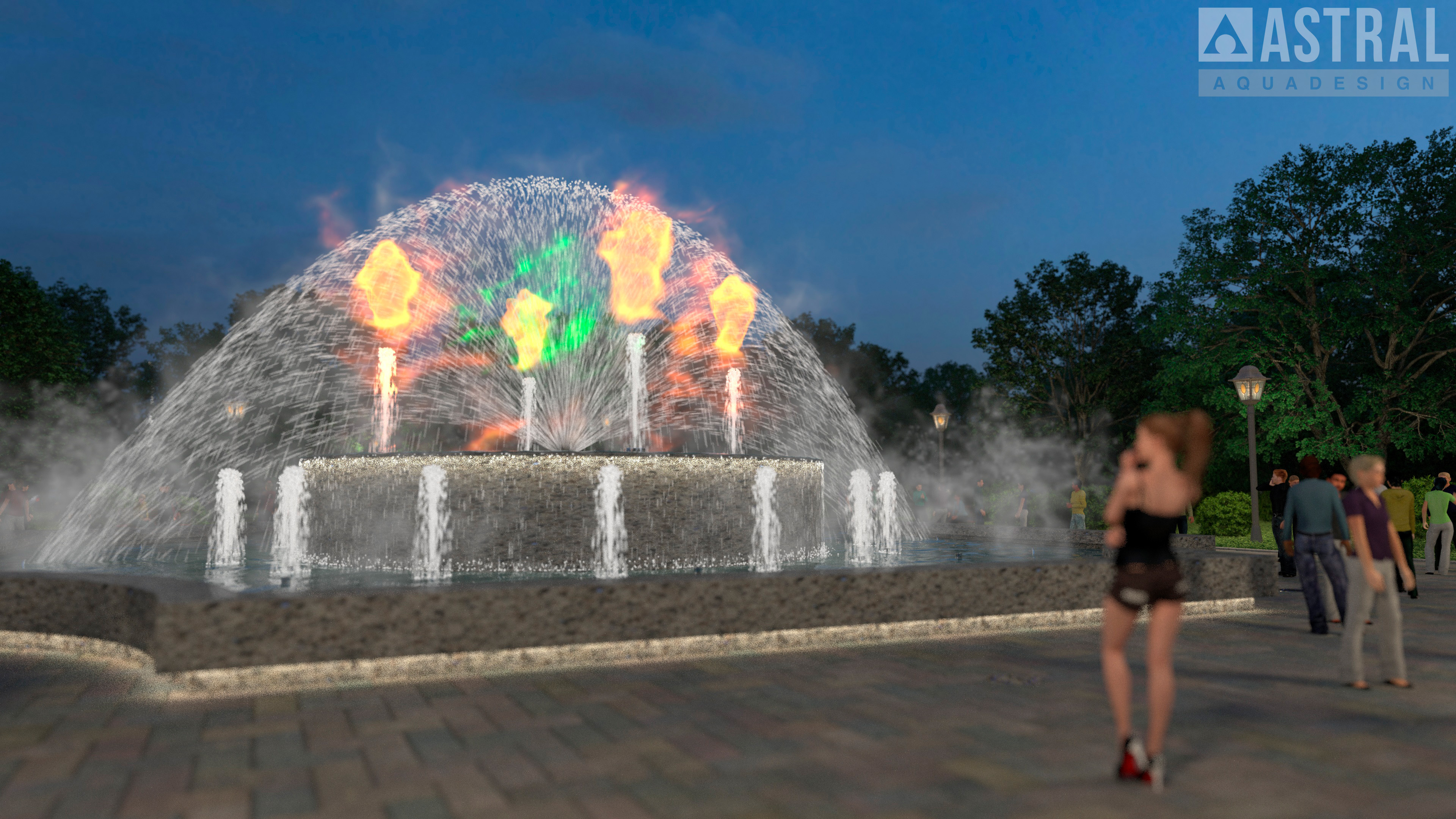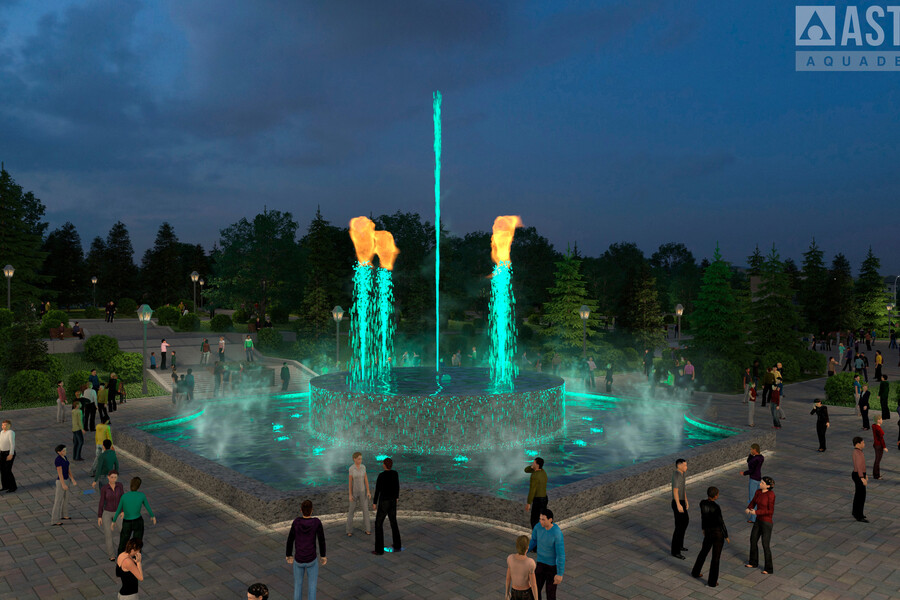 Комплекс музыкальных фонтанов с Огнем и Водным экраном 20х20 м, г. Армавир (Краснодарский край)
