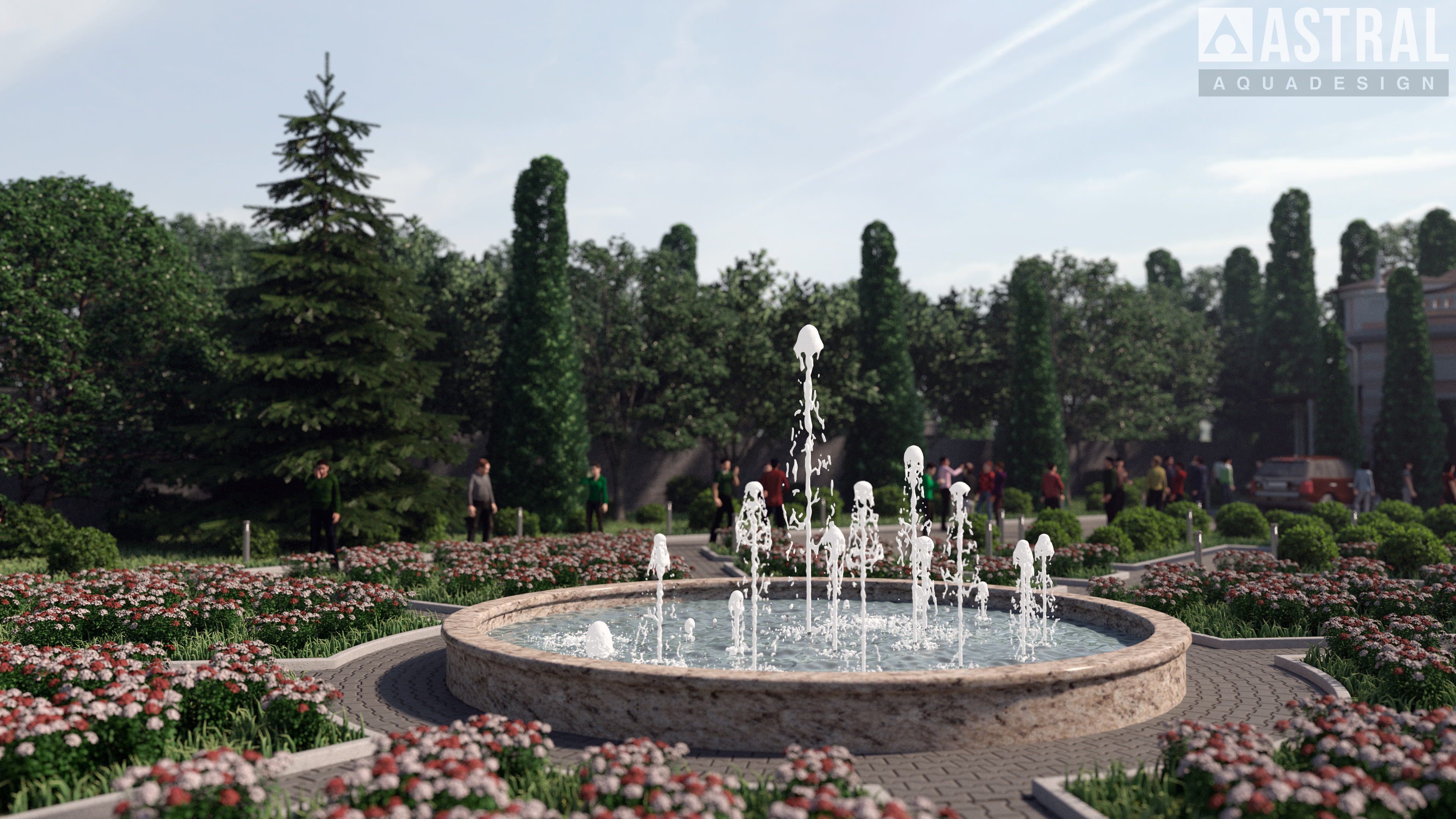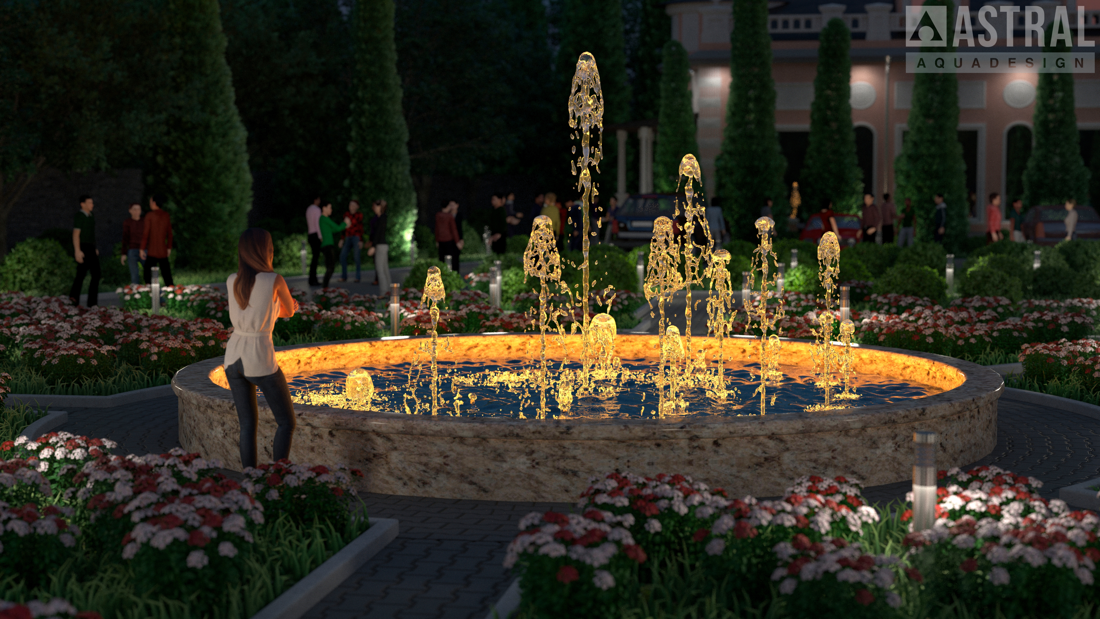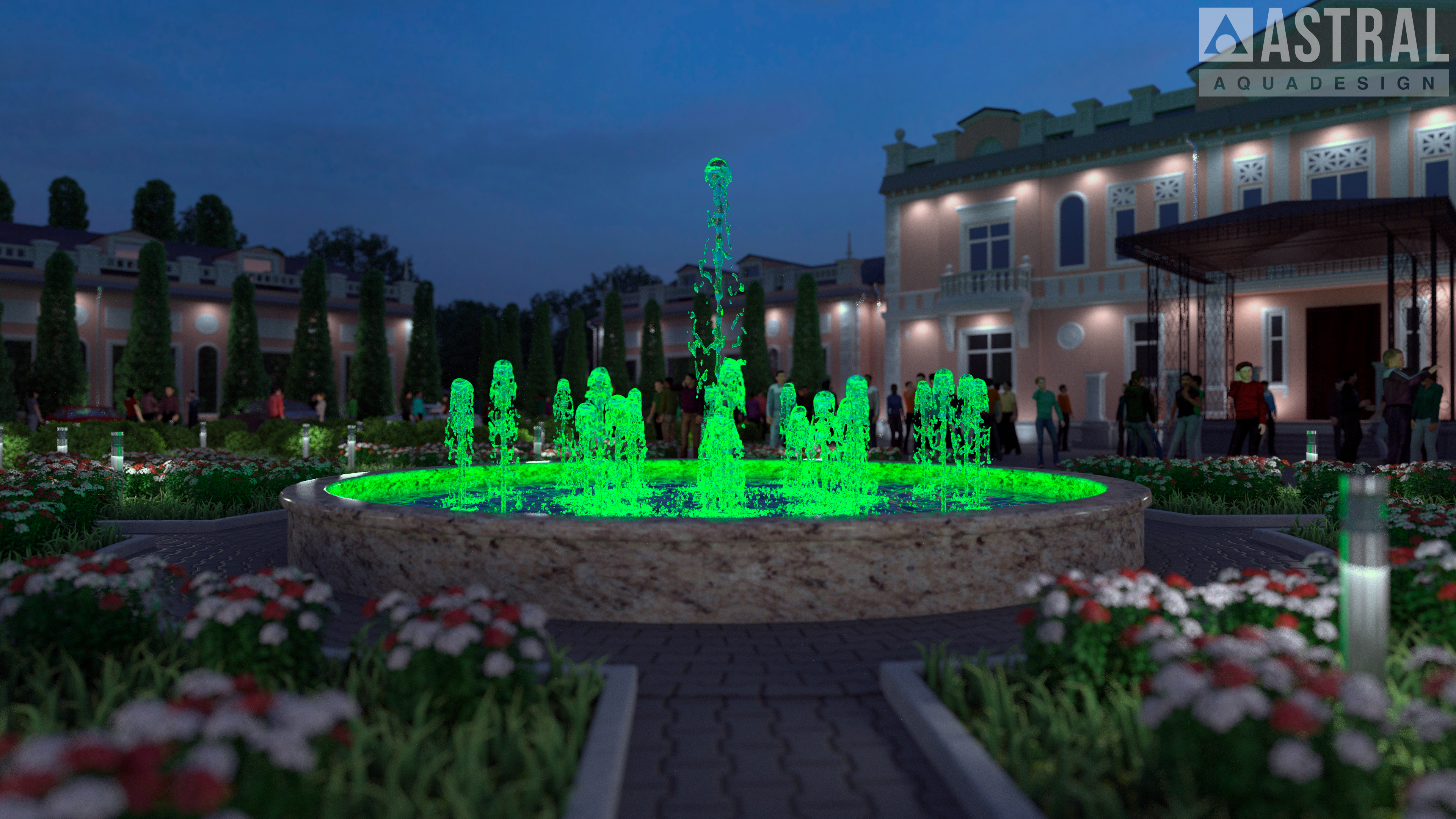 Круглый музыкальный фонтан диаметром 7,0 метров на территории усадьбы, г. Тверь