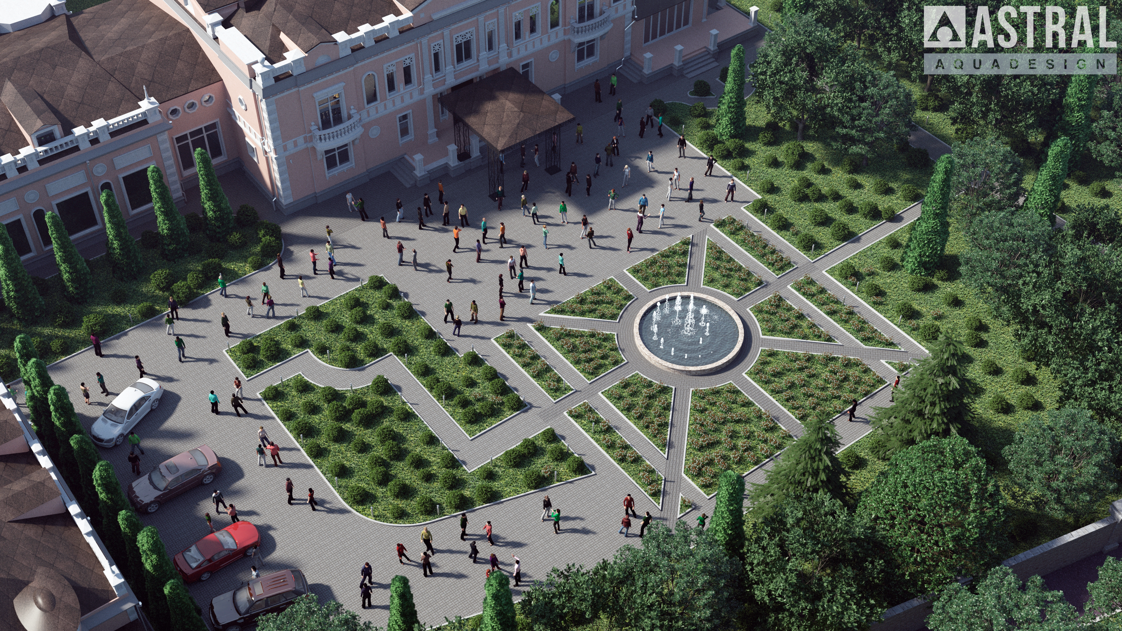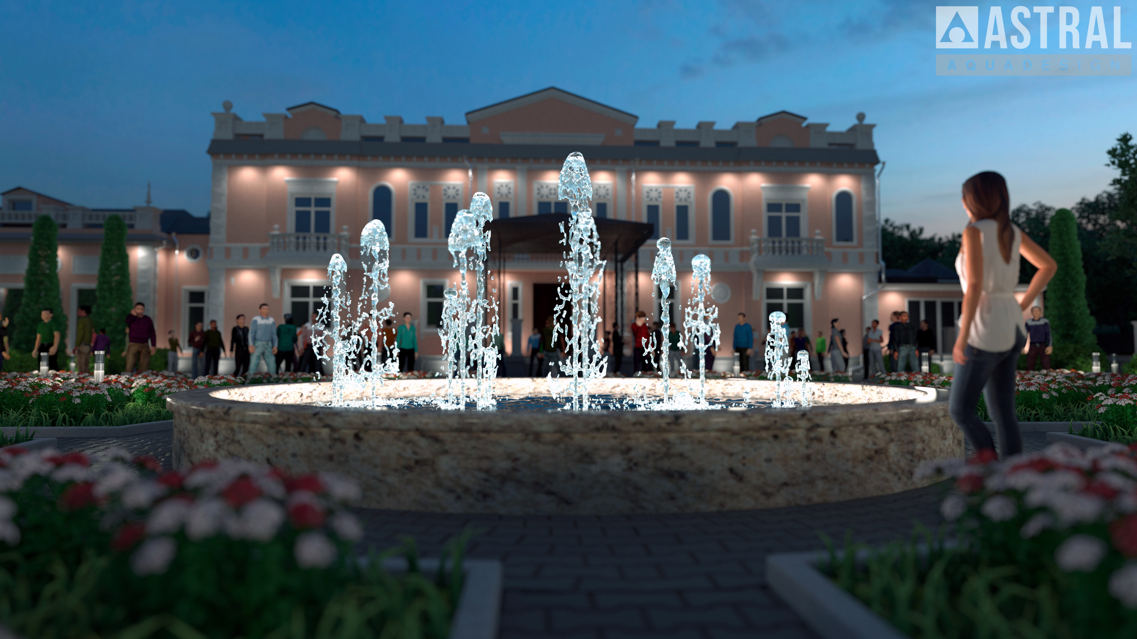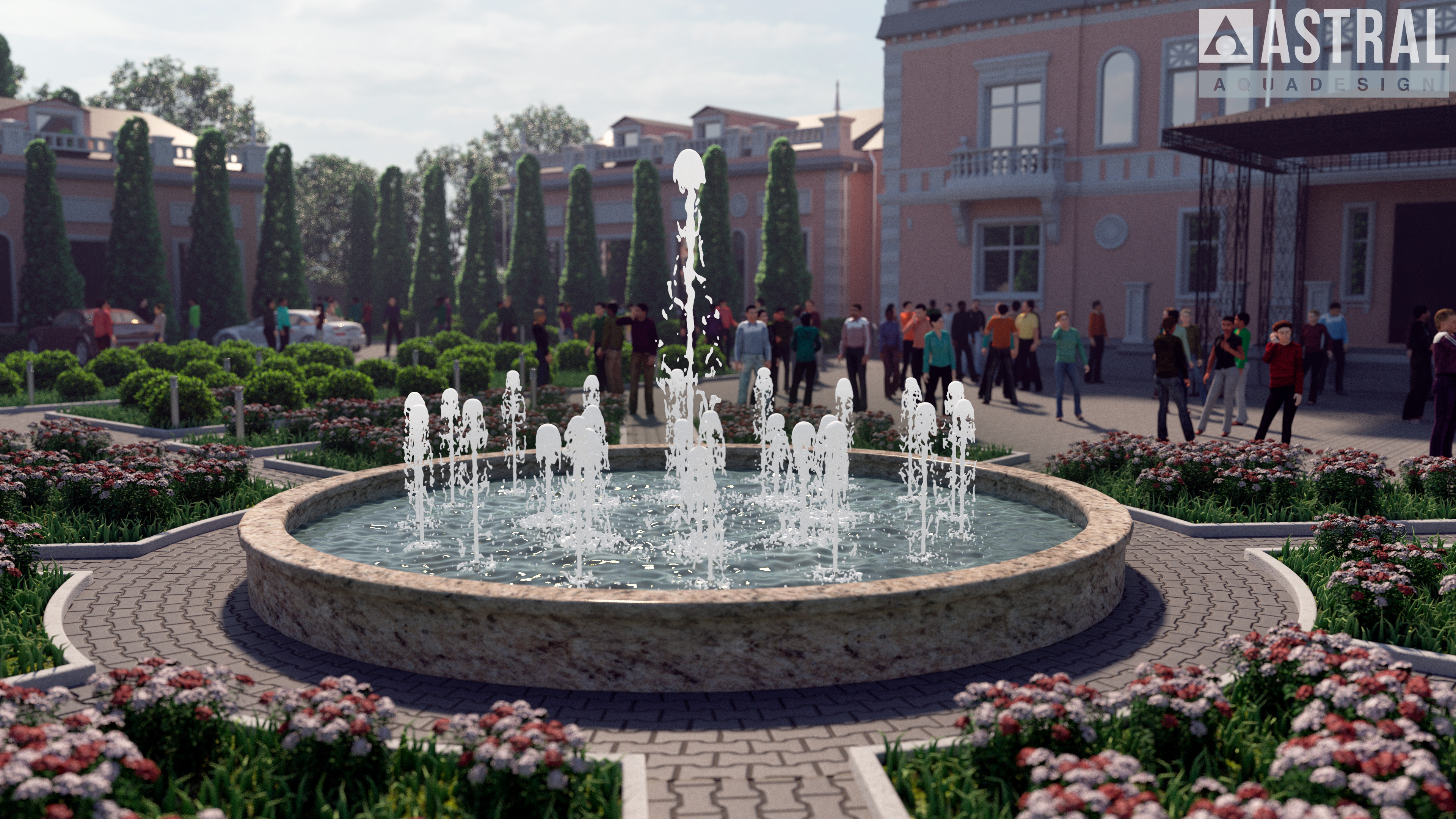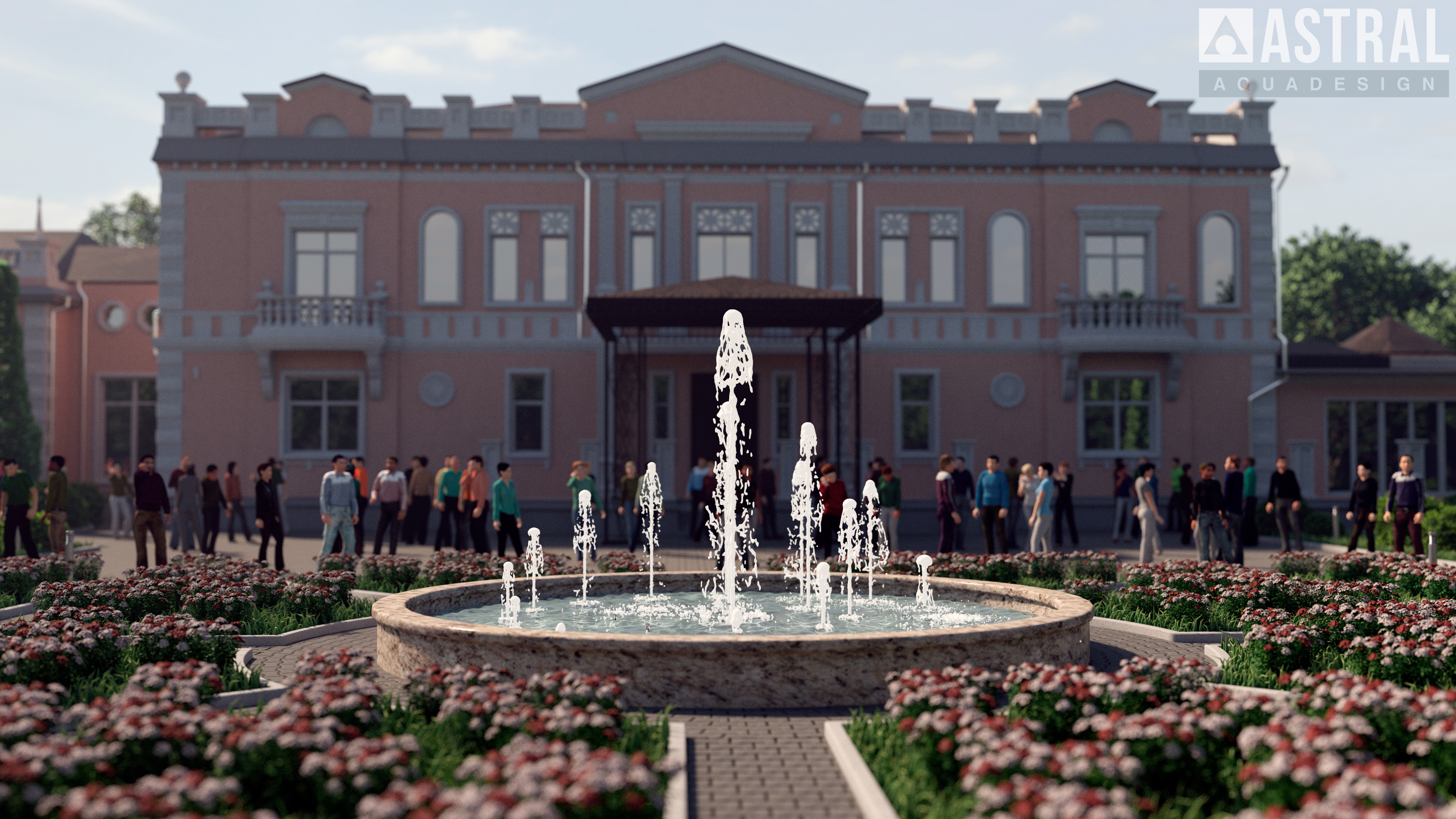 Круглый музыкальный фонтан диаметром 7,0 метров на территории усадьбы, г. Тверь