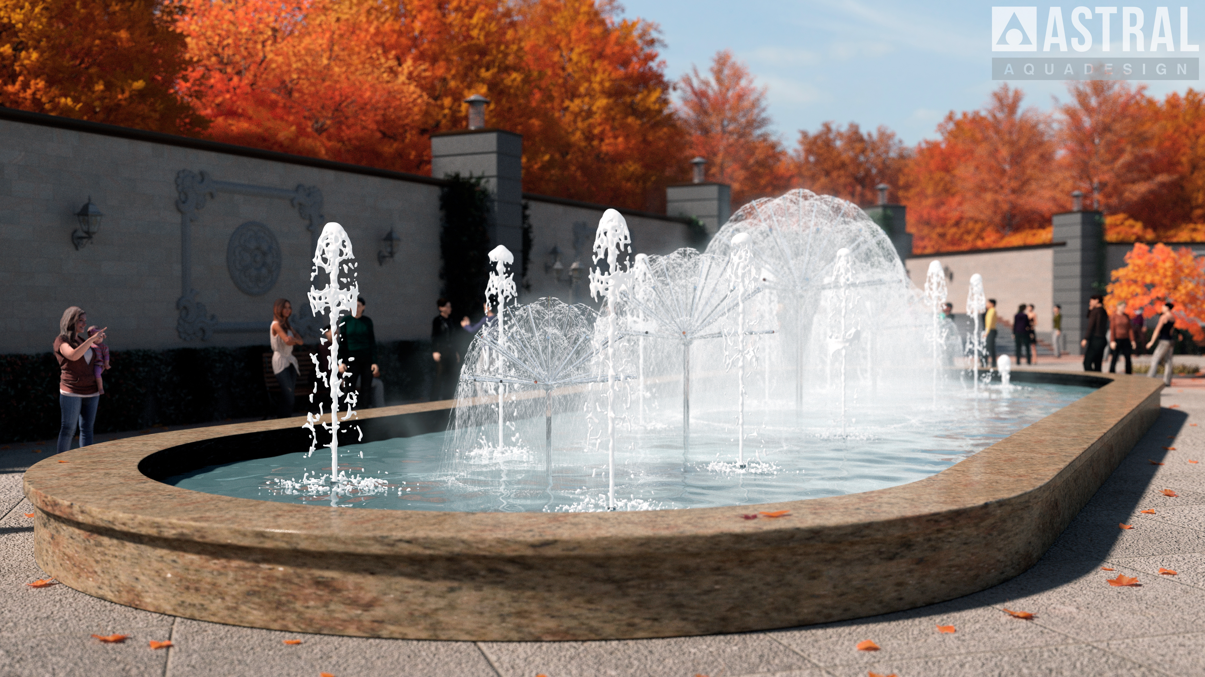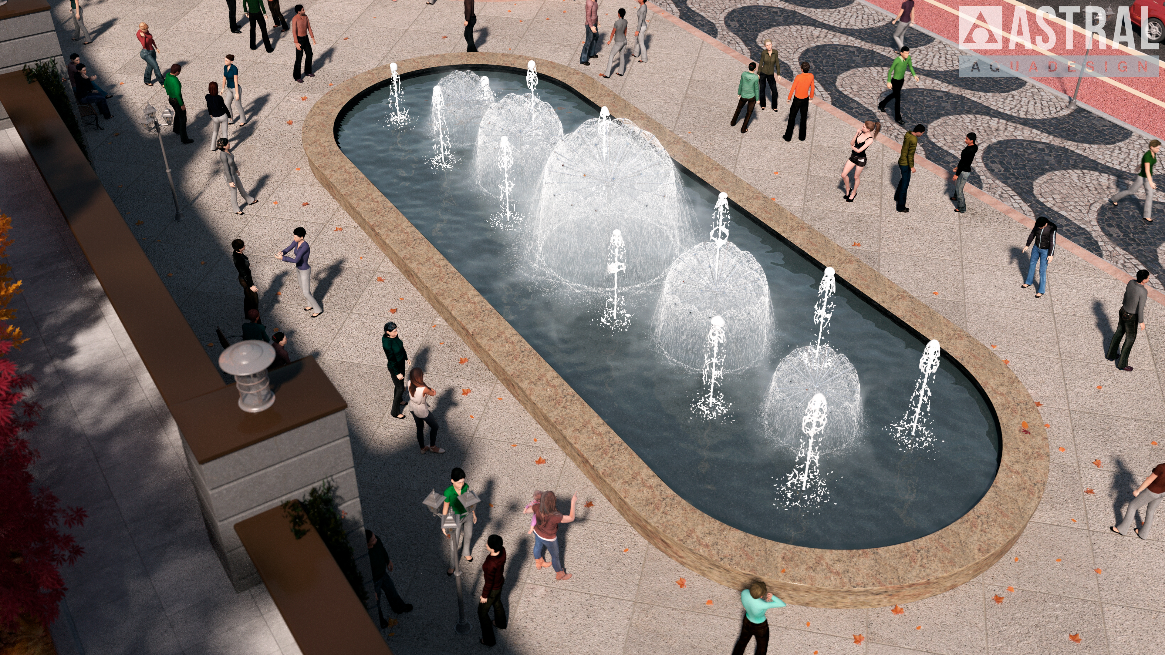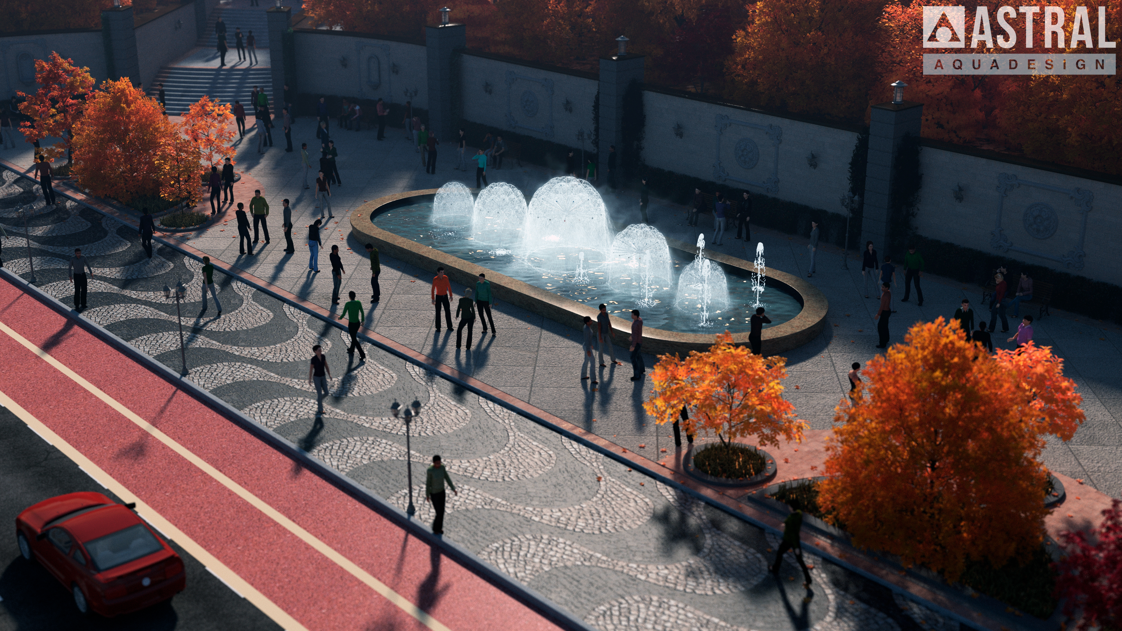 Габаритные размеры фонтана составляют 15 х 5 метров, высота пенных струй до 1,5 метров.