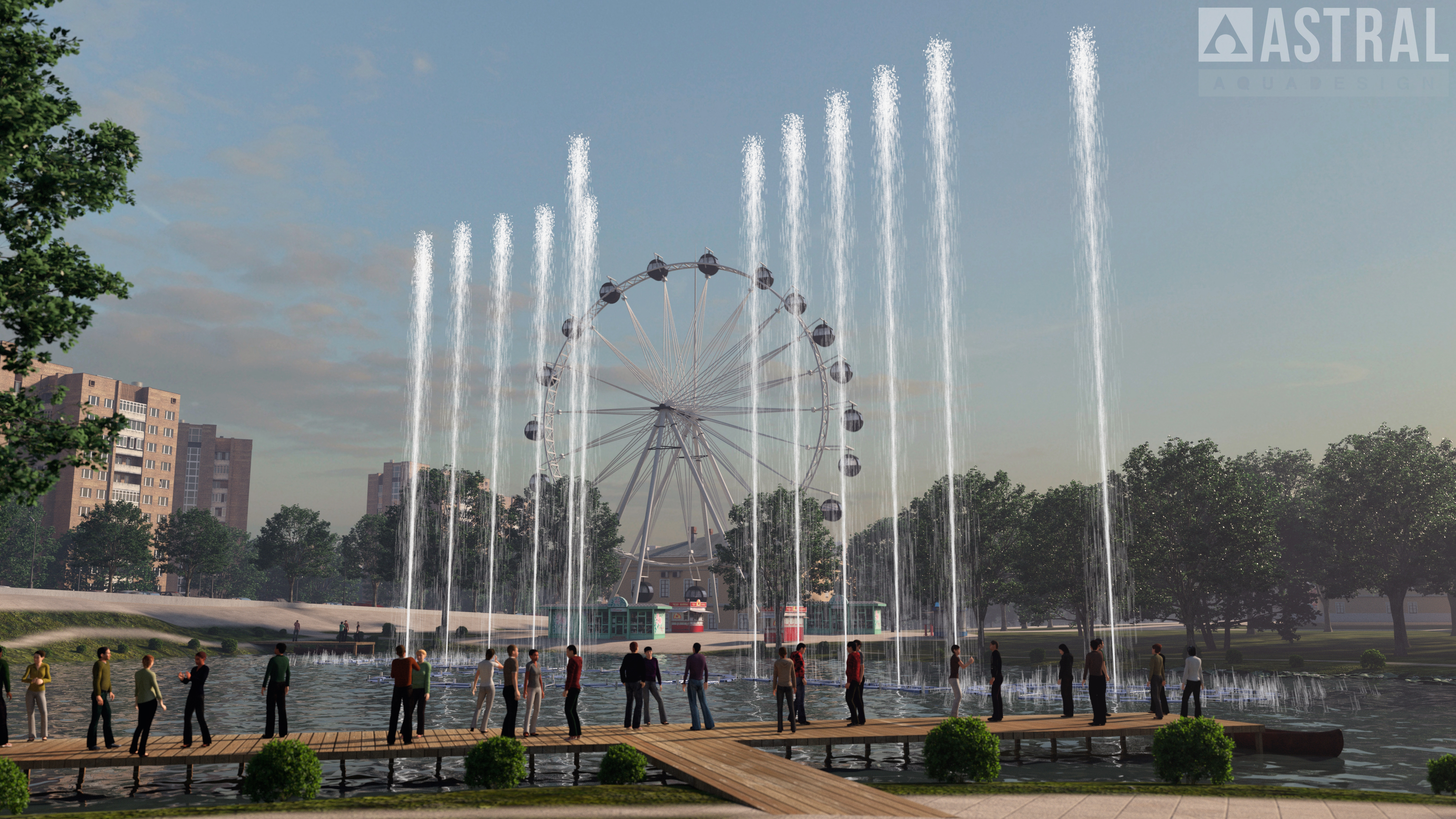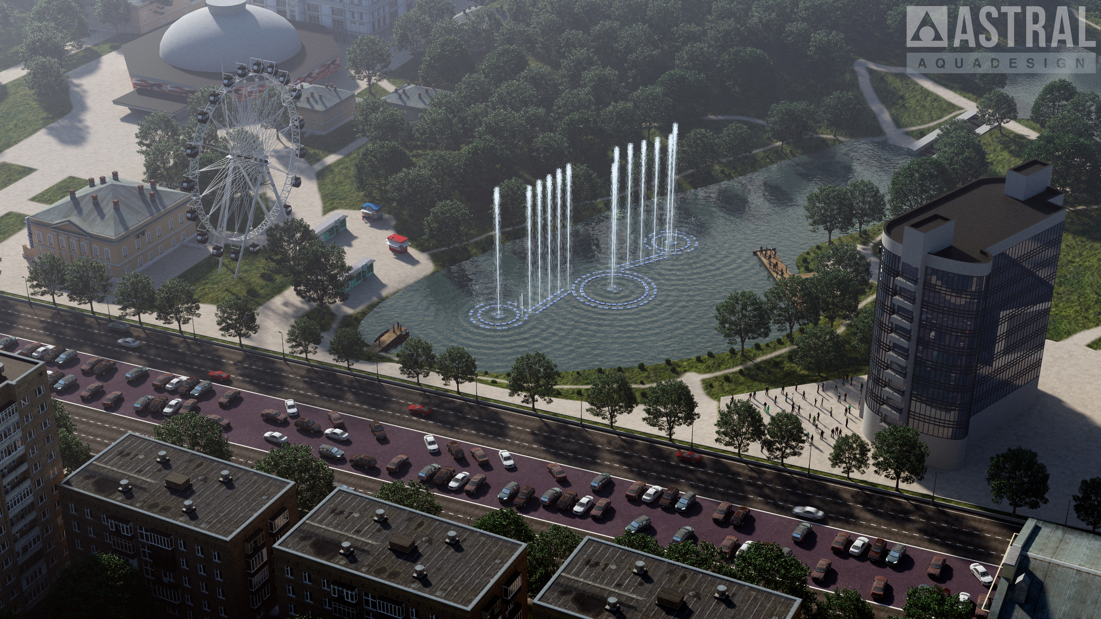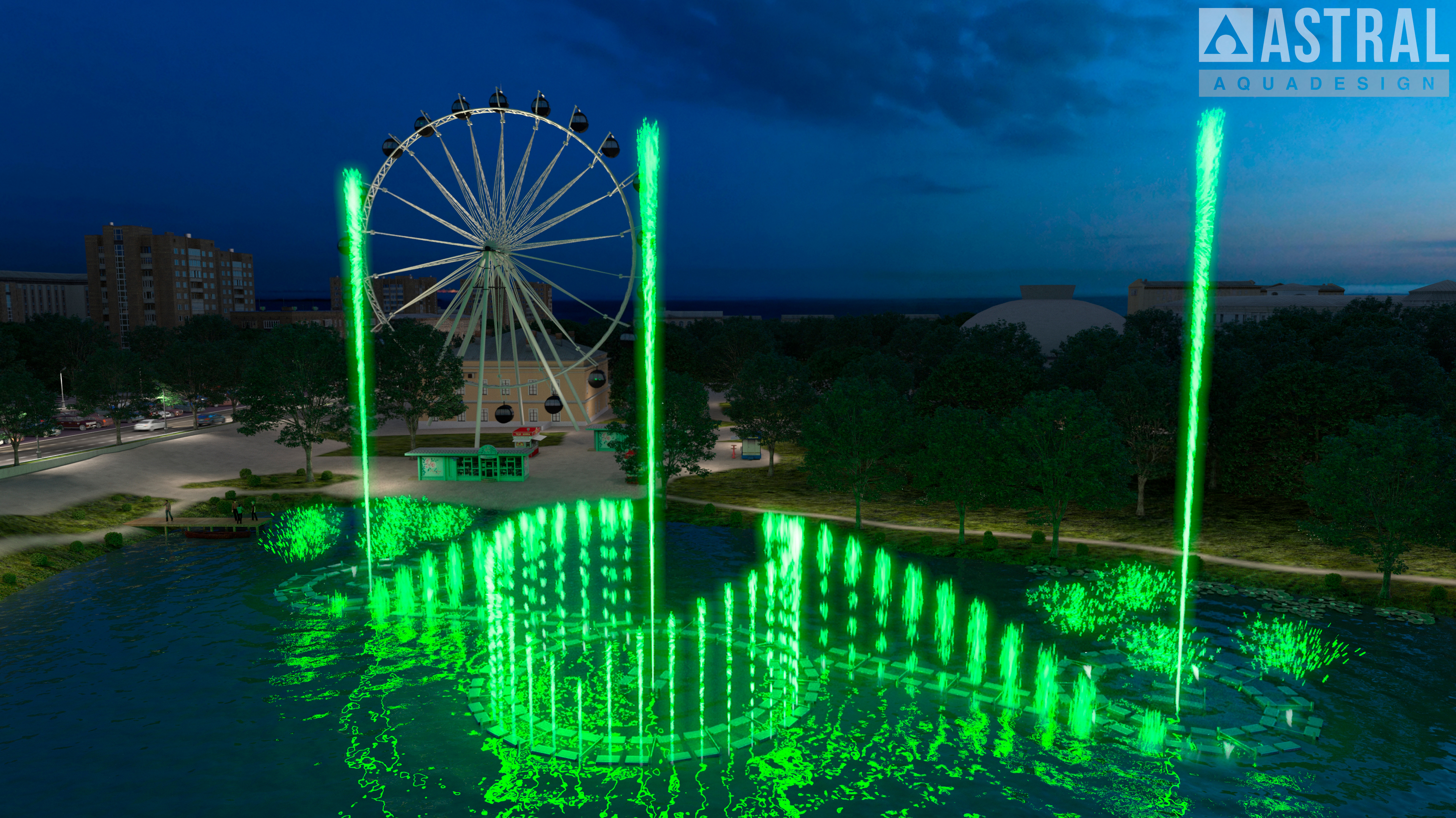 Контур 7 из 20 каналов управления: 10 «балерин» по 3 форсунки в каждой (30 струй) высотой до 8,0 м;