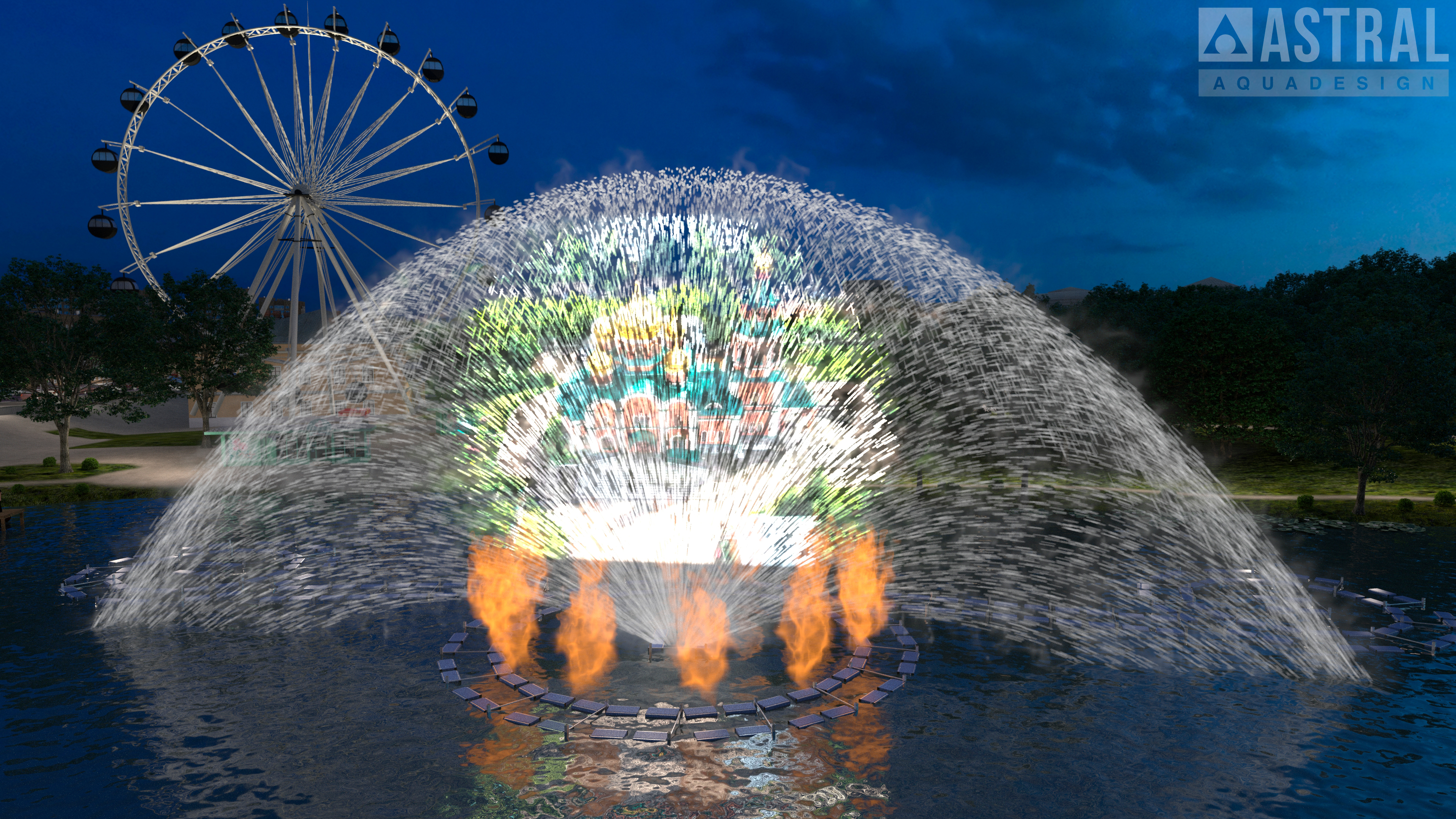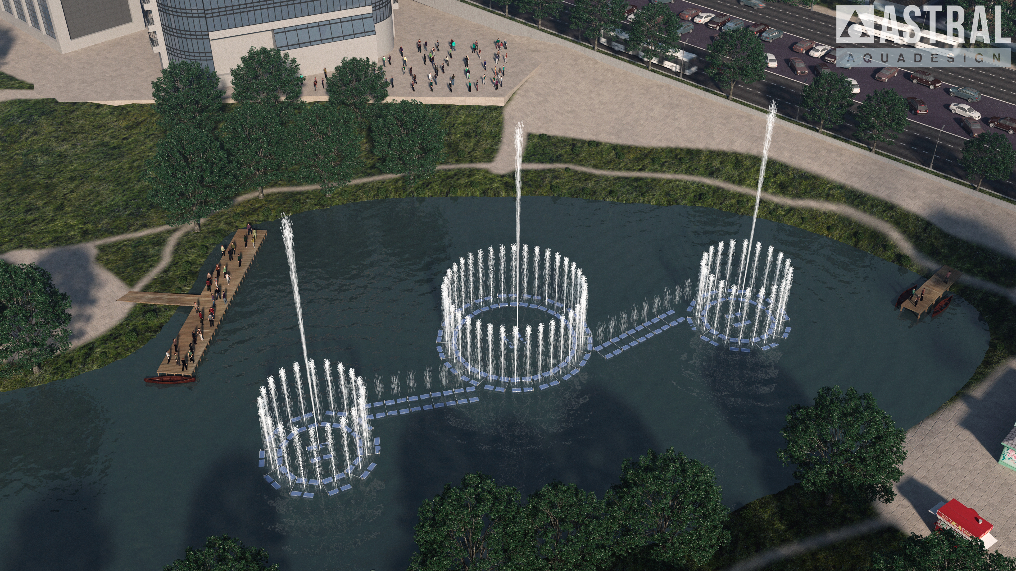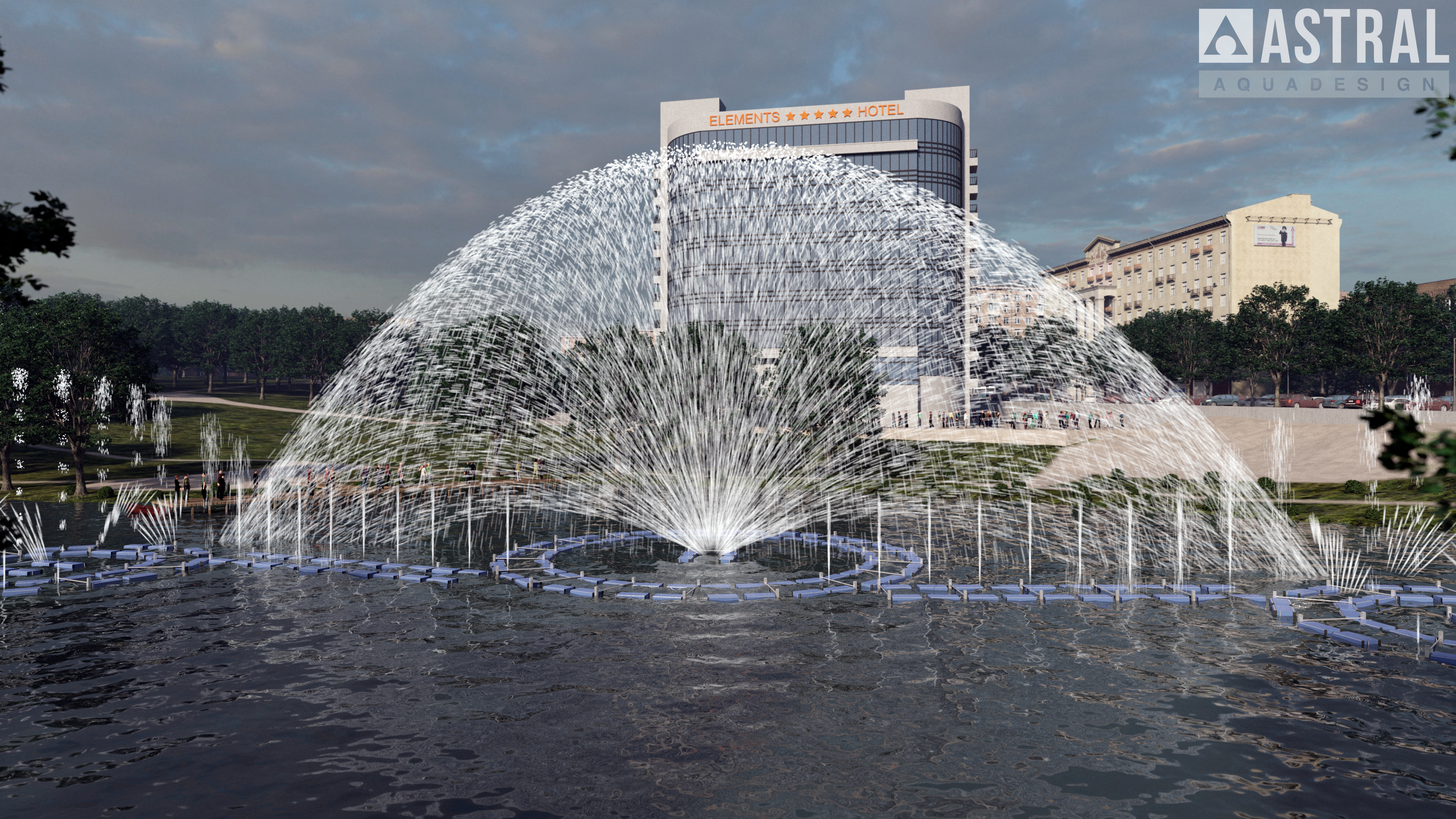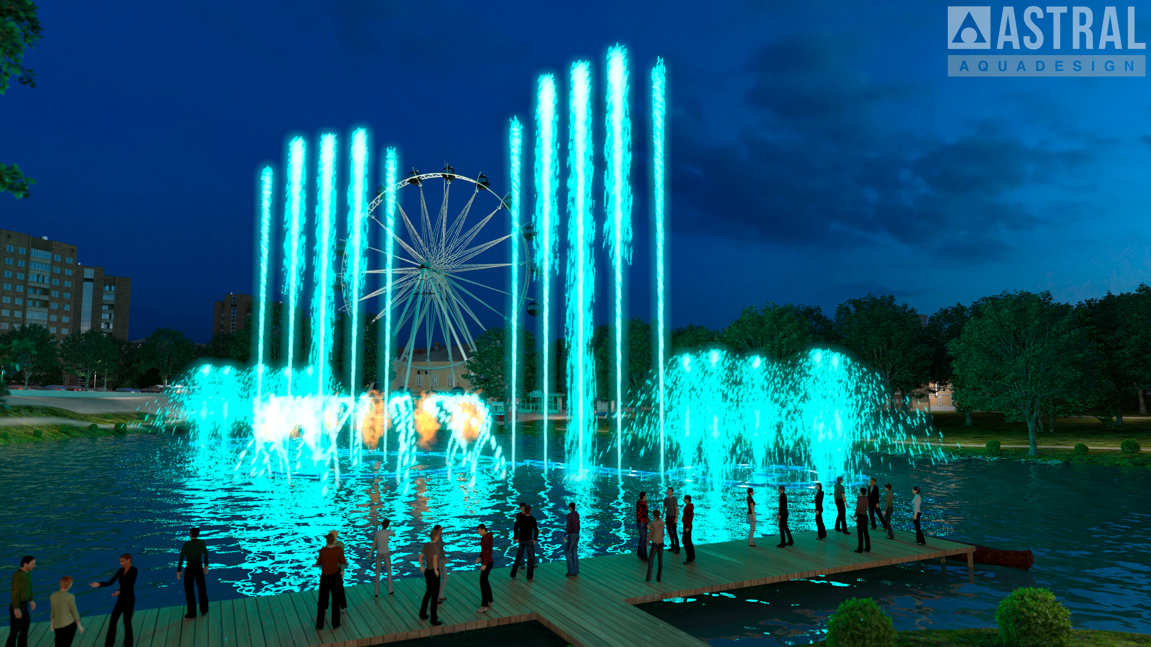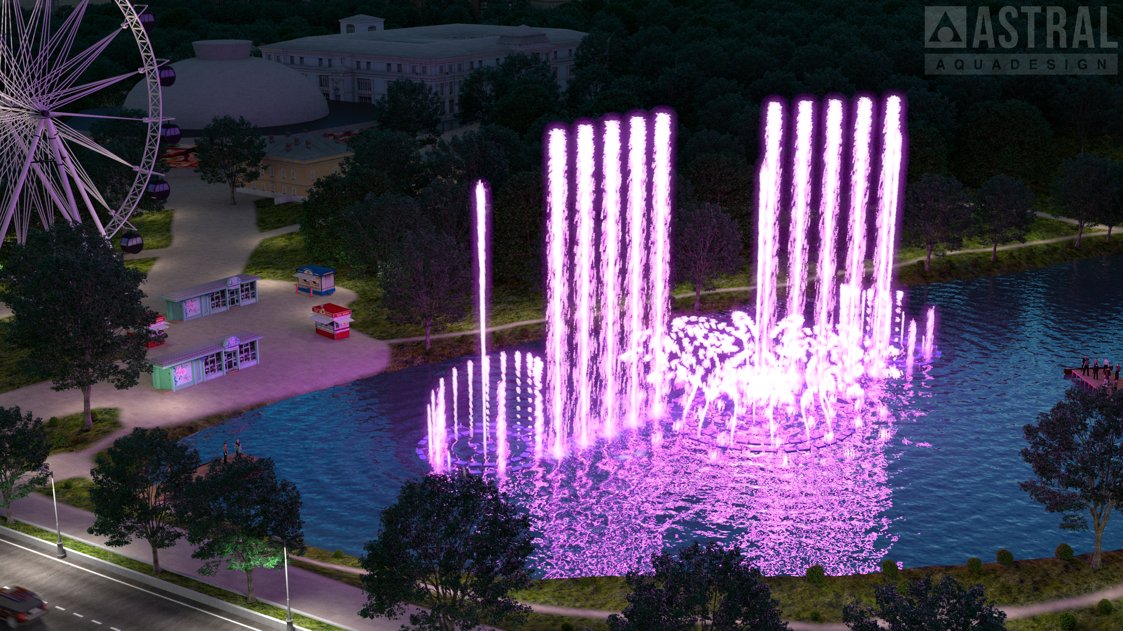 Плавающий музыкальный мультимедийный фонтан 64 х 22 м, г. Набережные Челны