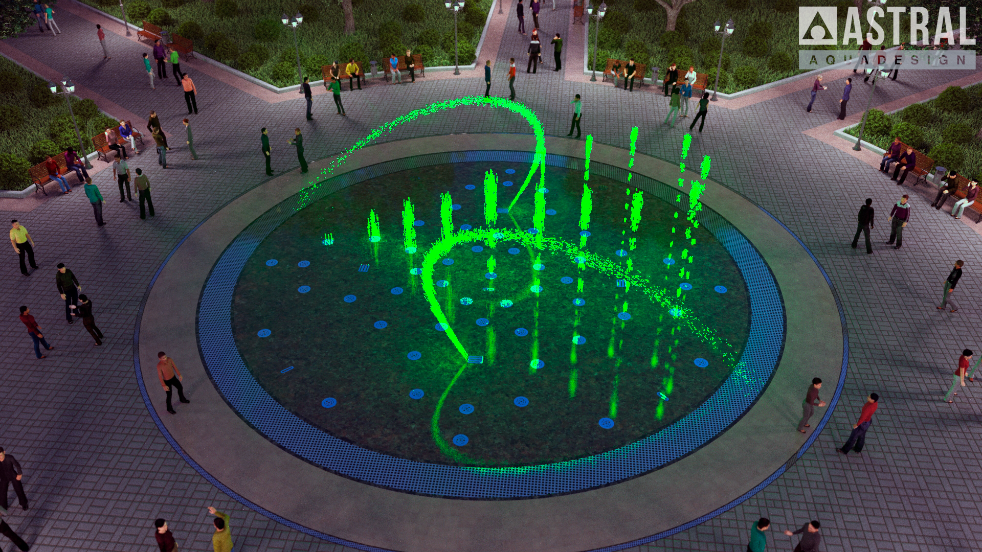 - Контур 3 из 36 каналов управления: «бегущая волна» из 36 форсунки (36 струй) высотой до 5,0 метров;