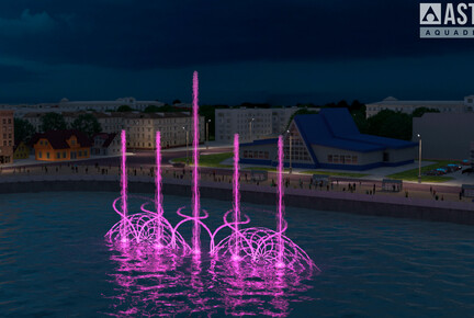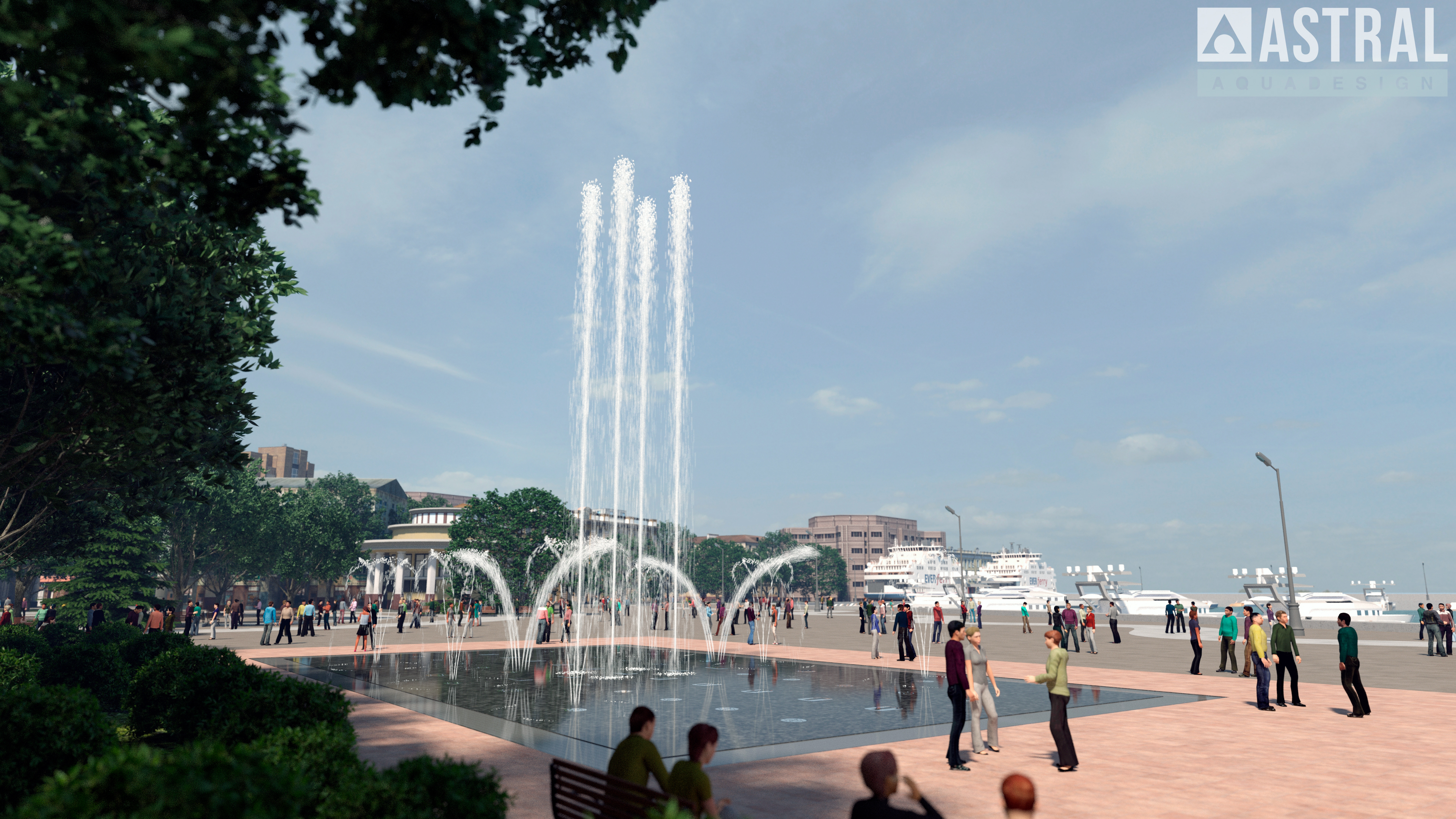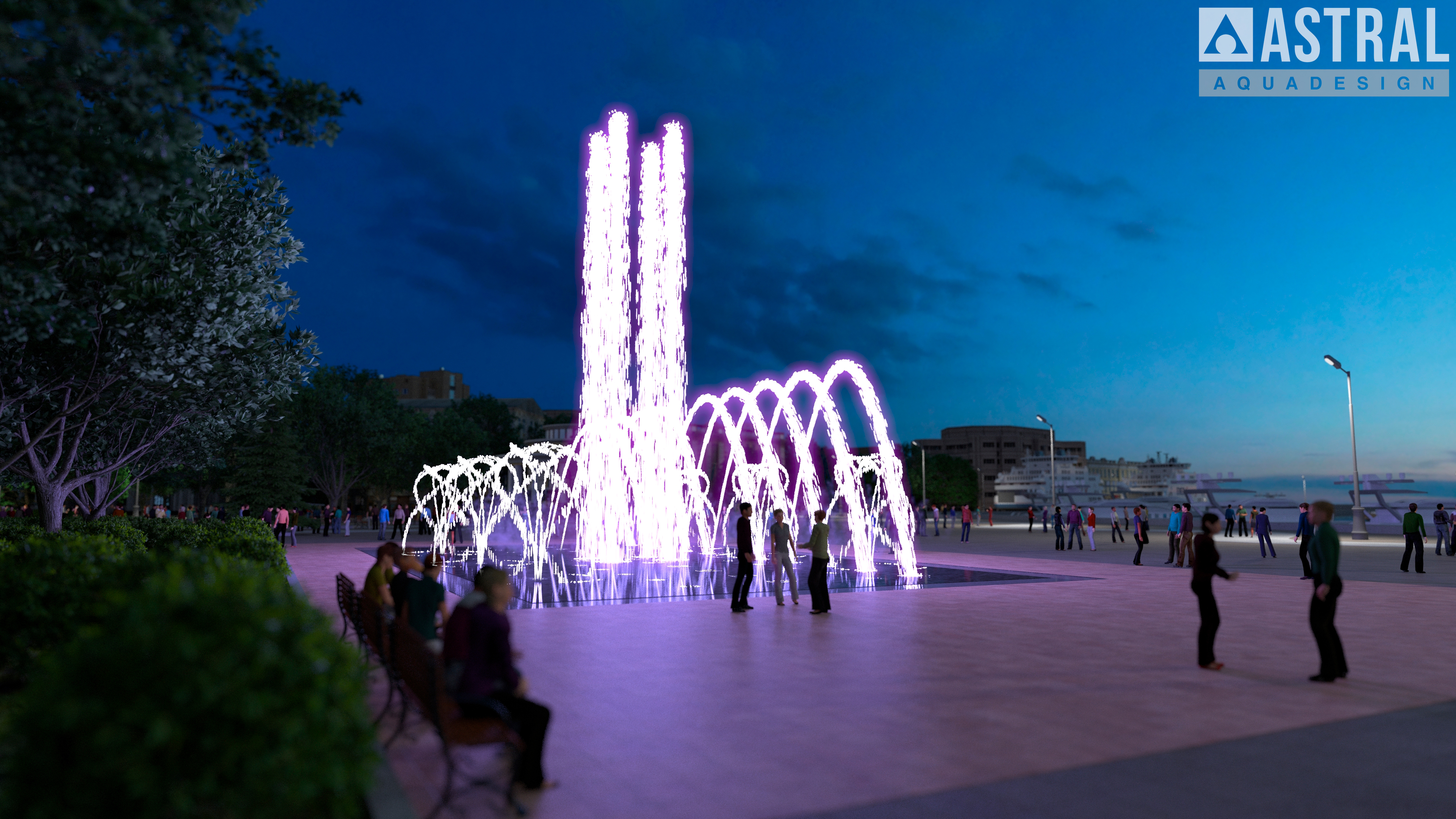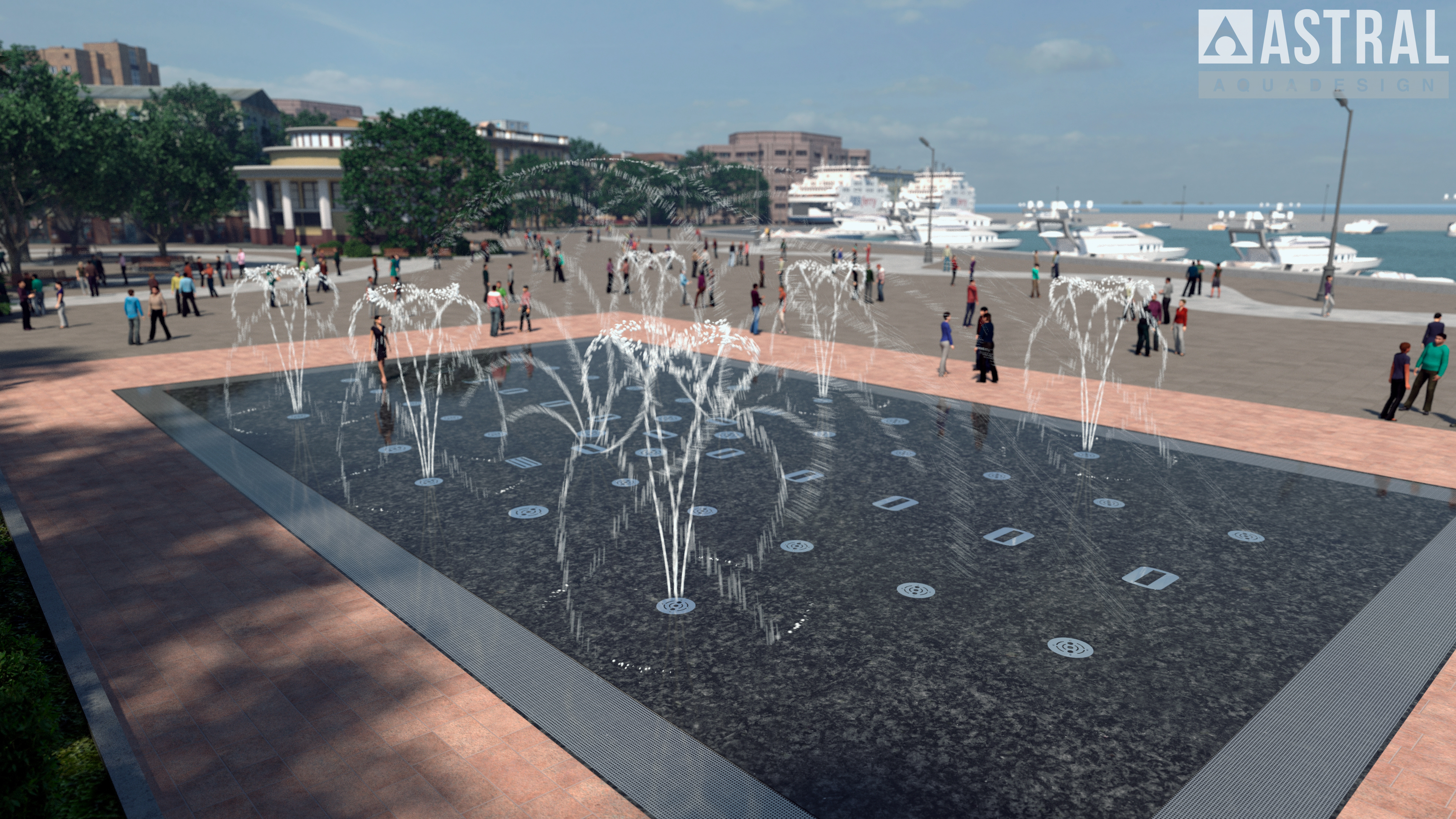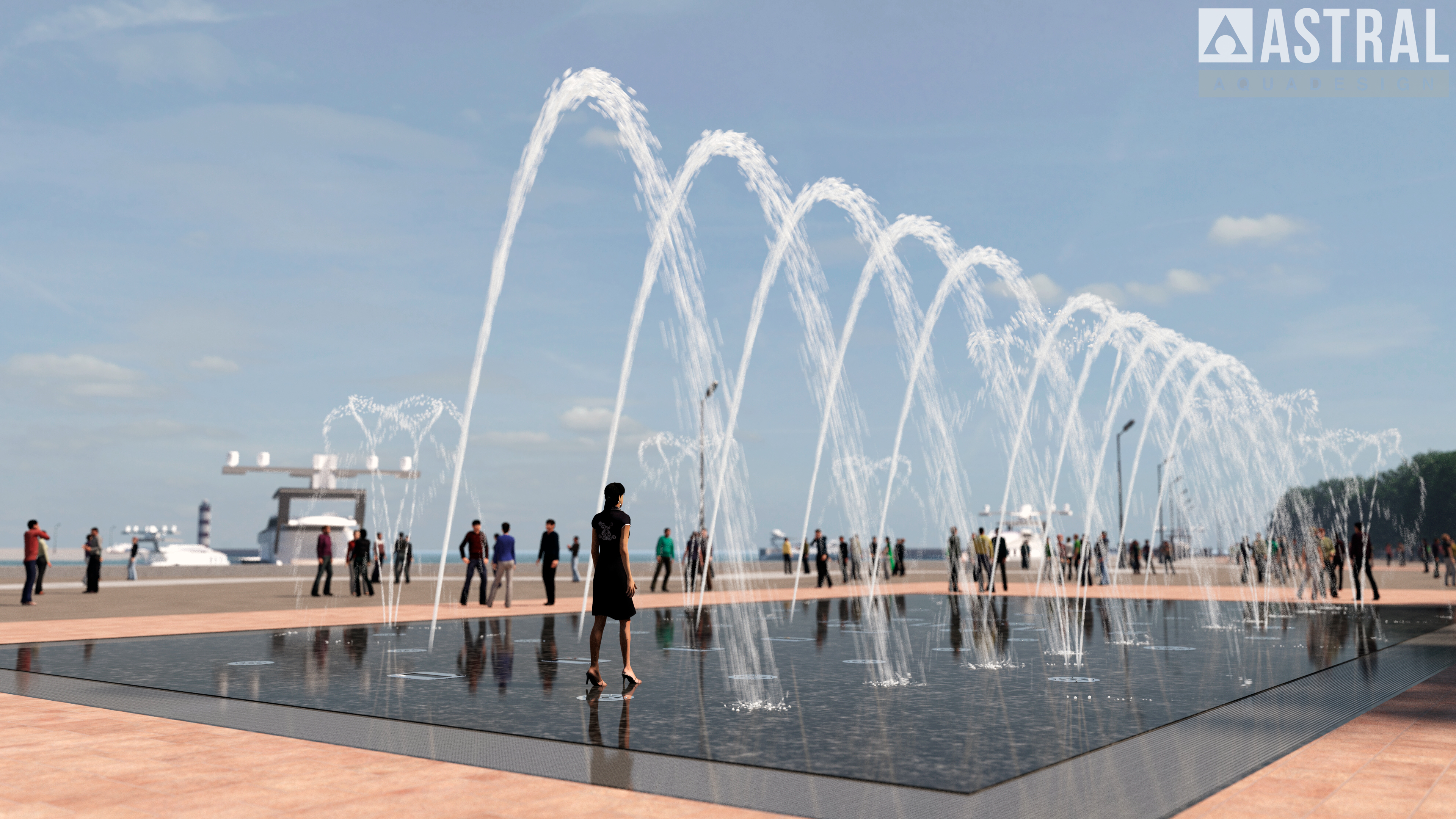 Плоскостной мультимедийный фонтан 26 х 15 метров, г. Ейск (Краснодарский край)