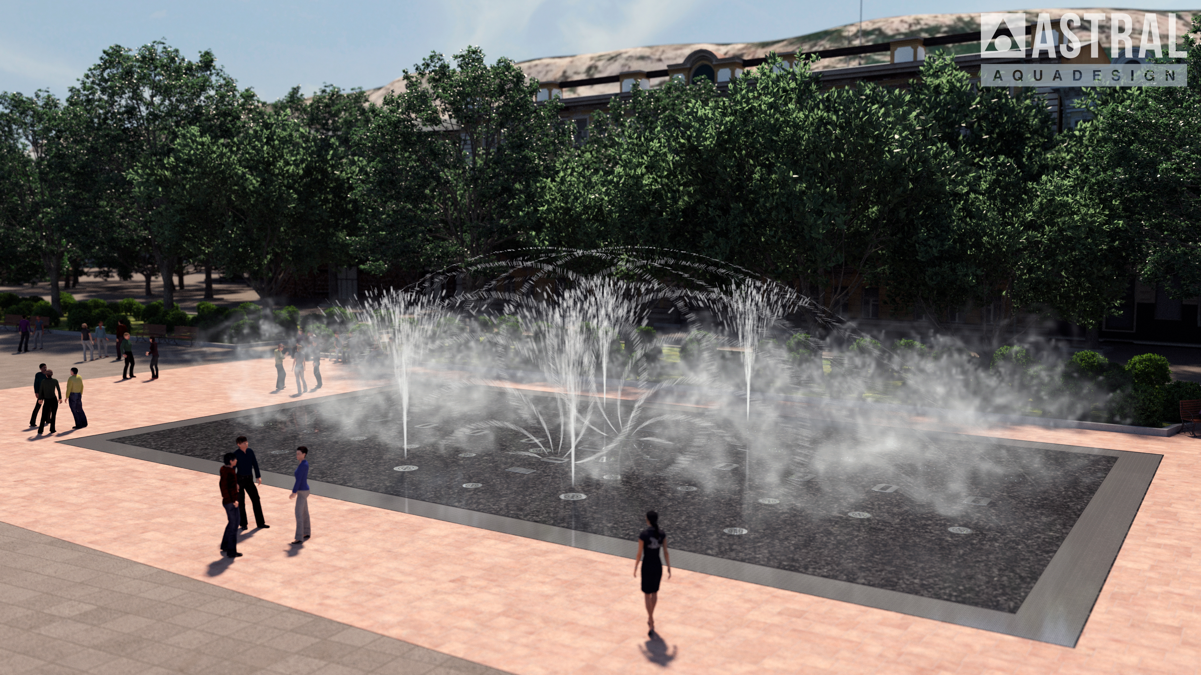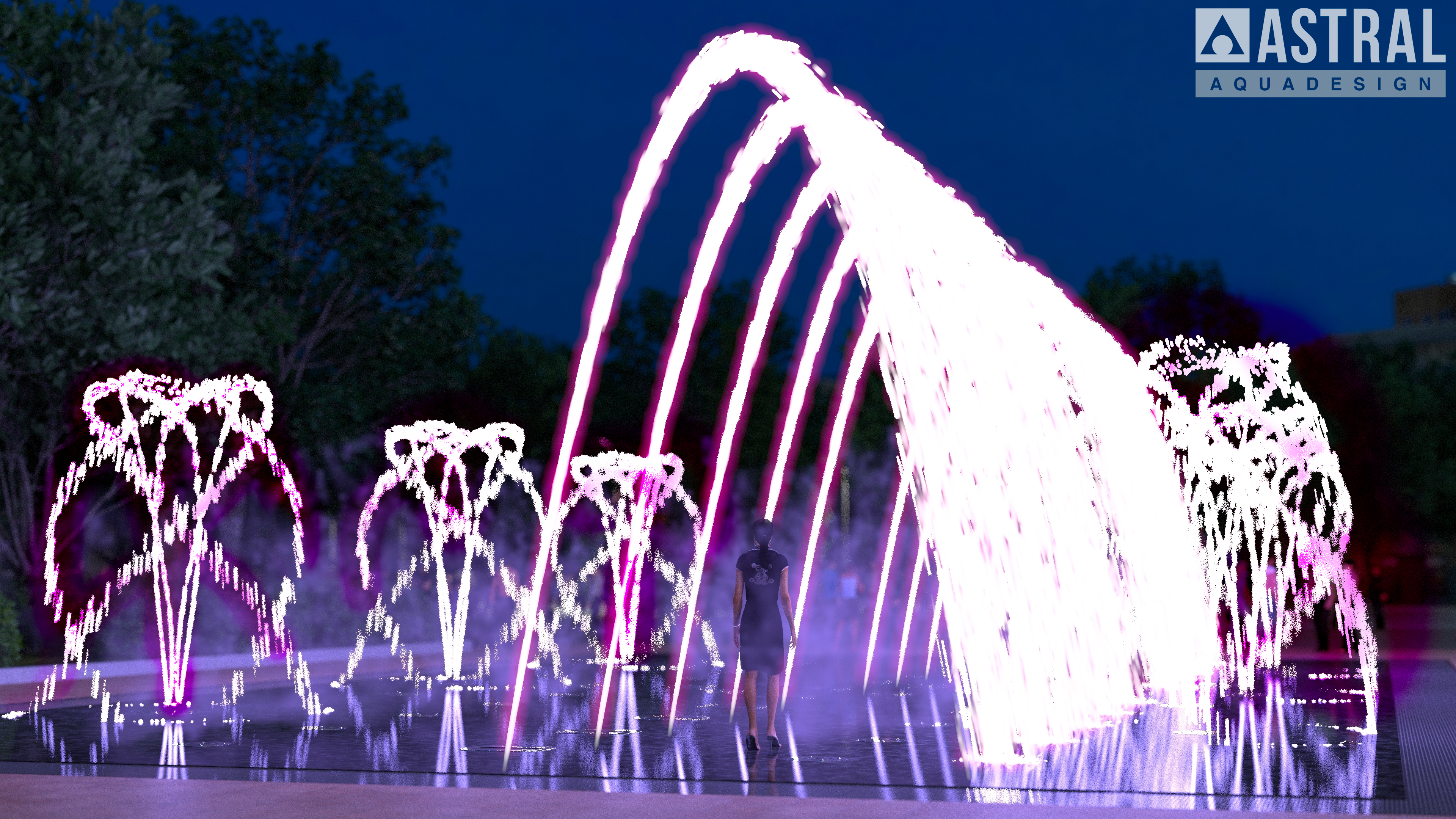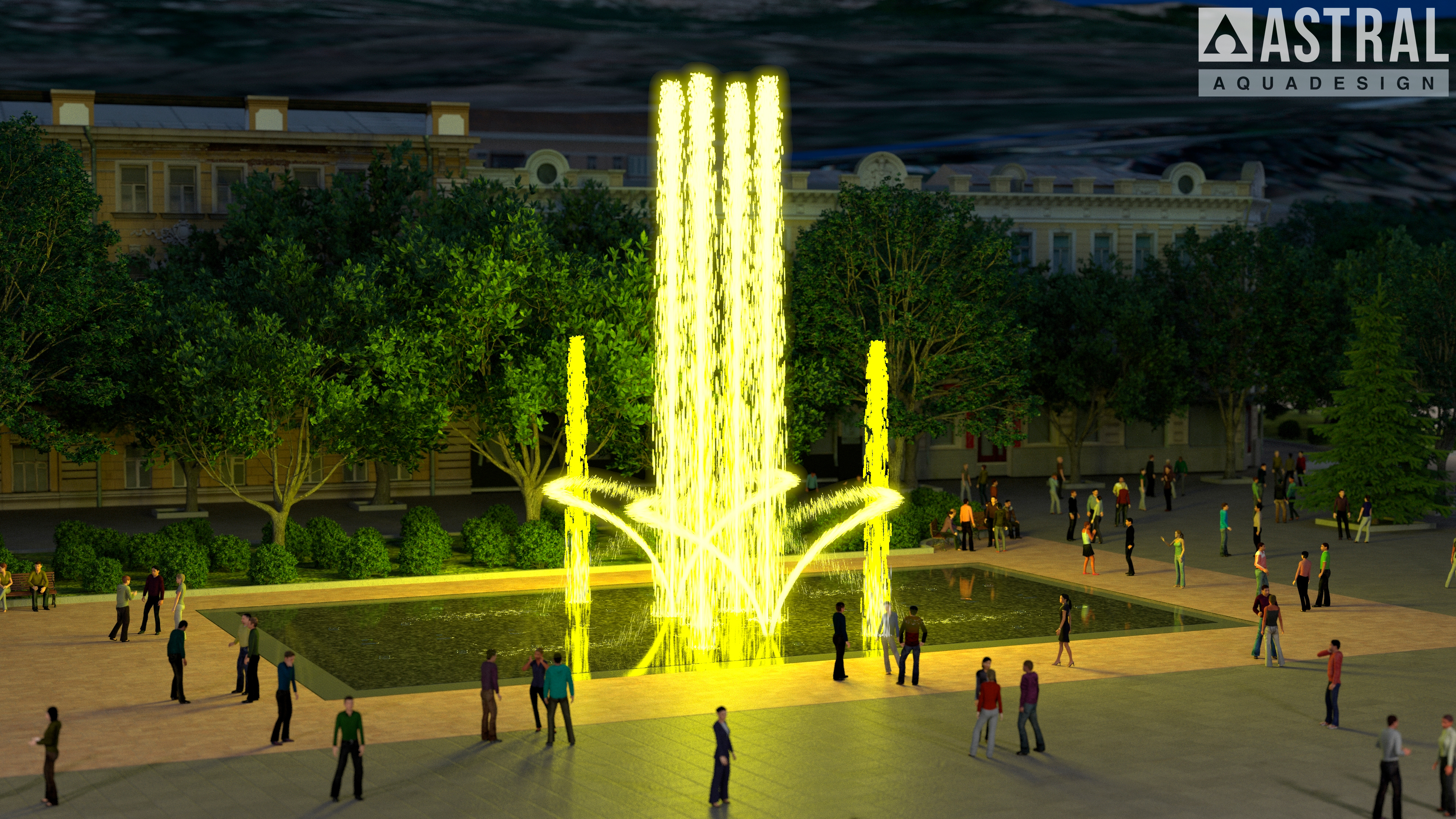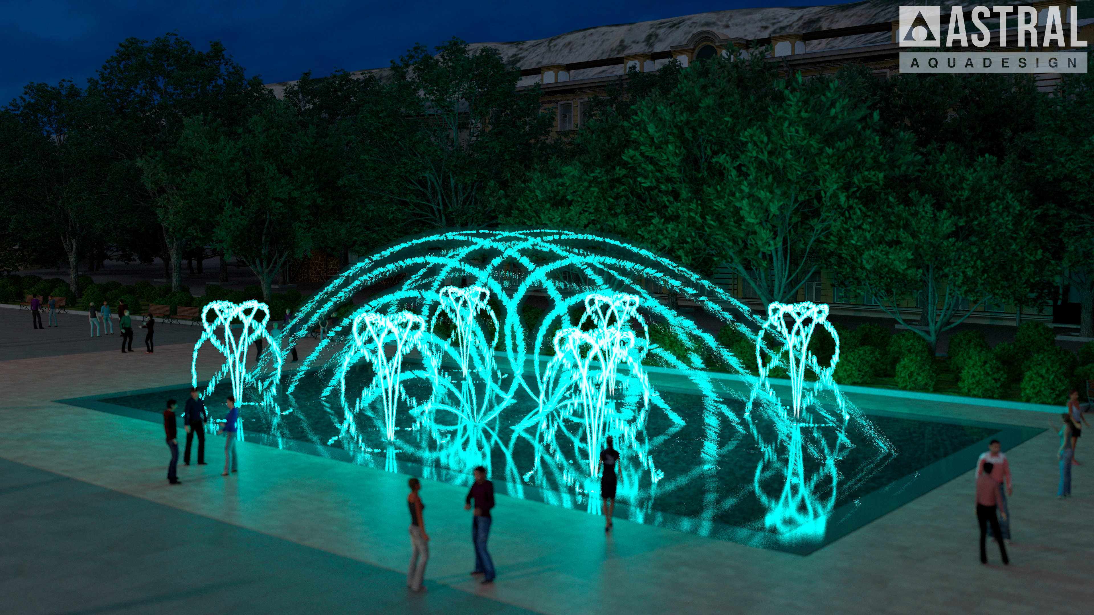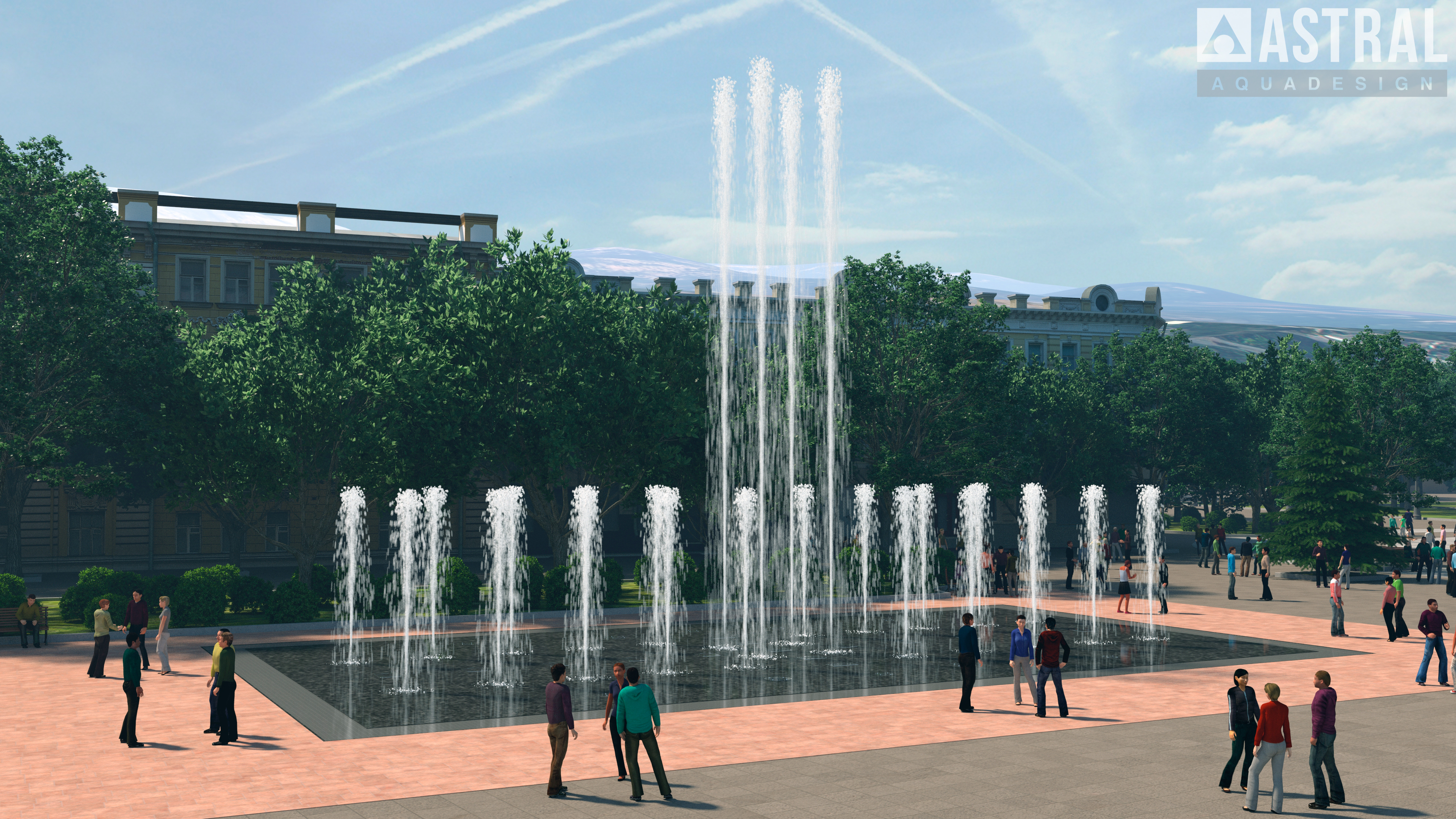 Плоскостной мультимедийный фонтан 26 х 15 метров, г. Ейск (Краснодарский край)