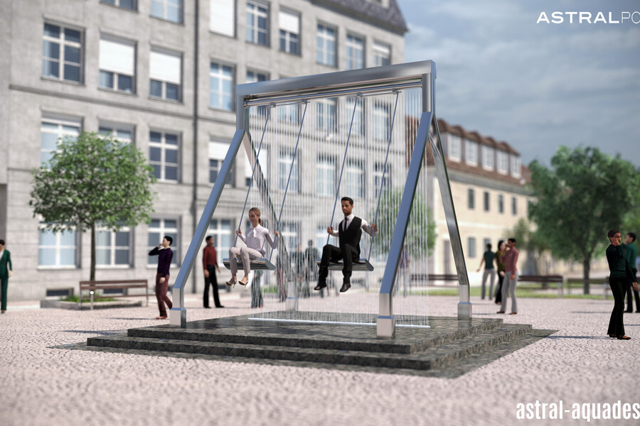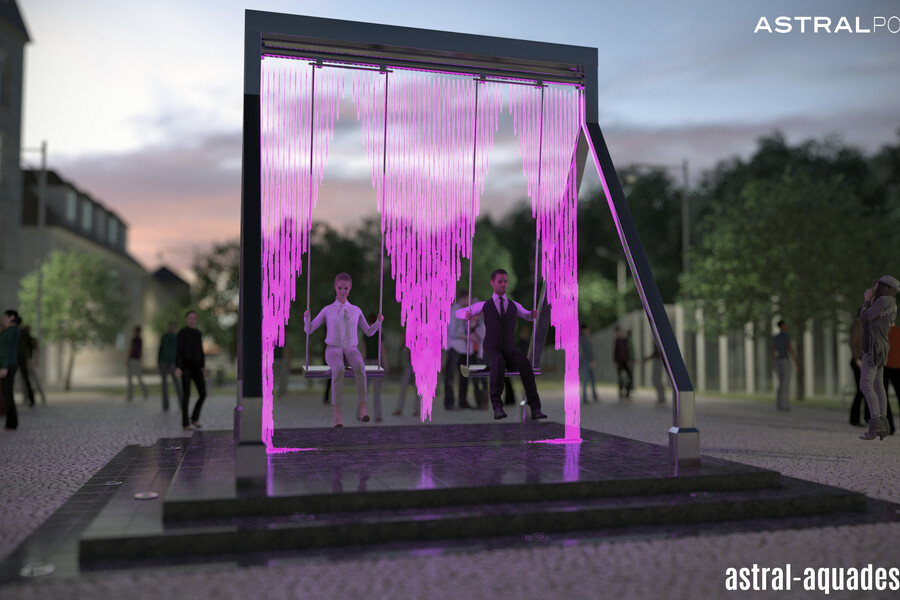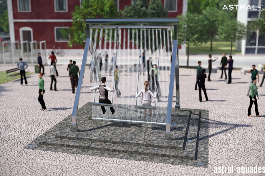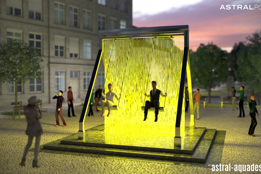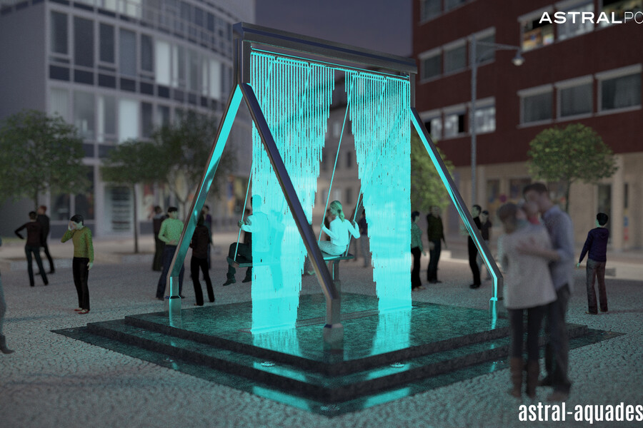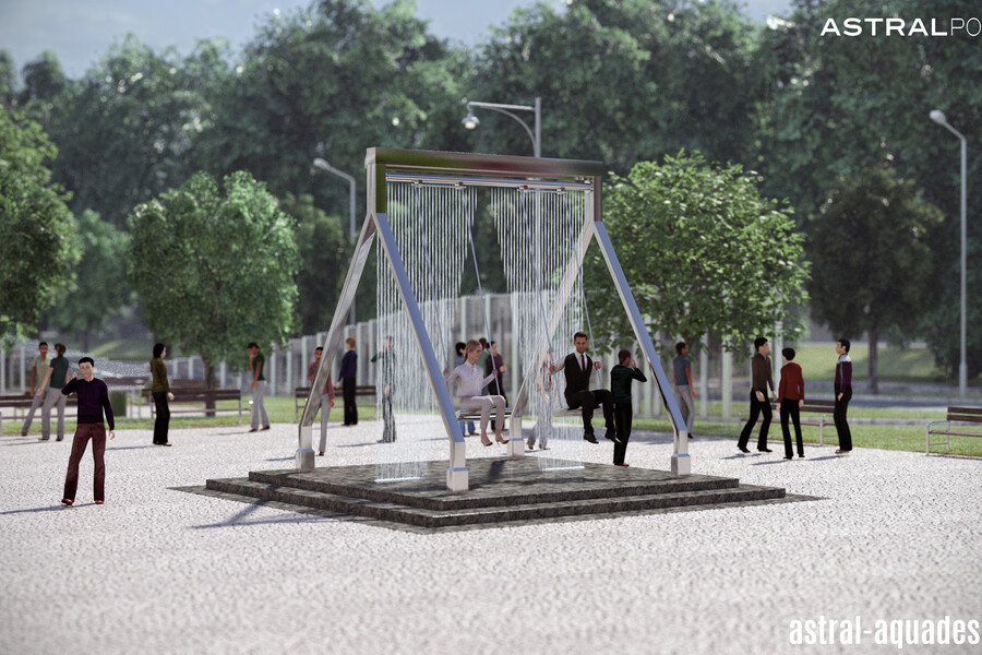 Проект оригинального фонтана "Качели" создали наши специалисты. Он объединяет в себе всеми любимый аттракцион с инновационным оборудованием в сфере фонтаностроения. В его основу положена конструкция цифрового водопада. Ряд вертикальных струй направлен сверху вниз. А при помощи специальных клапанов струи перекрываются, тем самым исключая попадания воды на людей во время использования. Динамическая подсветка струй, добавит еще больше интерактивности.