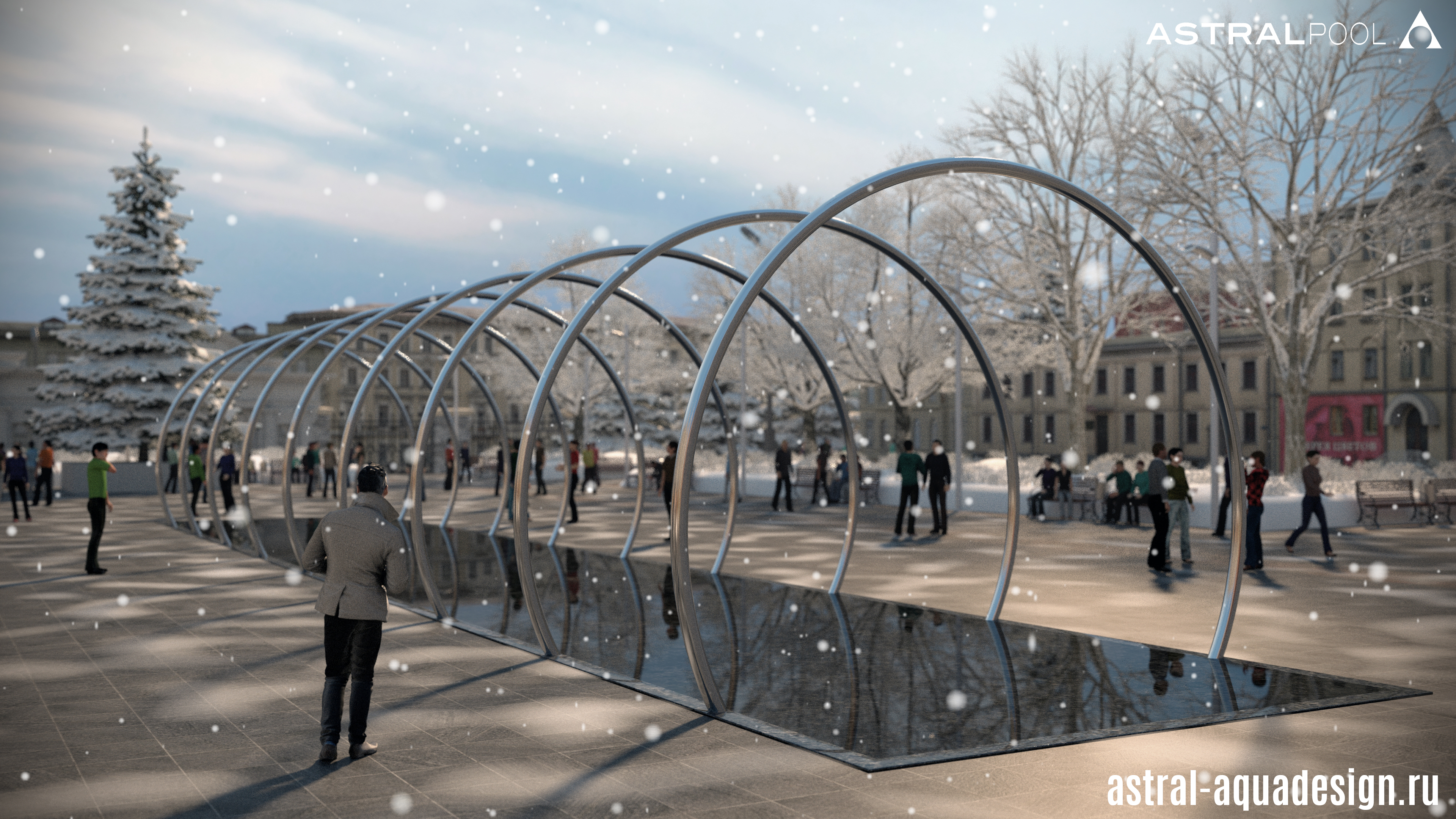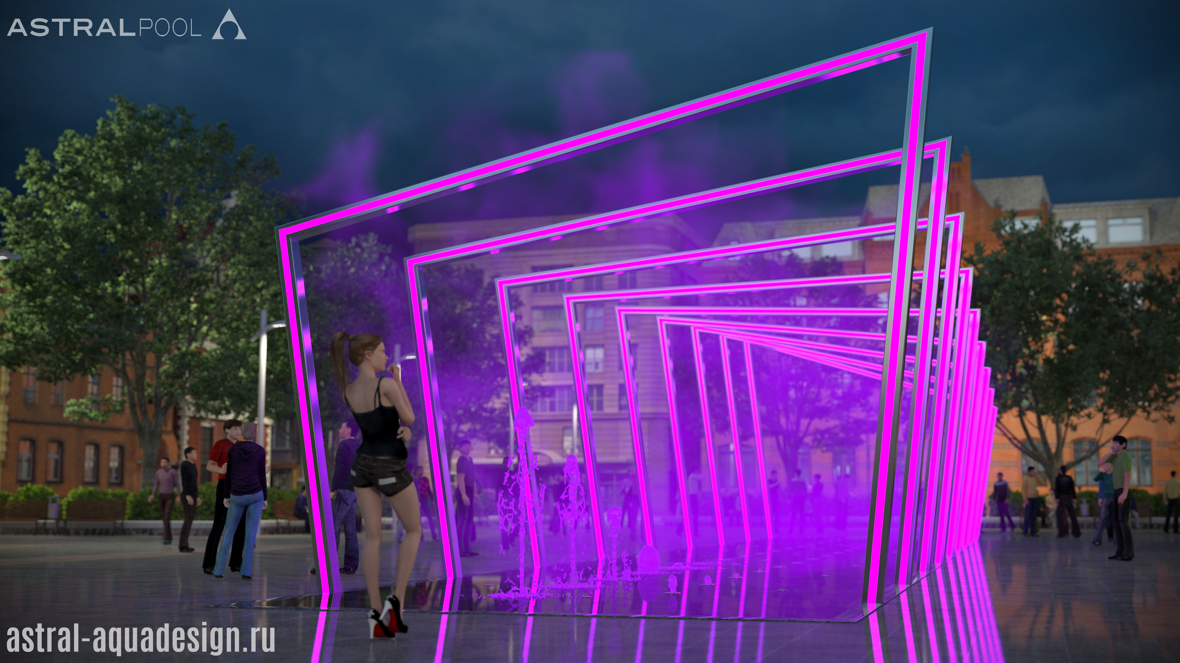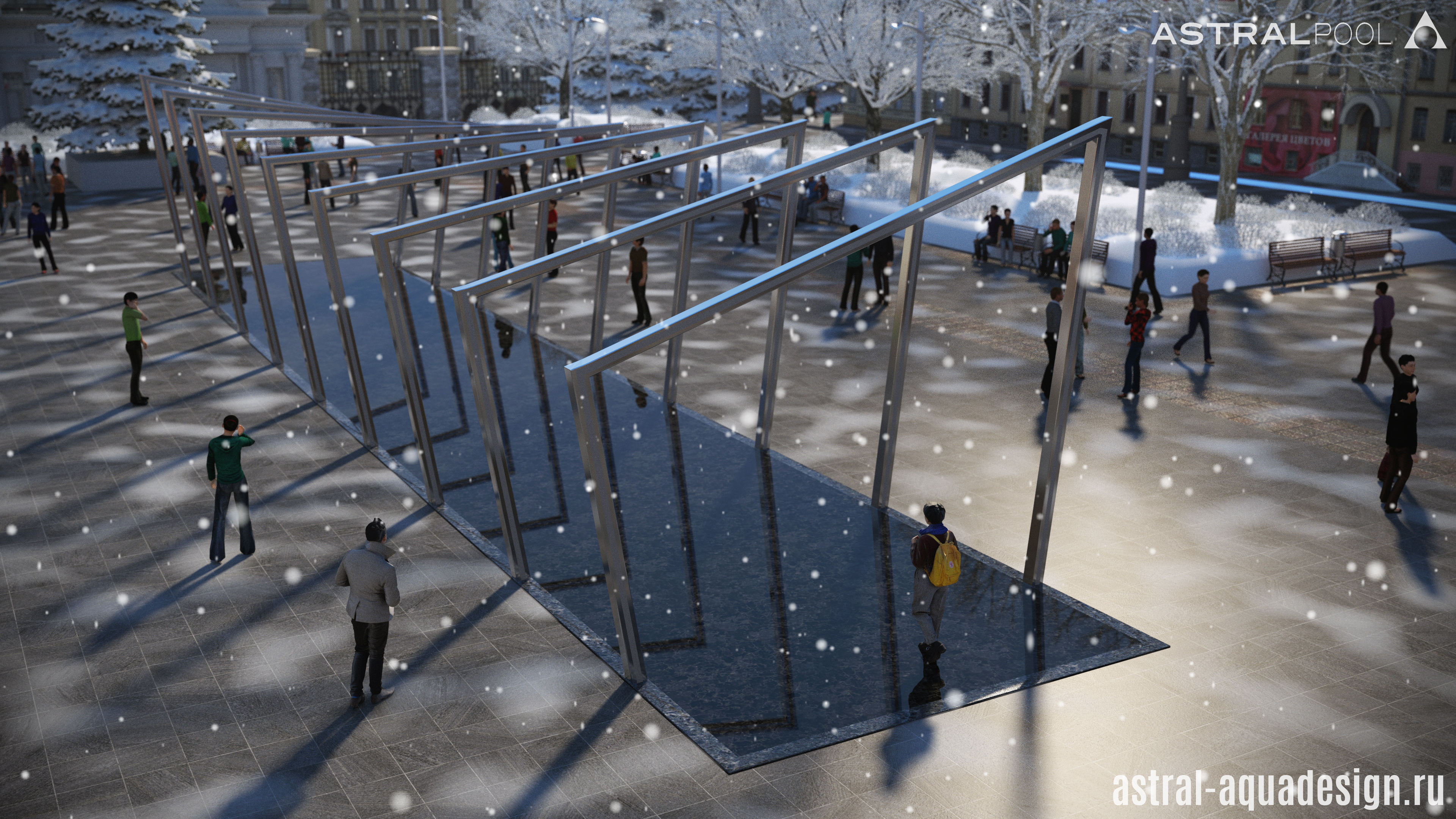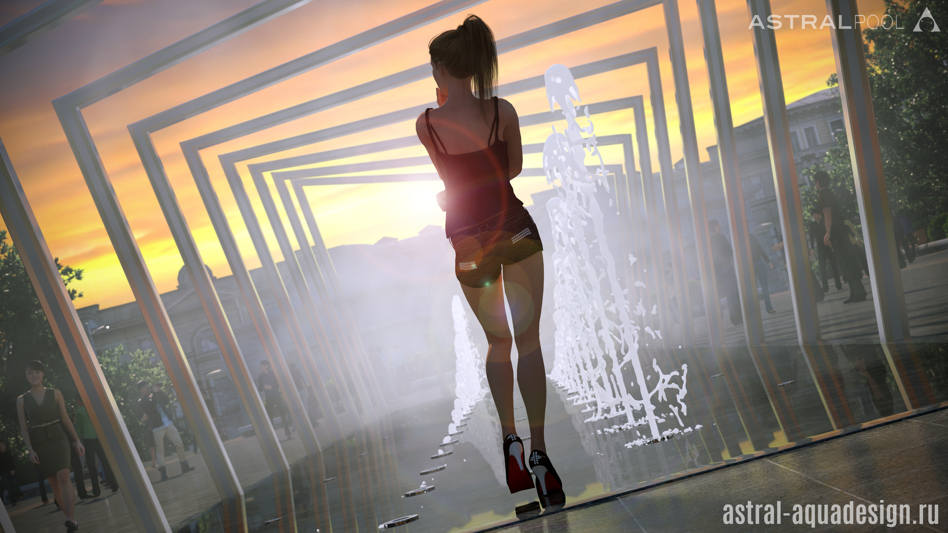 Пешеходный фонтан-аллея - это идеальное решение для городских парков и скверов. Он не занимает много места, и в тоже время универсален. В зависимости от сезона конструкция может быть украшена различными декоративными элементами: светильники, клумбы, осенние или зимние подвесные декорации.