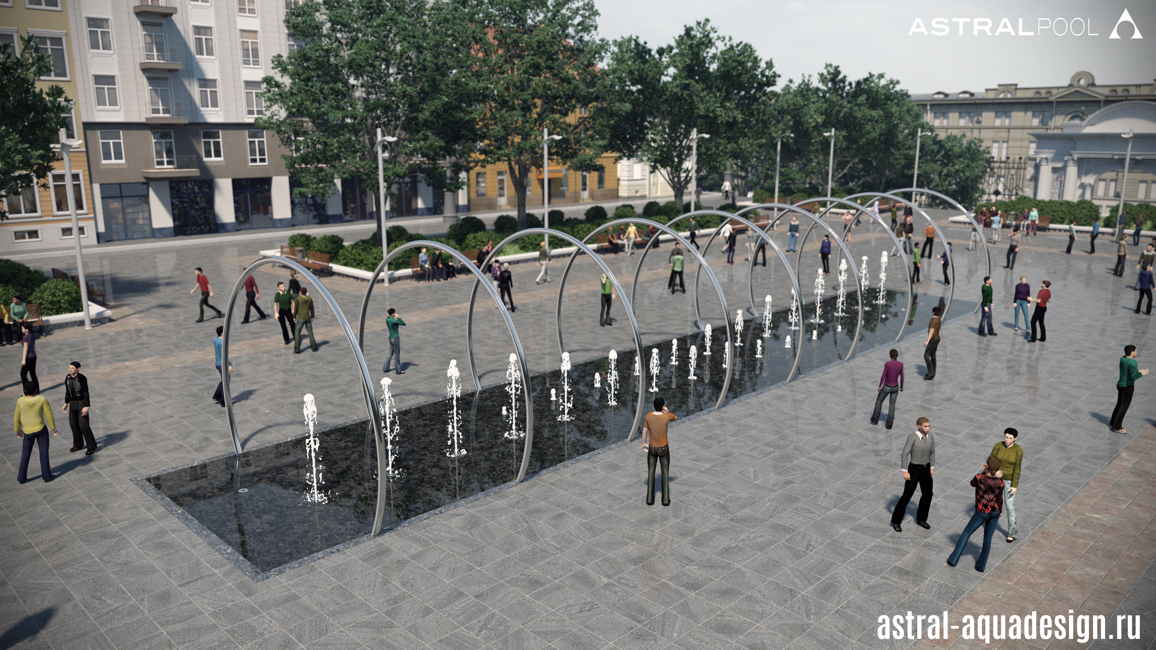 Проект пешеходного фонтана-аллеи для строительства в сквере Краснодара