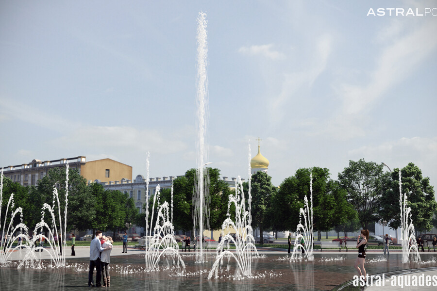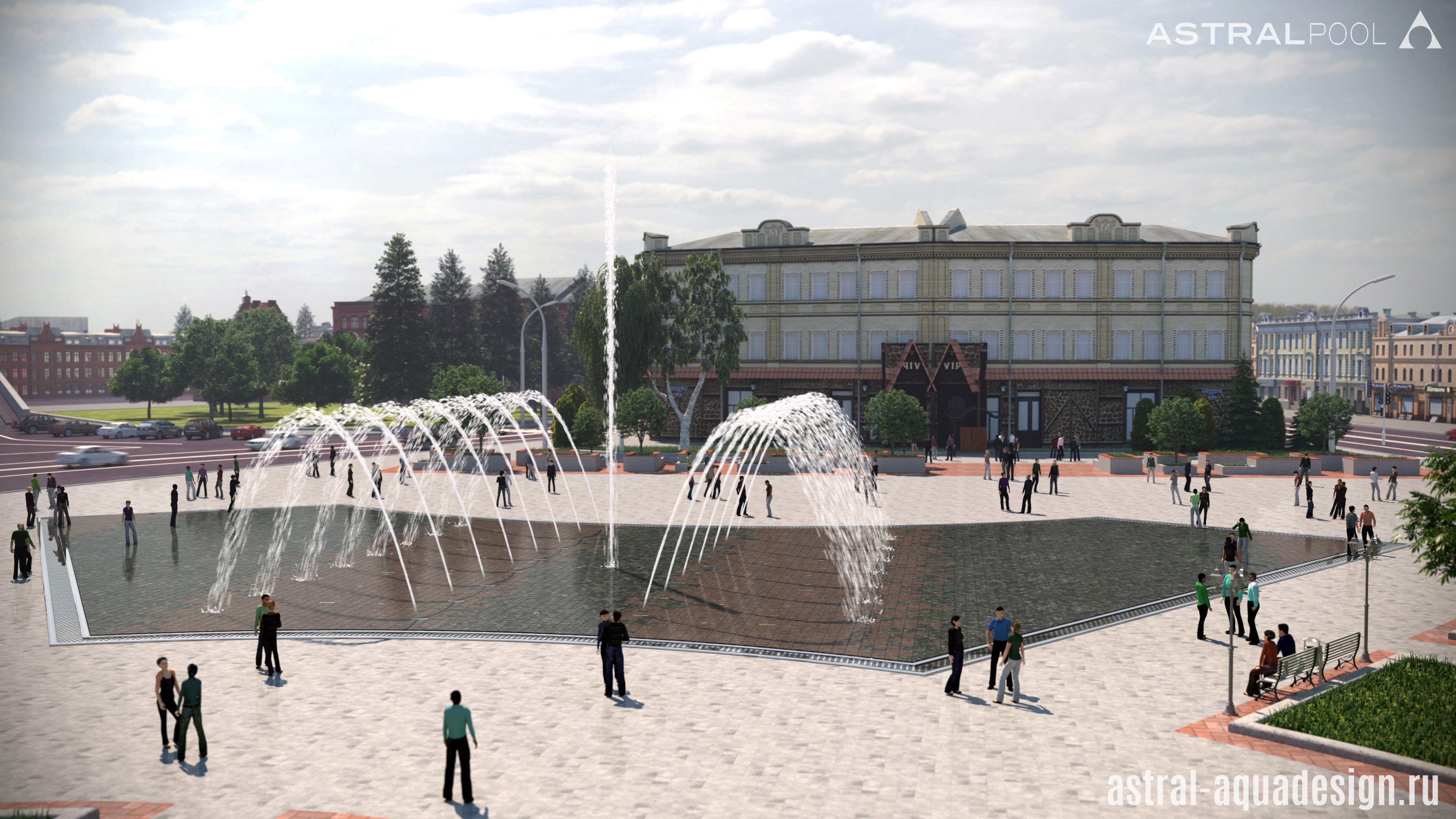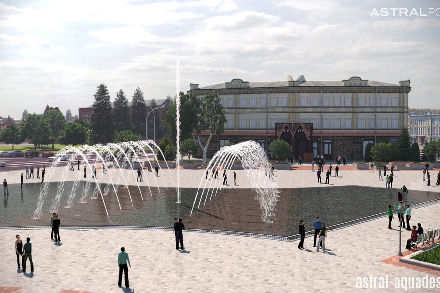 Такой водный объек будет уместен в любом городе. Например строительство такого фонтана на площади в южном городе Арзамасе не только послужит эффектным украшением, но подарит прохладу в знойный летний день.