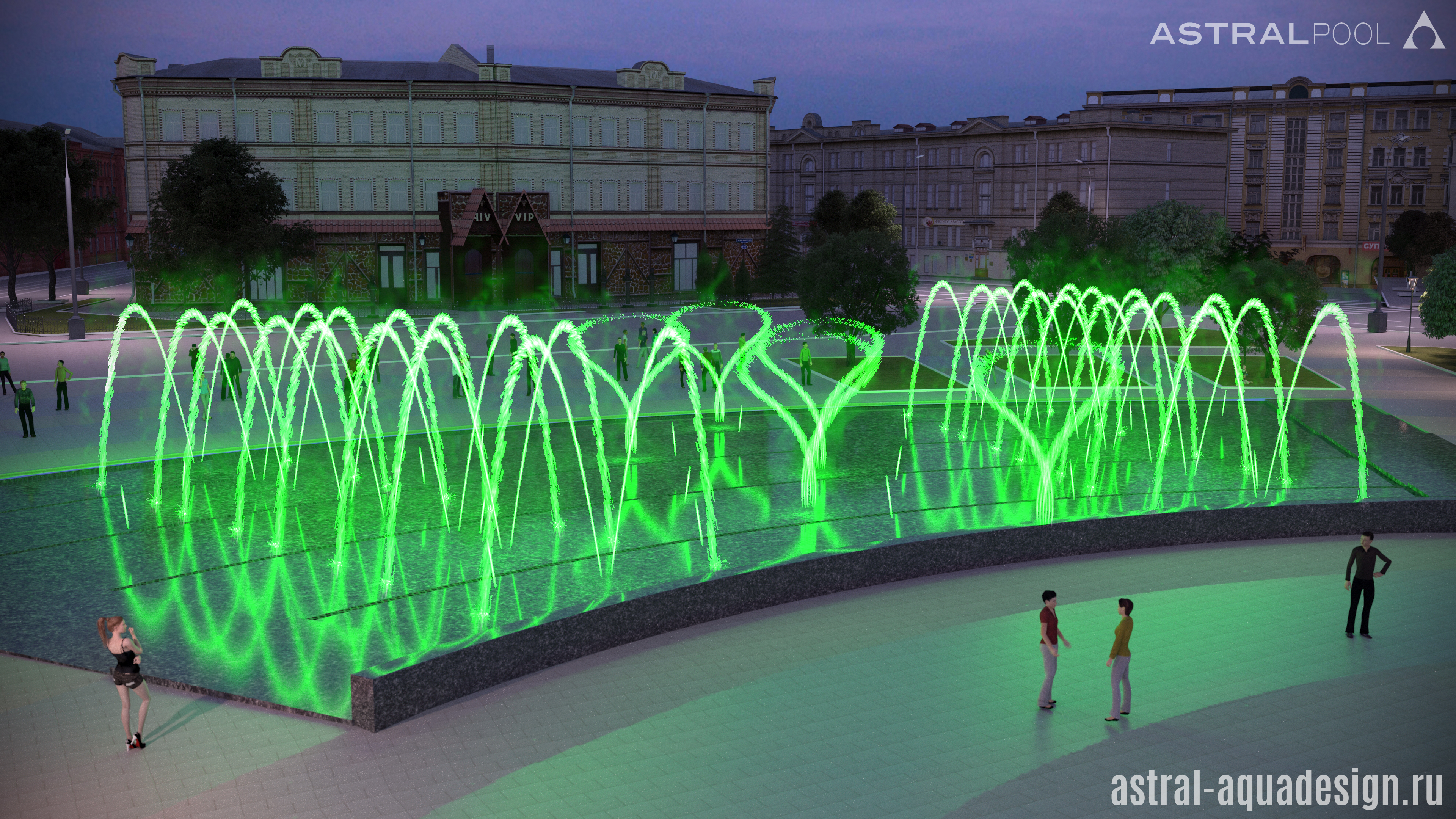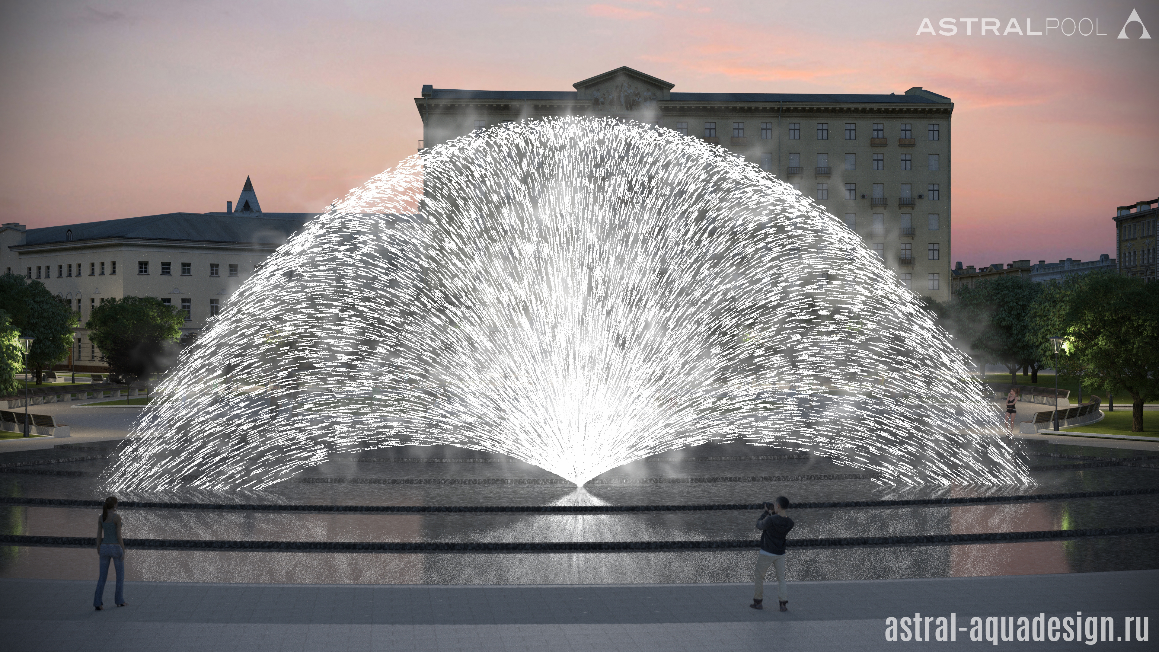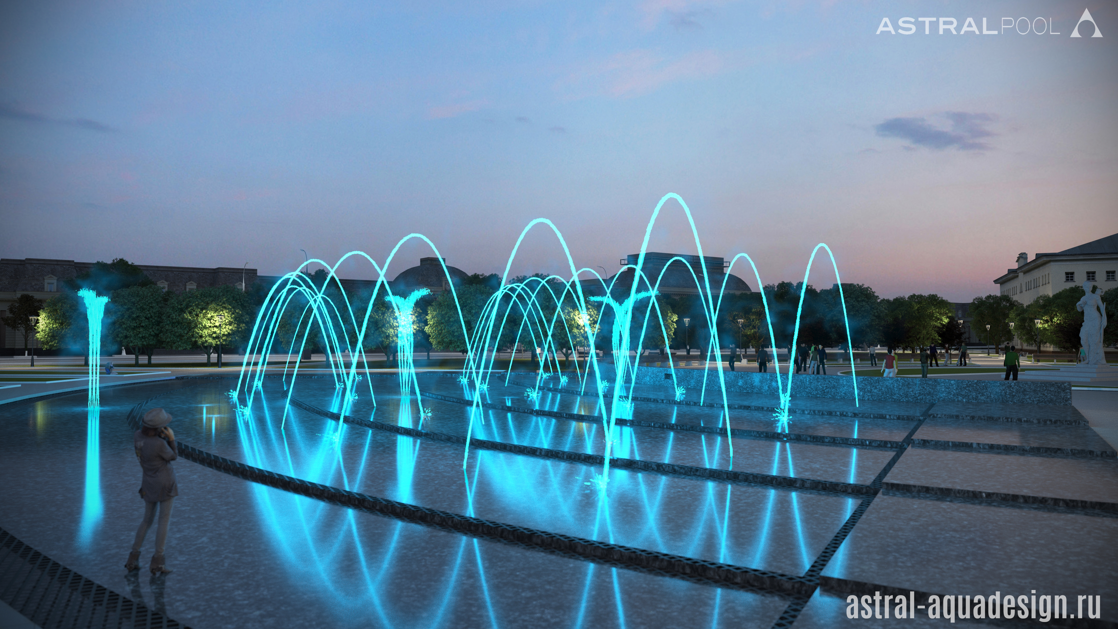 Этот проект был создан нашими специалистами для строительства на одной из площадей Оренбурга. Предполагается, что чаша будет выполнена в виде веера. Ее покрытие предполагай создание эффекта зеркала, для отражения окружающего ландшафта и зданий. В проекте будут участвовать несколько видов насадок: туманные, качающиеся, пенные столбы и дуги. В центре будет расположен, уже так полюбившийся всем водный экран. Фонтан планируется как цветомузыкальный. А это значит, что оренбуржцев и гостей города ежедневно будет ждать красочное водное шоу под любимые мелодии.