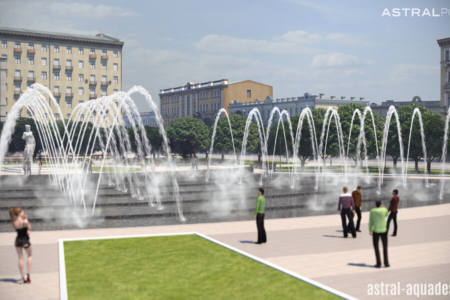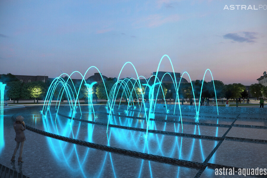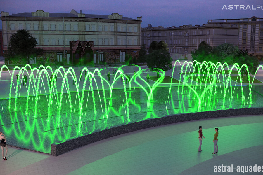 Этот проект был создан нашими специалистами для строительства на одной из площадей Оренбурга. Предполагается, что чаша будет выполнена в виде веера. Ее покрытие предполагай создание эффекта зеркала, для отражения окружающего ландшафта и зданий. В проекте будут участвовать несколько видов насадок: туманные, качающиеся, пенные столбы и дуги. В центре будет расположен, уже так полюбившийся всем водный экран. Фонтан планируется как цветомузыкальный. А это значит, что оренбуржцев и гостей города ежедневно будет ждать красочное водное шоу под любимые мелодии.