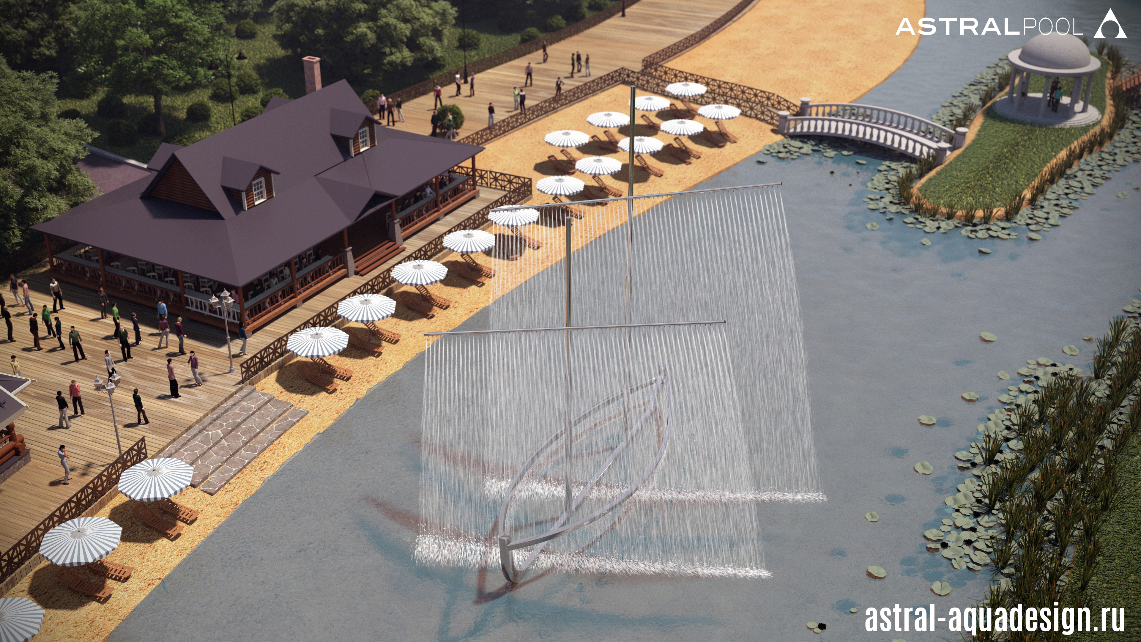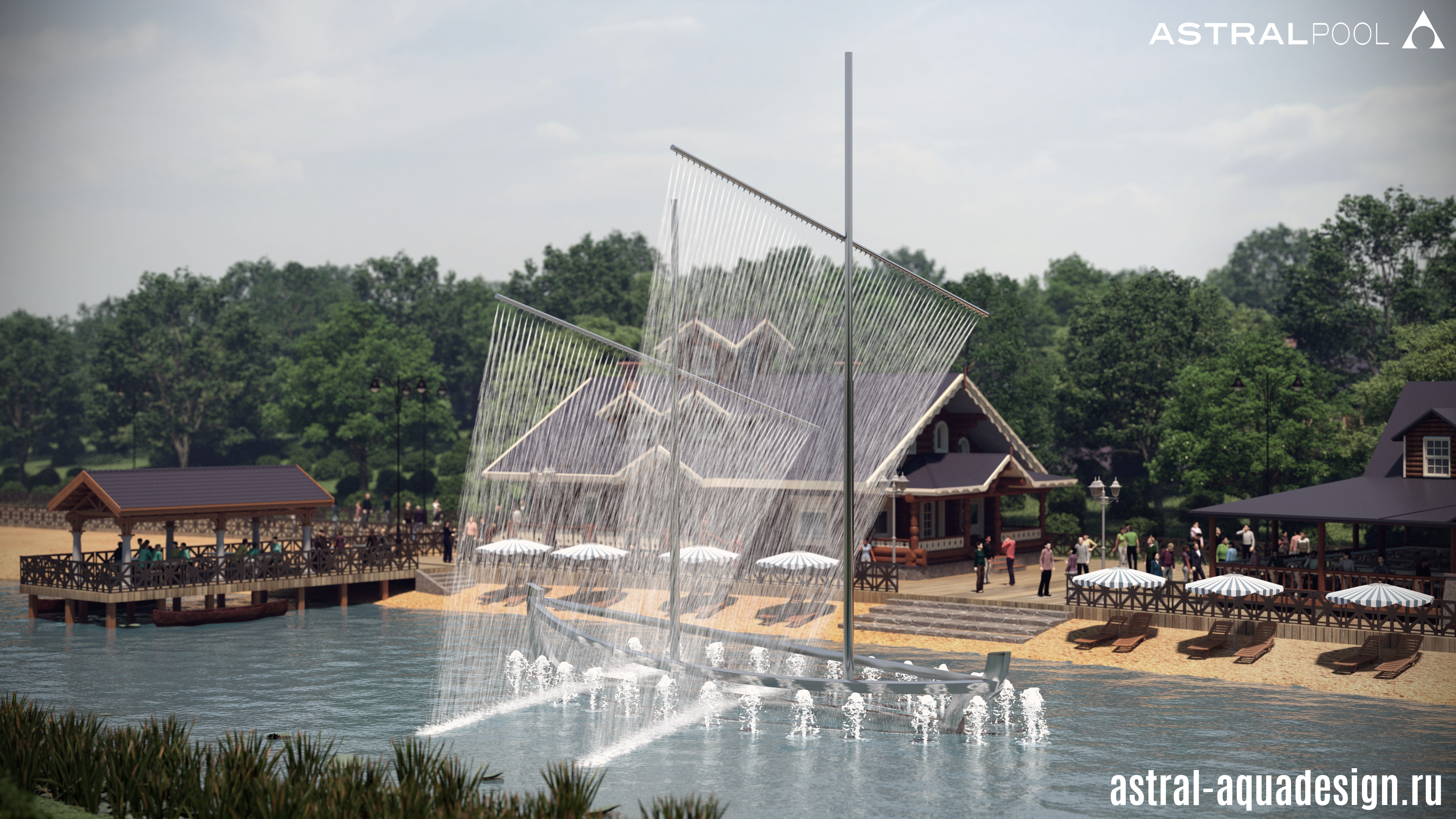 Проект уникального плавающего фонтанного комплекса «Корабль» в Пскове