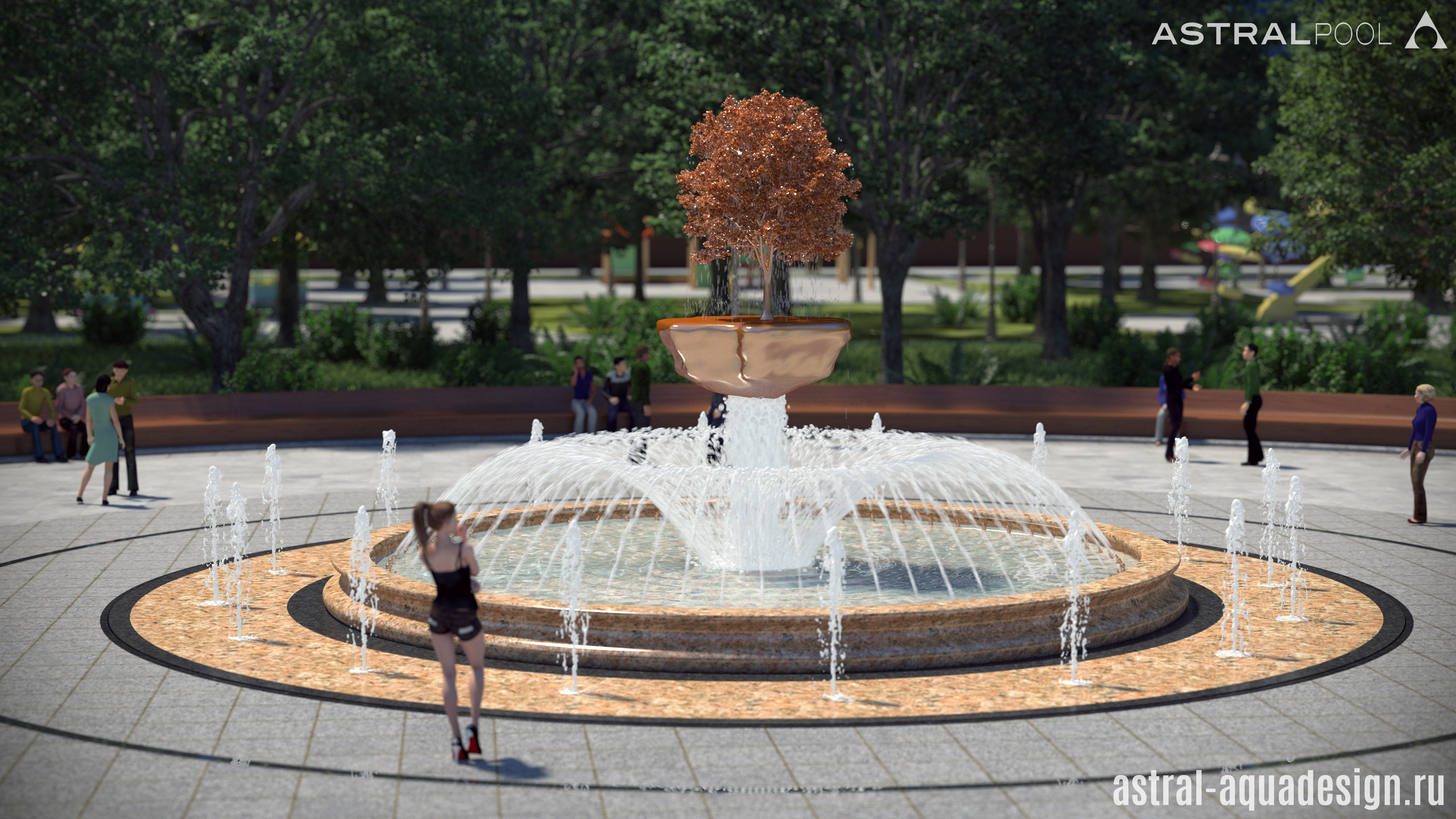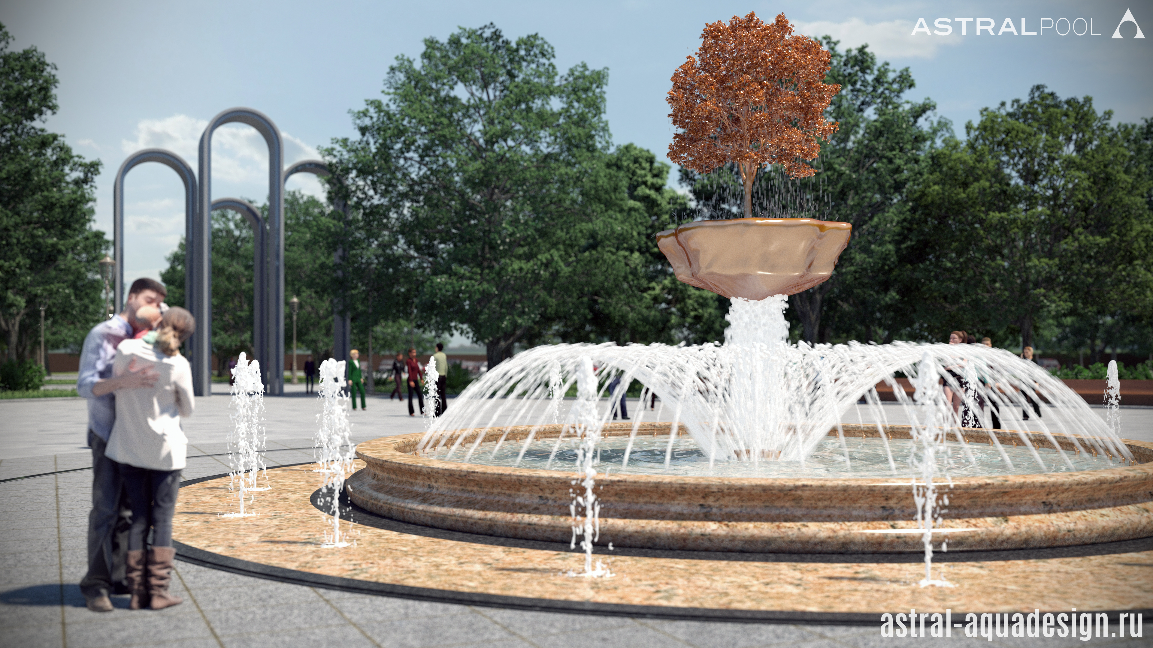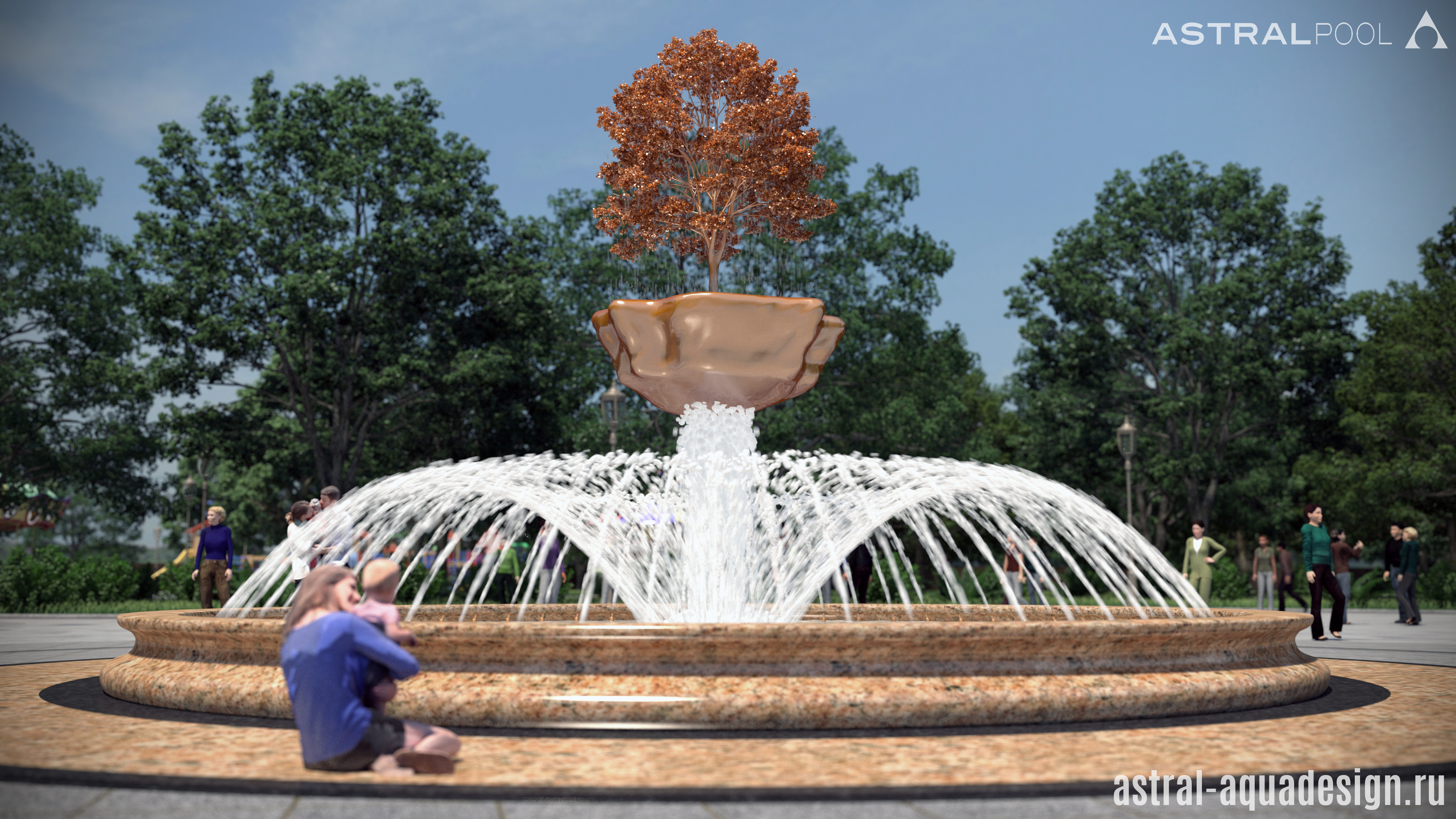 Проект фонтана со сульптурой изображающей дерево разработали наши специалисты для установки в парке Могилева (Беларусь). Необычная технология "парящий камень" создает ощущение воздушности композиции и неизменно притягивает к себе внимание. Ряд параболических струй обрамляющих центр чаши, дополнительно усилят этот эффект. Проект предусматривает использование RGB подсветки в вечернее время. А также может быть дополнен музыкальным сопровождением.