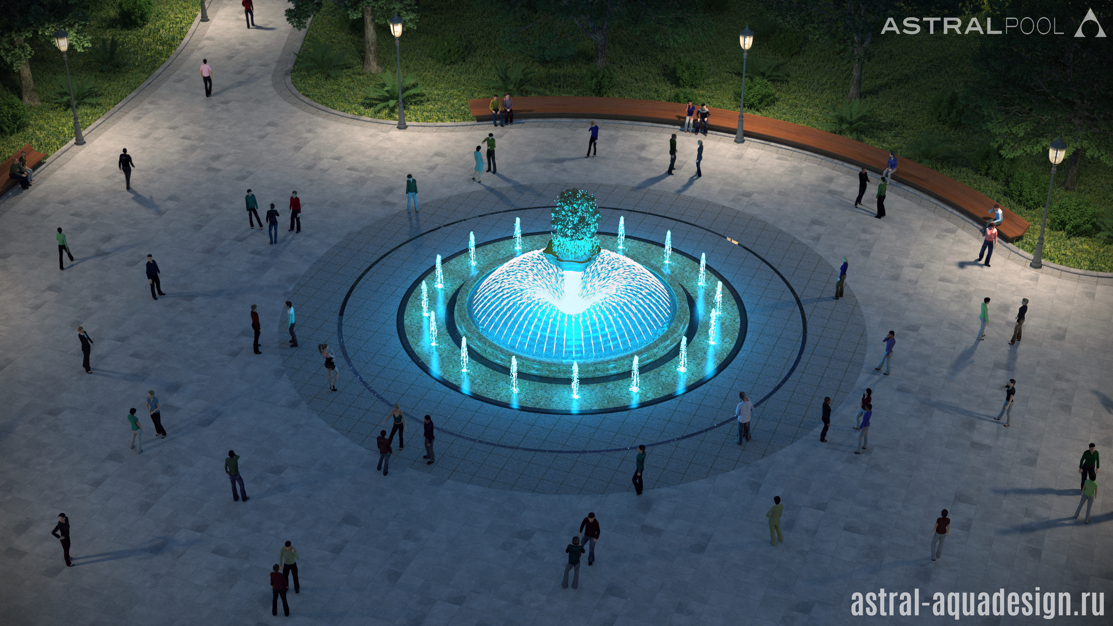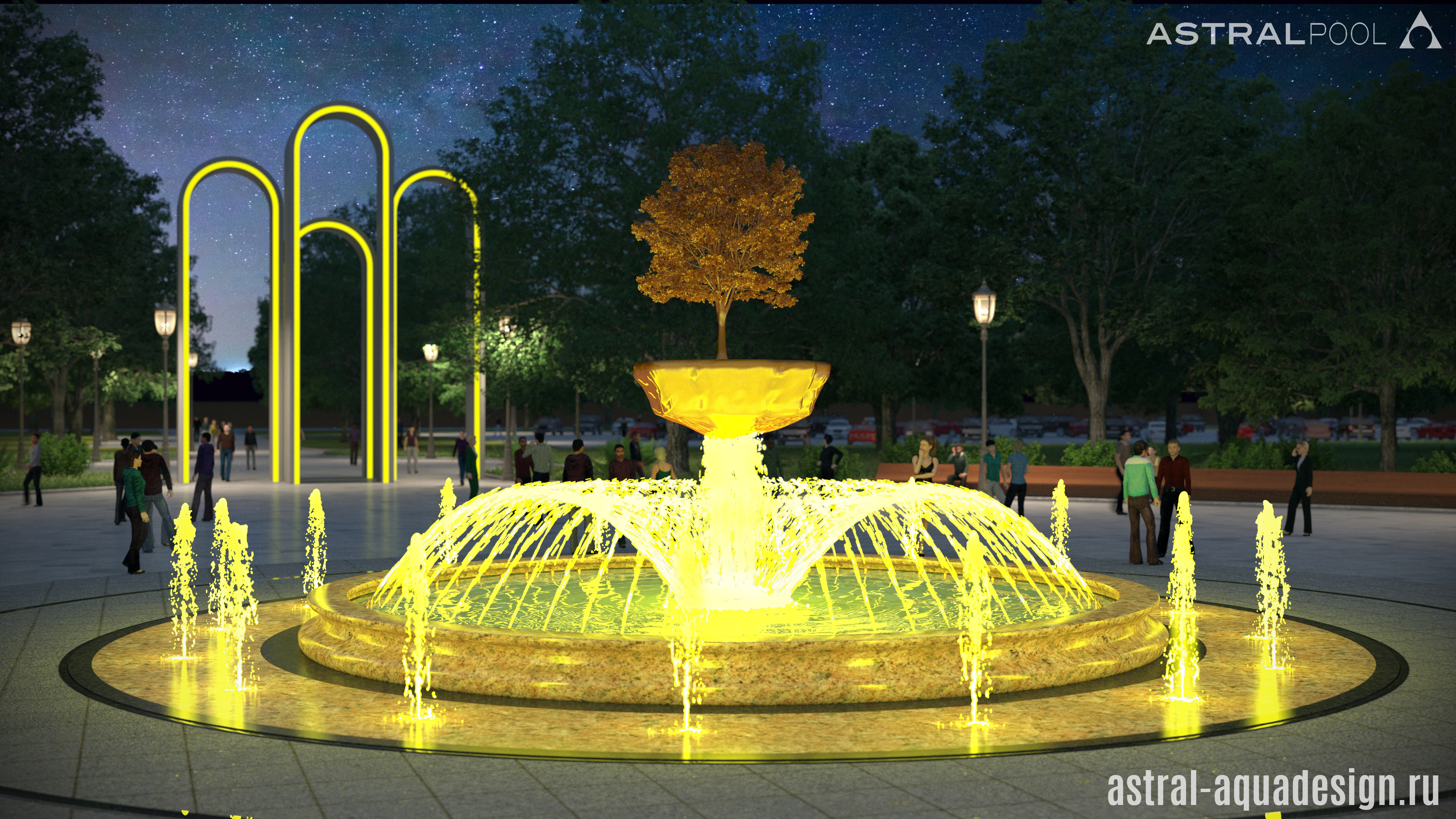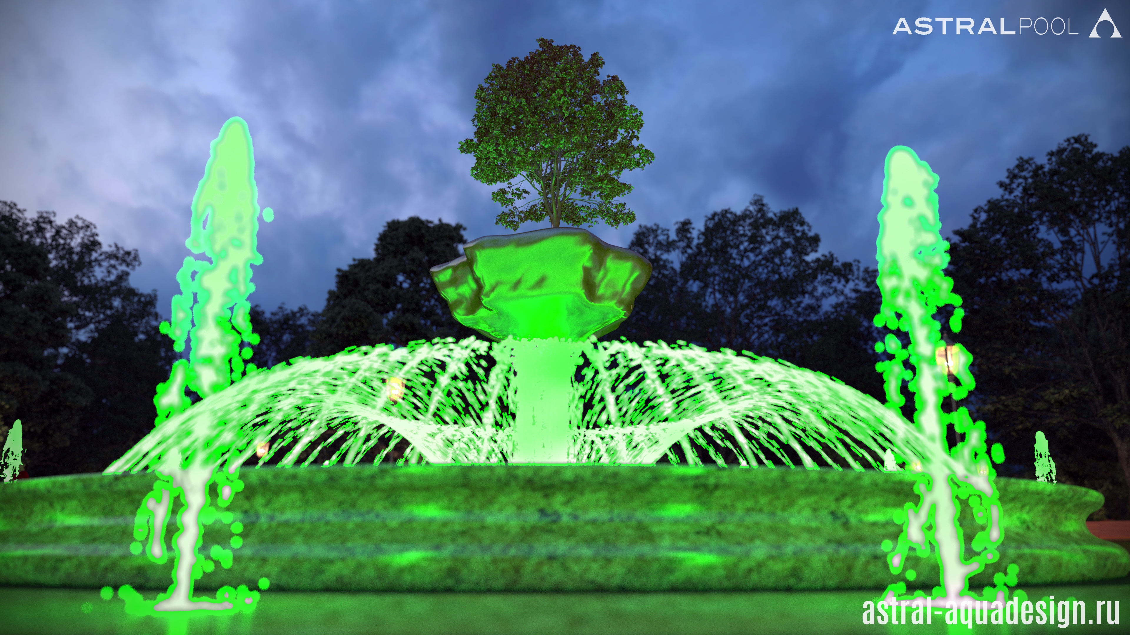 Проект фонтана со сульптурой изображающей дерево разработали наши специалисты для установки в парке Могилева (Беларусь). Необычная технология "парящий камень" создает ощущение воздушности композиции и неизменно притягивает к себе внимание. Ряд параболических струй обрамляющих центр чаши, дополнительно усилят этот эффект. Проект предусматривает использование RGB подсветки в вечернее время. А также может быть дополнен музыкальным сопровождением.