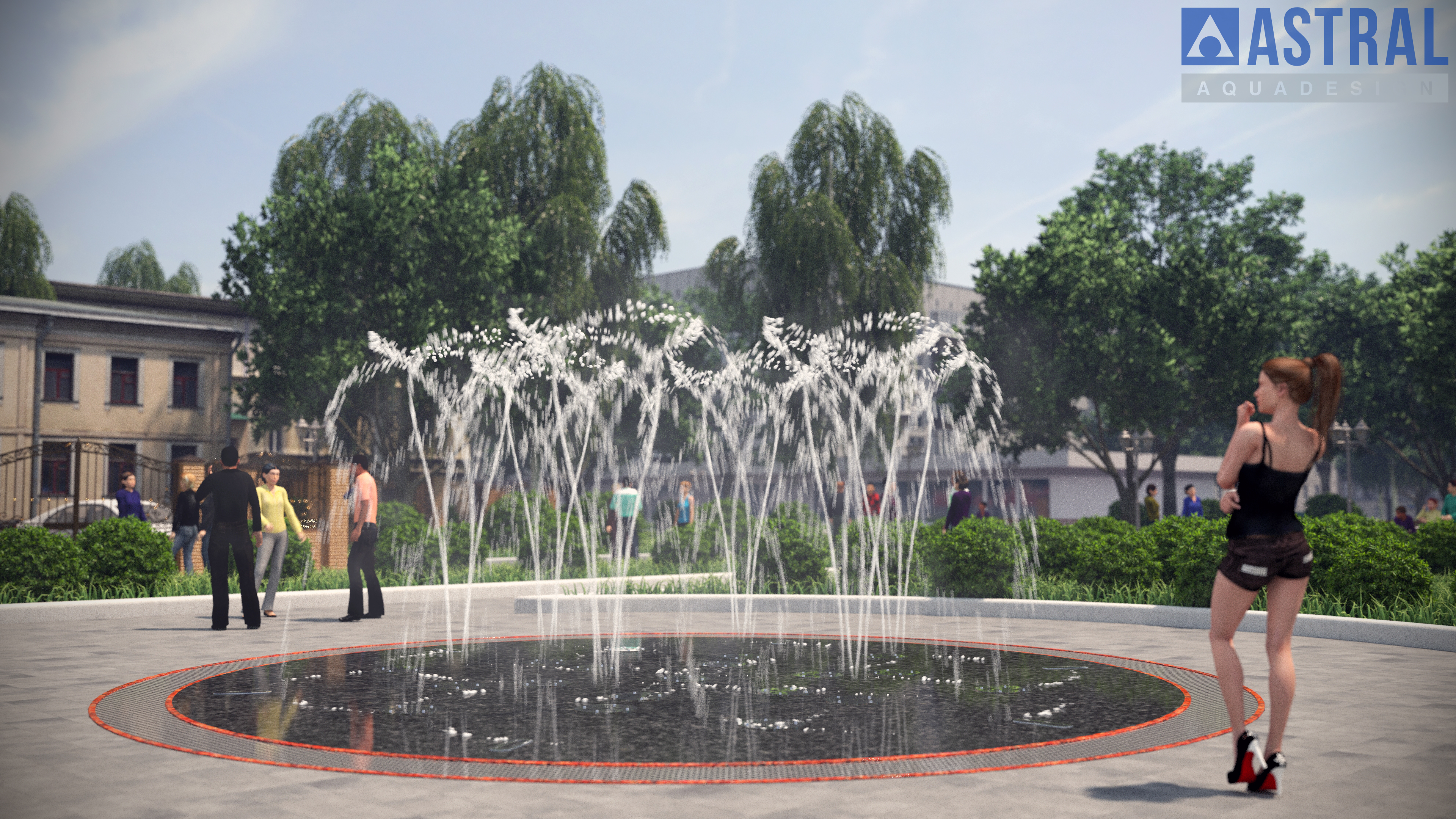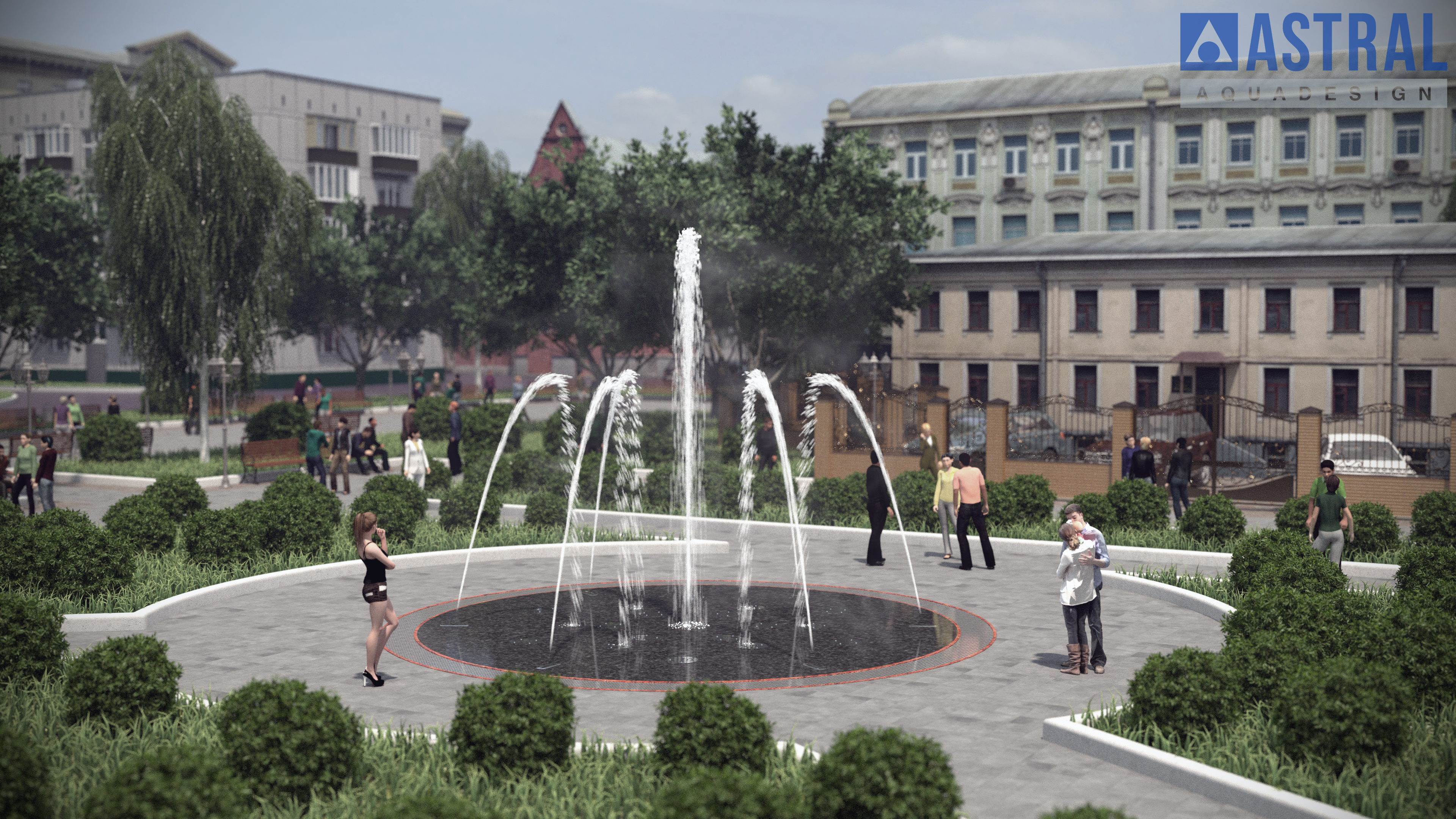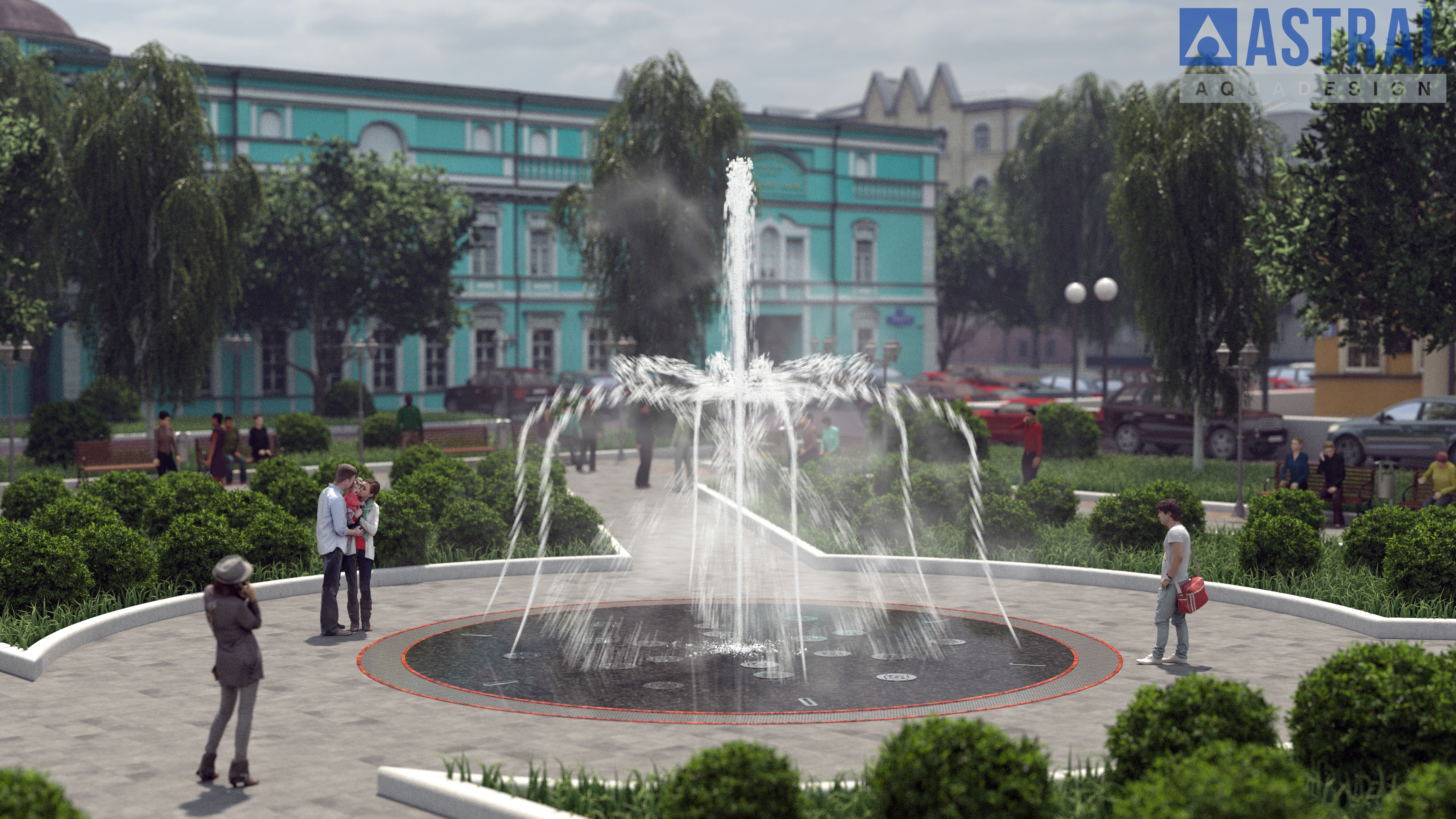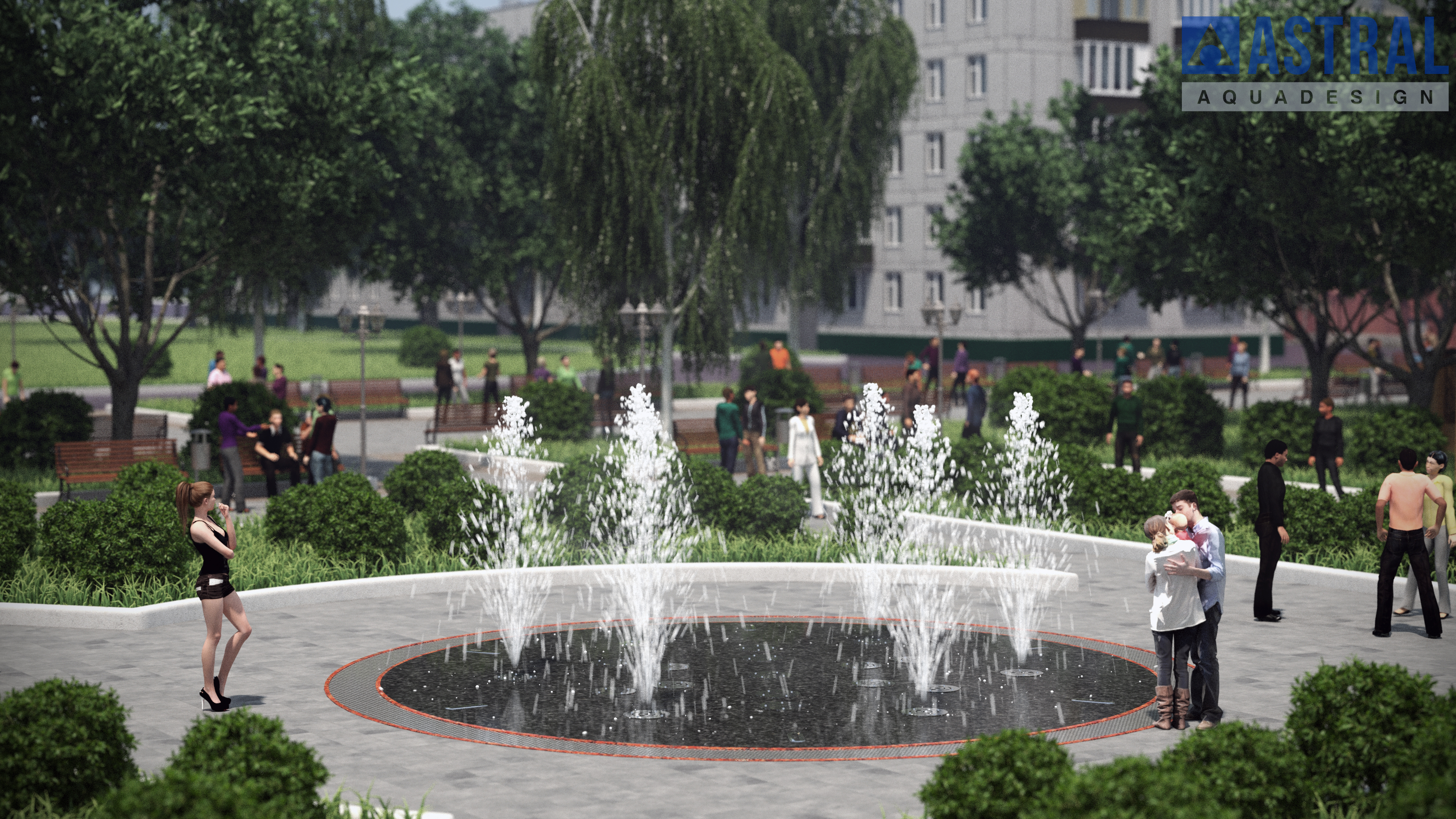 Проект пешеходного фонтана с круглой чашей отлично подходит для установки на городской площади или в сквере.