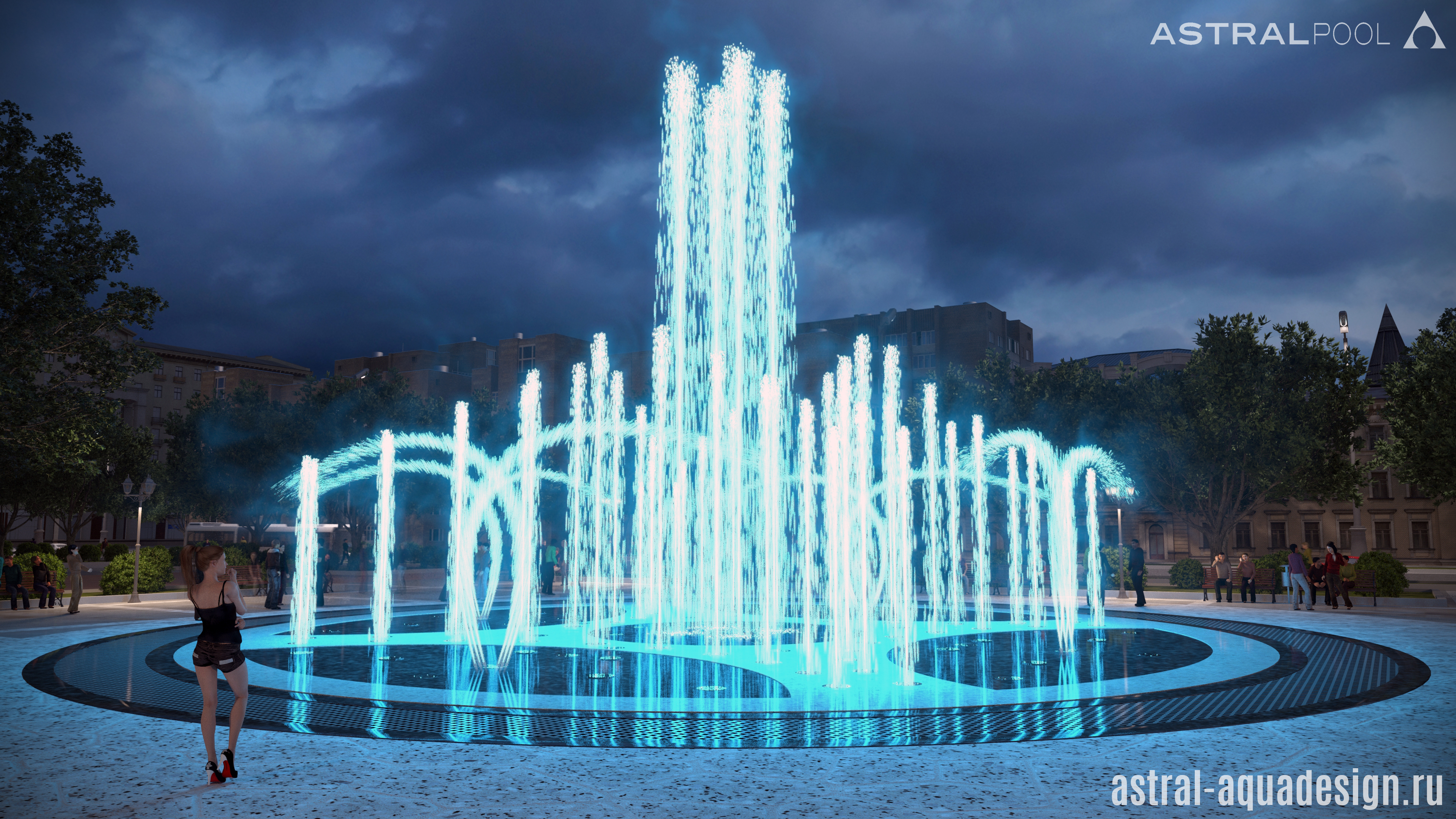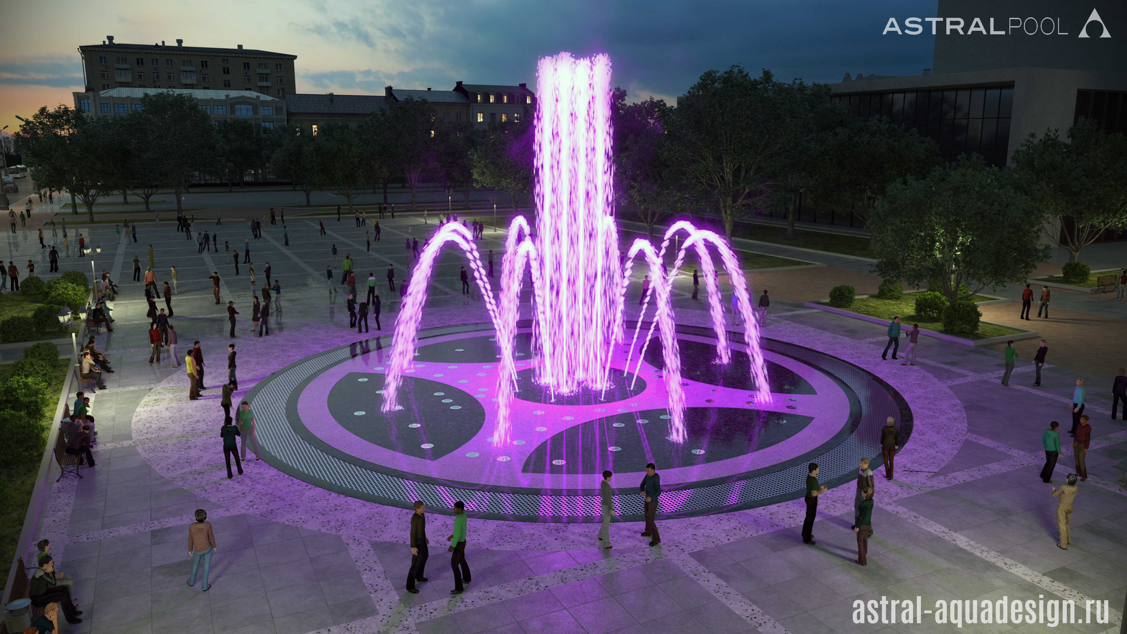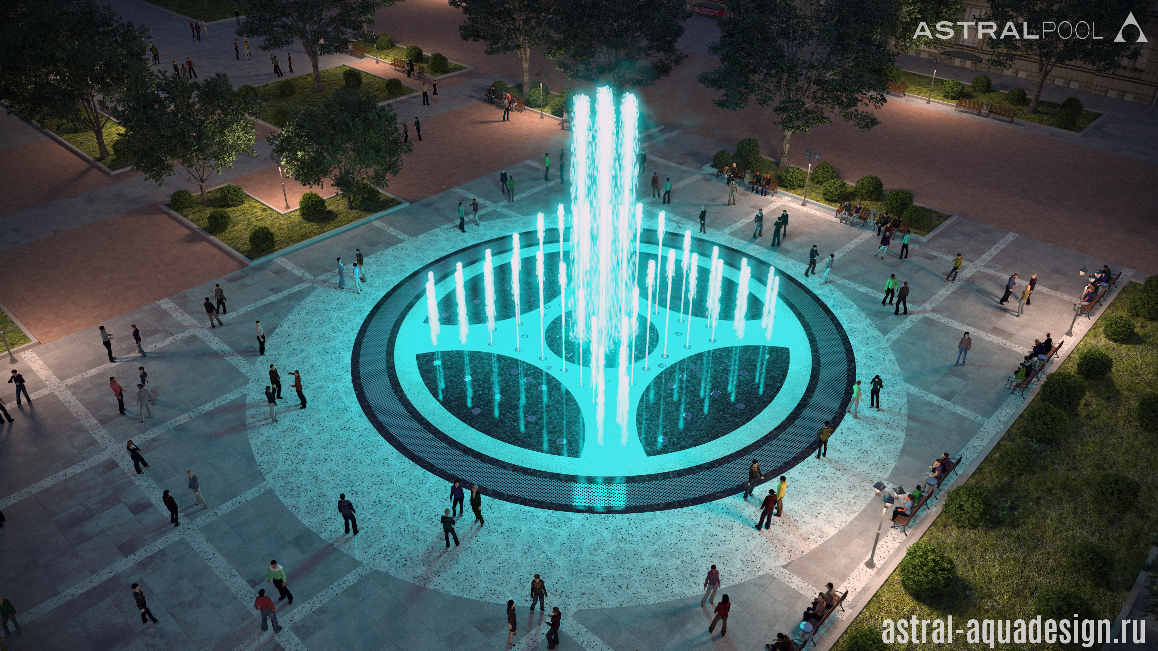 На городской площади в городе Керчь будет находиться впечатляющий фонтан, который станет настоящей достопримечательностью города. Его диаметр составляет 24 метра, а высота струй достигает 15 метров. Фонтан оборудован разноцветной светодиодной подсветкой, что делает его особенно красивым в вечернее время. Это место приносит свежесть и радость горожанам и гостям города. Благоустройство территории вокруг фонтана делает его еще более привлекательным для посещения. Вокруг фонтана будут собираться люди, наслаждаться солнечными днями и прогуливаться под его струями. Вода поднимается высокими потоками, создавая динамичный и живописный эффект.