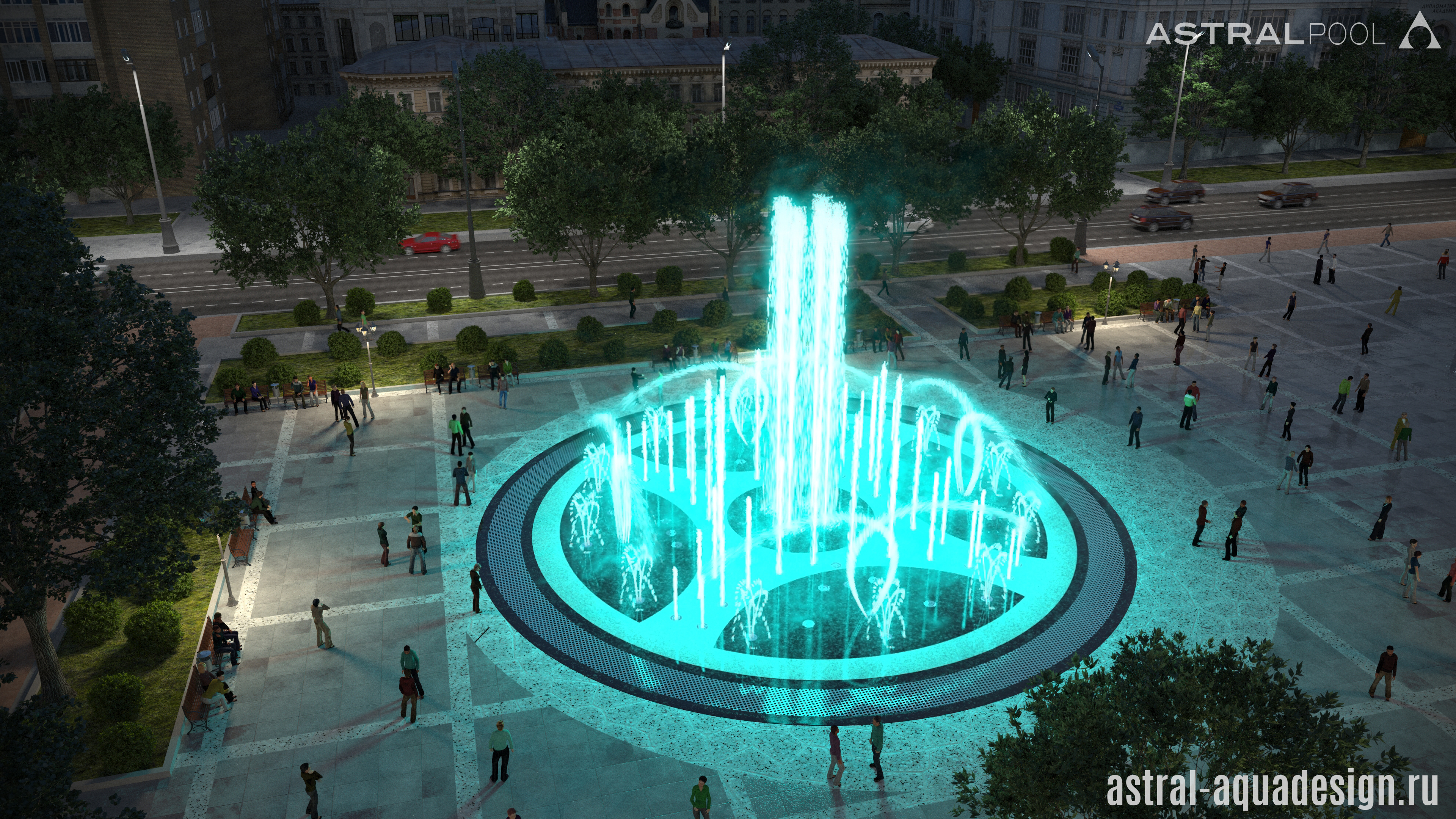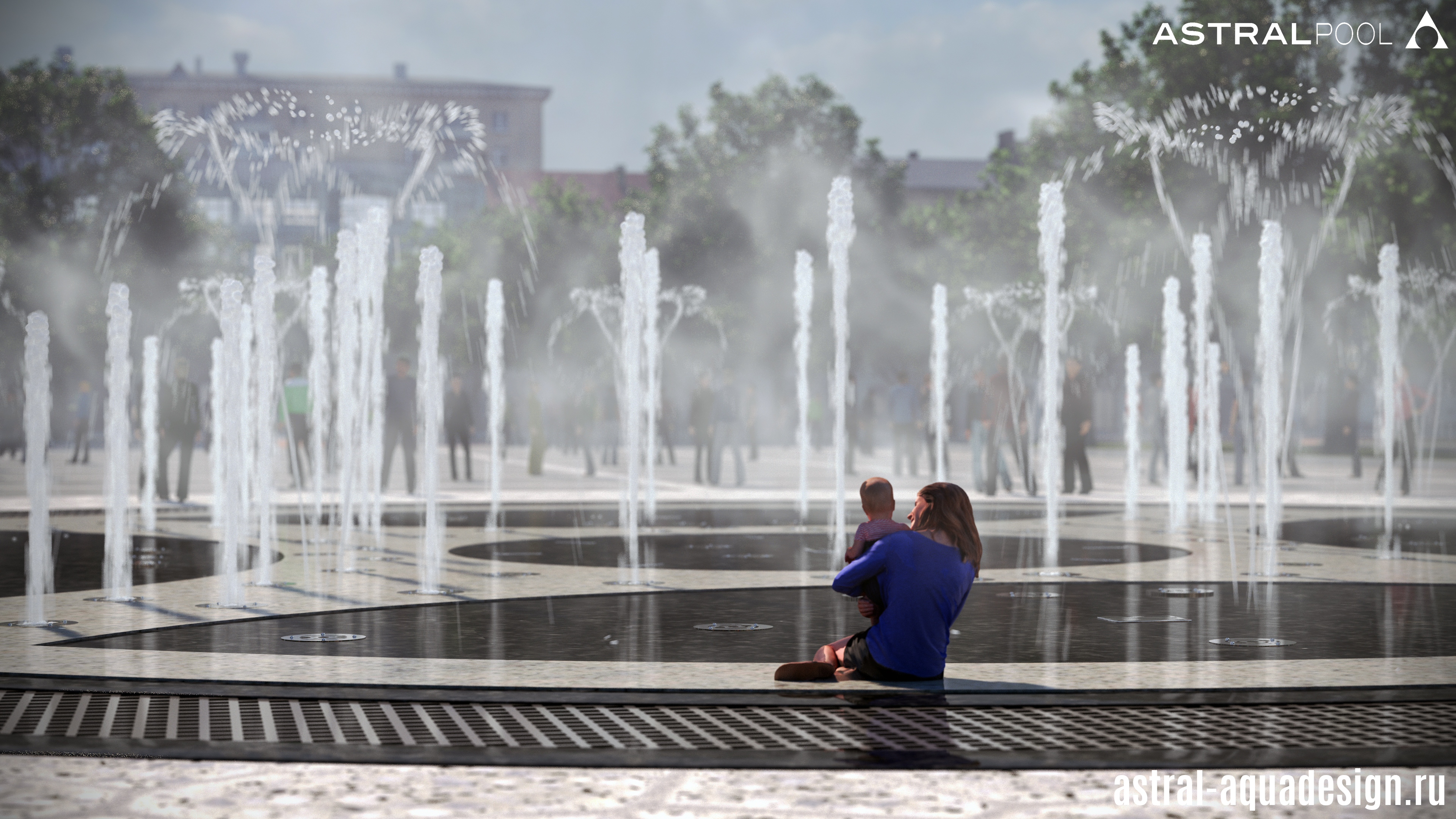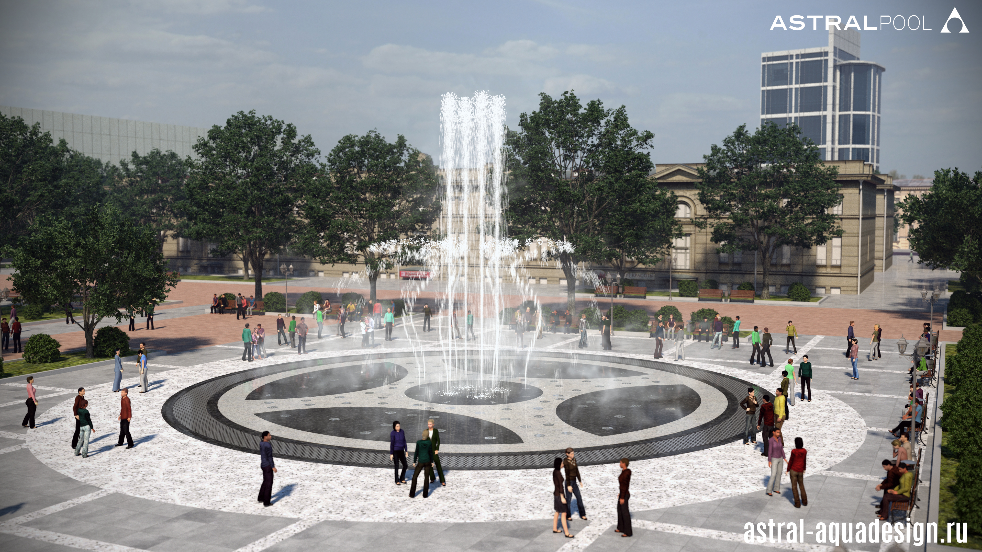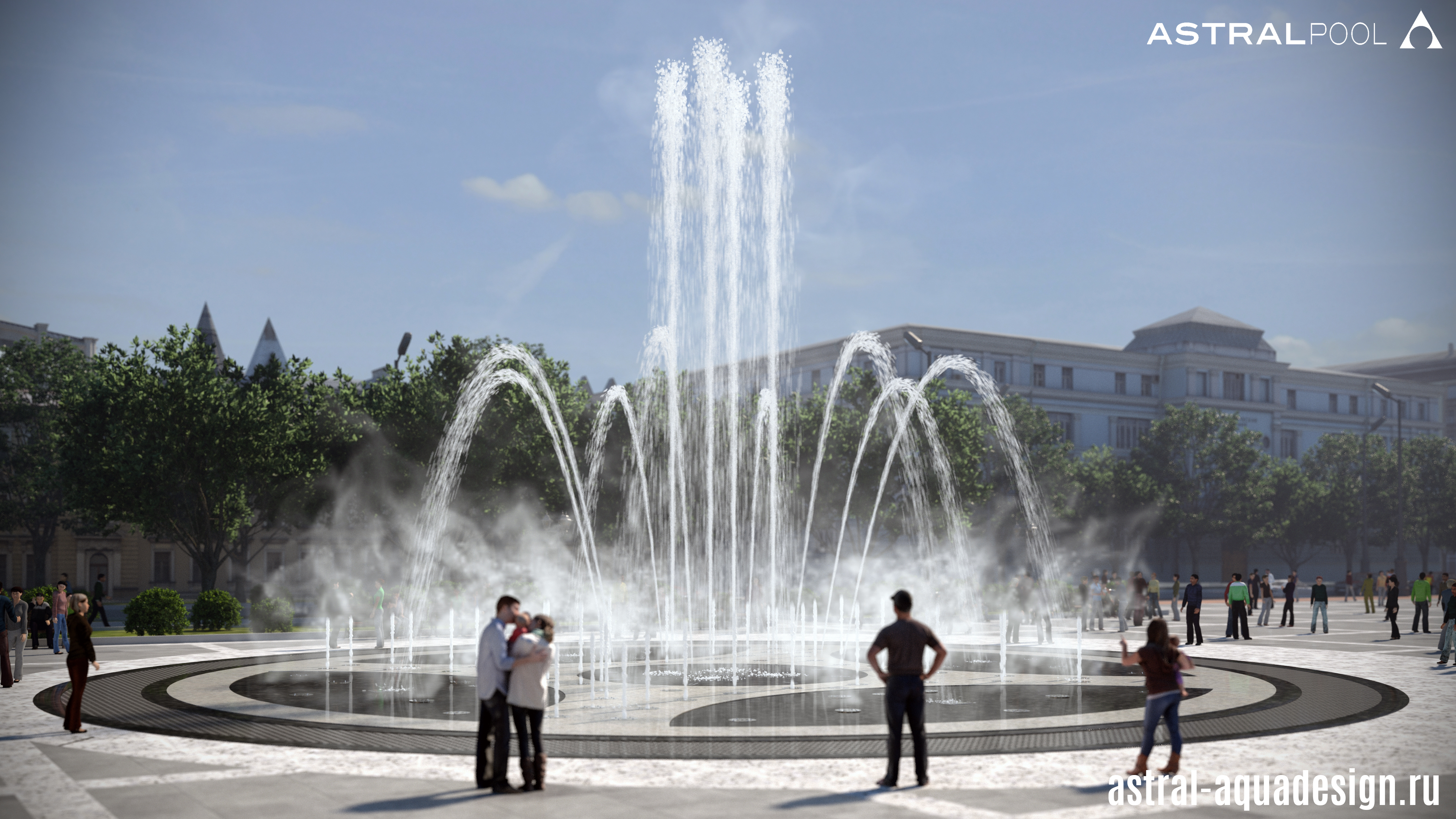 На городской площади в городе Керчь будет находиться впечатляющий фонтан, который станет настоящей достопримечательностью города. Его диаметр составляет 24 метра, а высота струй достигает 15 метров. Фонтан оборудован разноцветной светодиодной подсветкой, что делает его особенно красивым в вечернее время. Это место приносит свежесть и радость горожанам и гостям города. Благоустройство территории вокруг фонтана делает его еще более привлекательным для посещения. Вокруг фонтана будут собираться люди, наслаждаться солнечными днями и прогуливаться под его струями. Вода поднимается высокими потоками, создавая динамичный и живописный эффект.