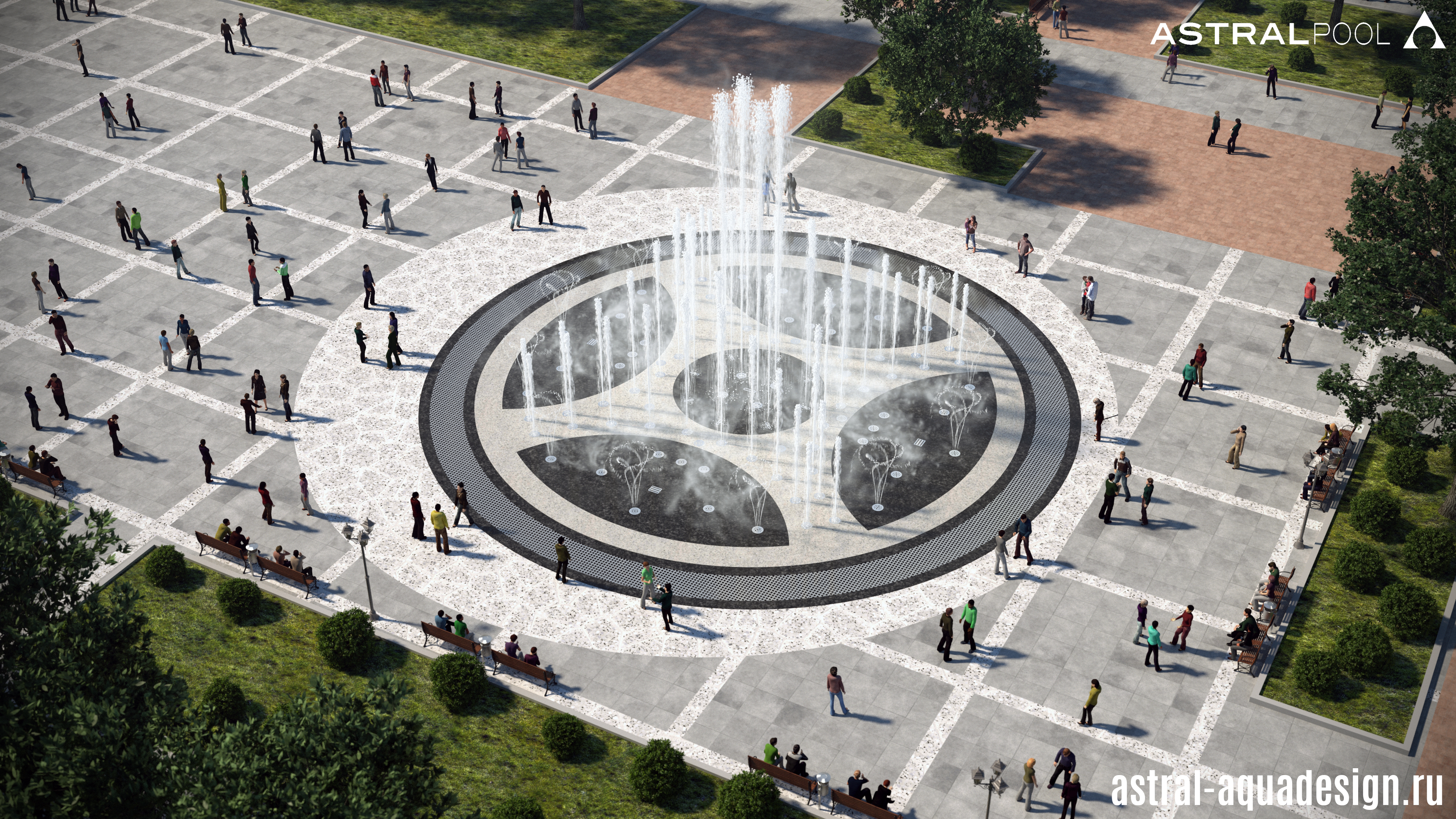 Сухой фонтан с музыкой диаметром 24 метра в Керчи