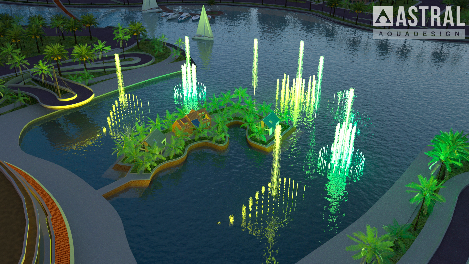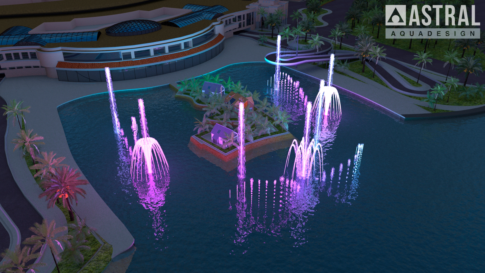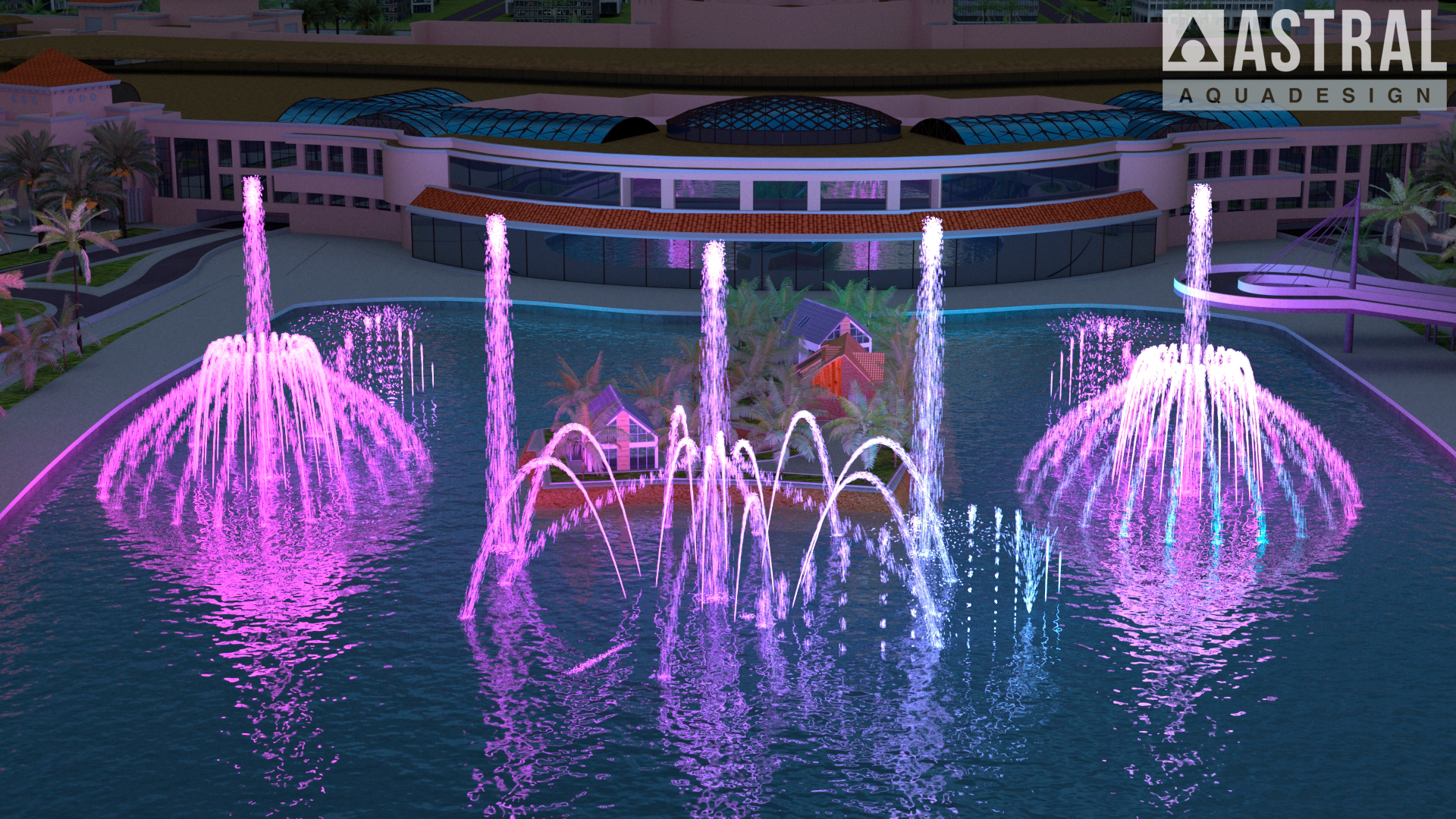 Специалисты нашей компании по заданию крупного застройщика разработали новую концепцию Водного шоу. В фонтане применены самые современные технологии по созданию музыкального мультимедийного фонтана. Здесь использованы насосы со встроенными частотными преобразователями, быстродействующие клапаны, 1D и 2D роботы, форсунки с изменяемой геометрией струй и т.д. В вечернее время фонтан подсвечивается новыми сверхмощными светодиодными светильниками RGBWA.