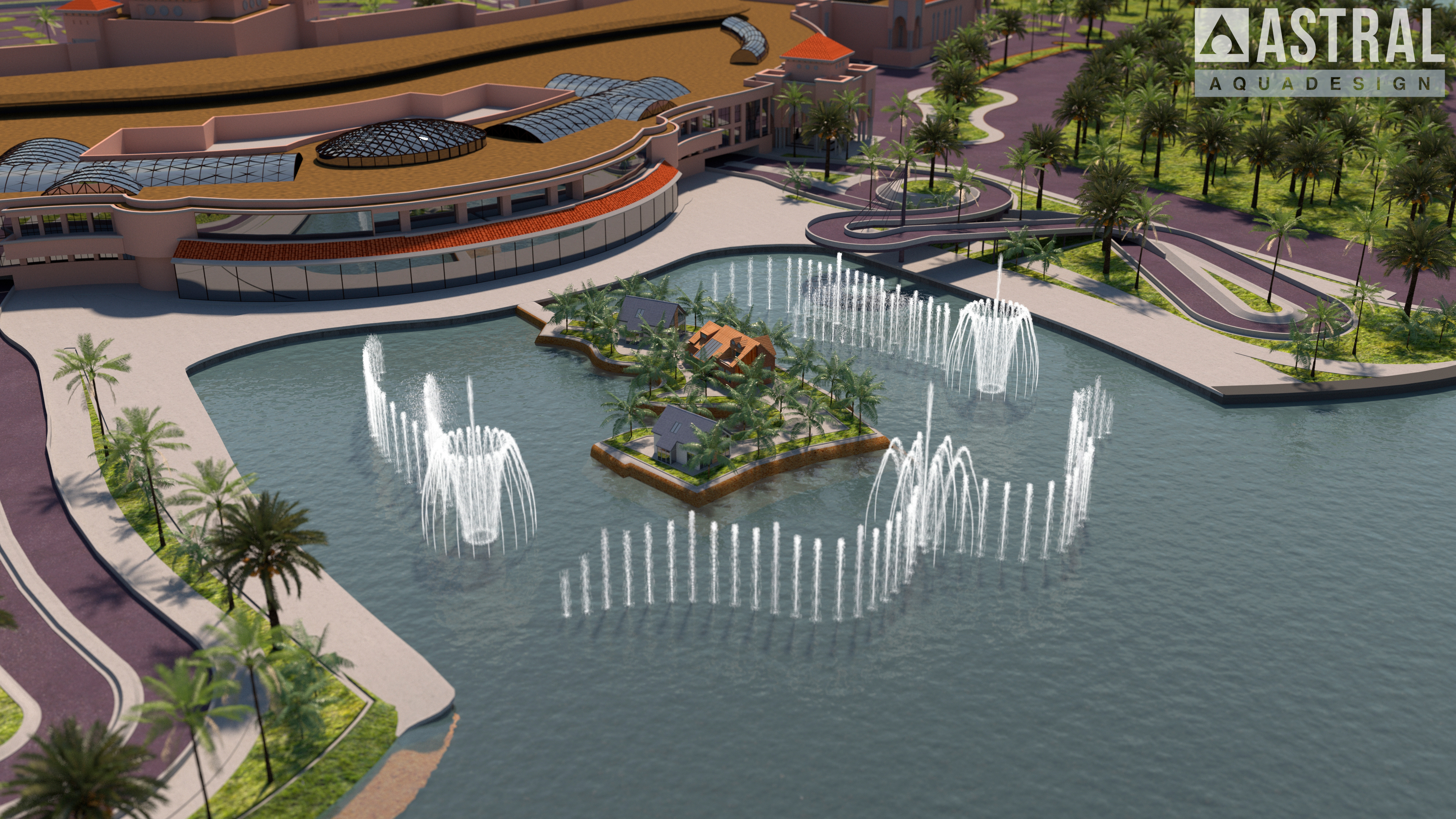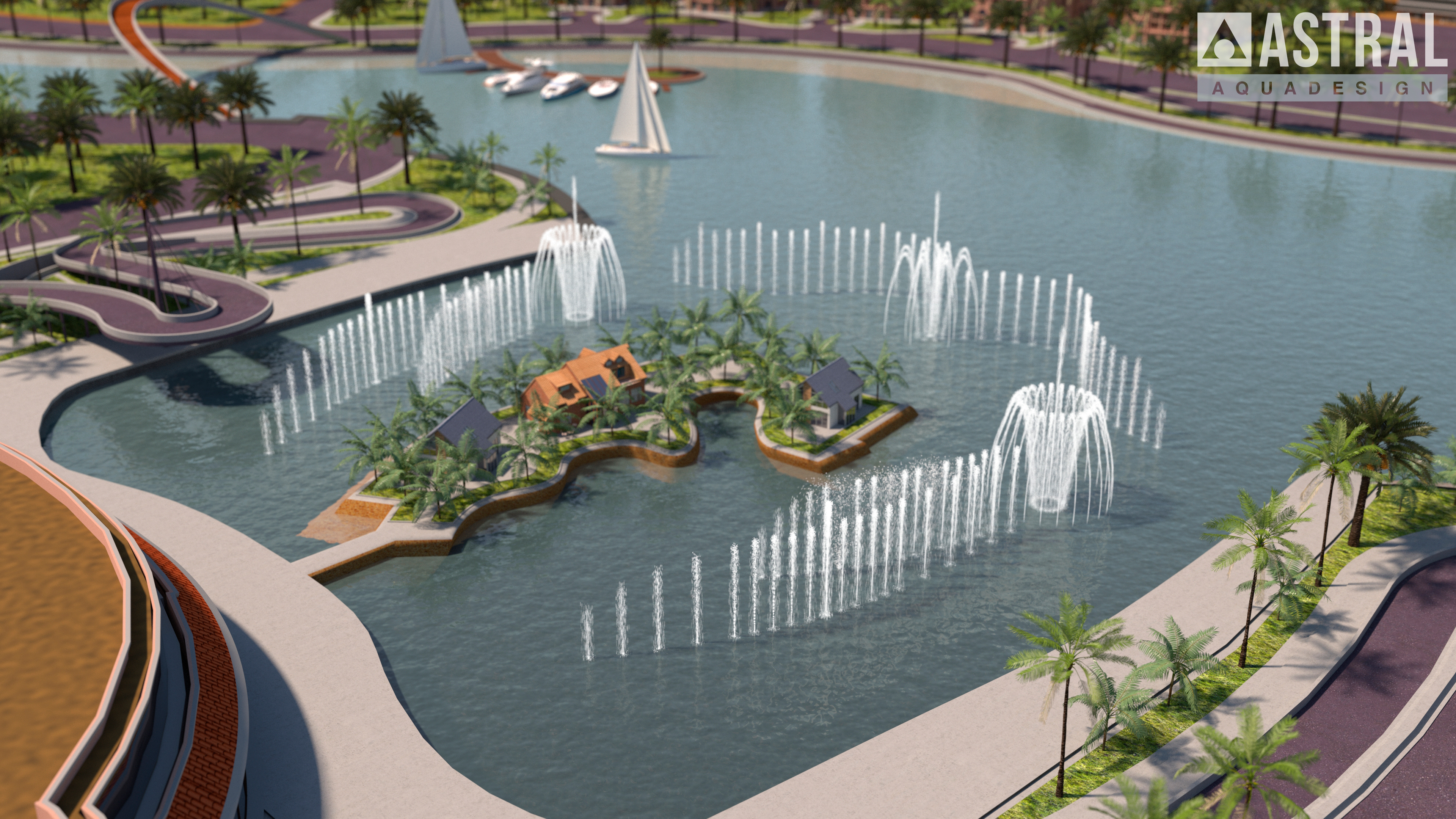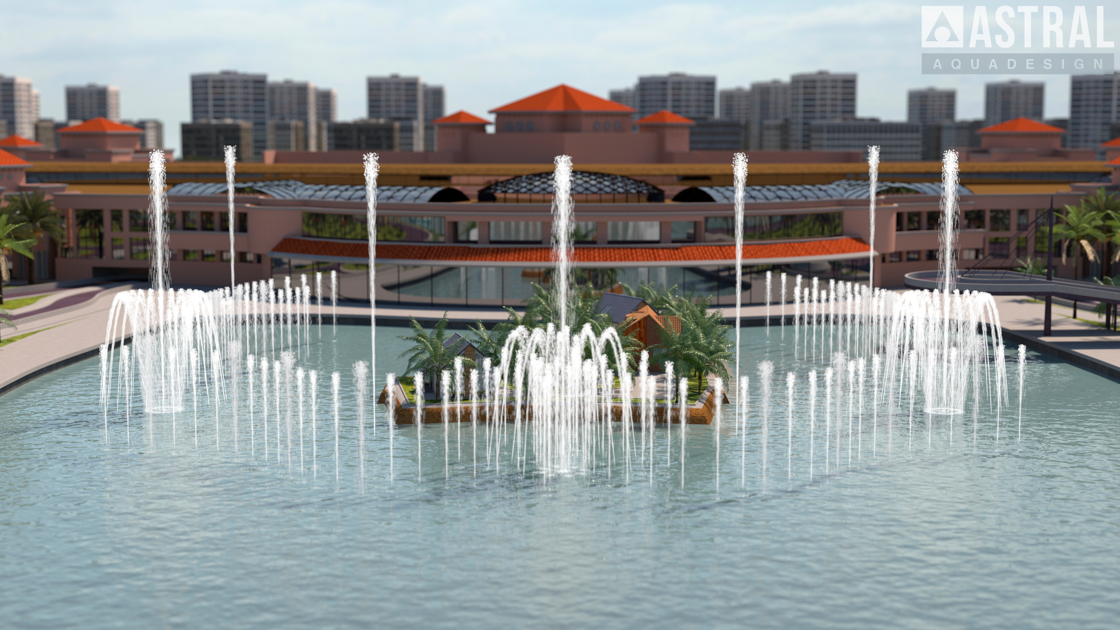 Специалисты нашей компании по заданию крупного застройщика разработали новую концепцию Водного шоу. В фонтане применены самые современные технологии по созданию музыкального мультимедийного фонтана. Здесь использованы насосы со встроенными частотными преобразователями, быстродействующие клапаны, 1D и 2D роботы, форсунки с изменяемой геометрией струй и т.д. В вечернее время фонтан подсвечивается новыми сверхмощными светодиодными светильниками RGBWA.