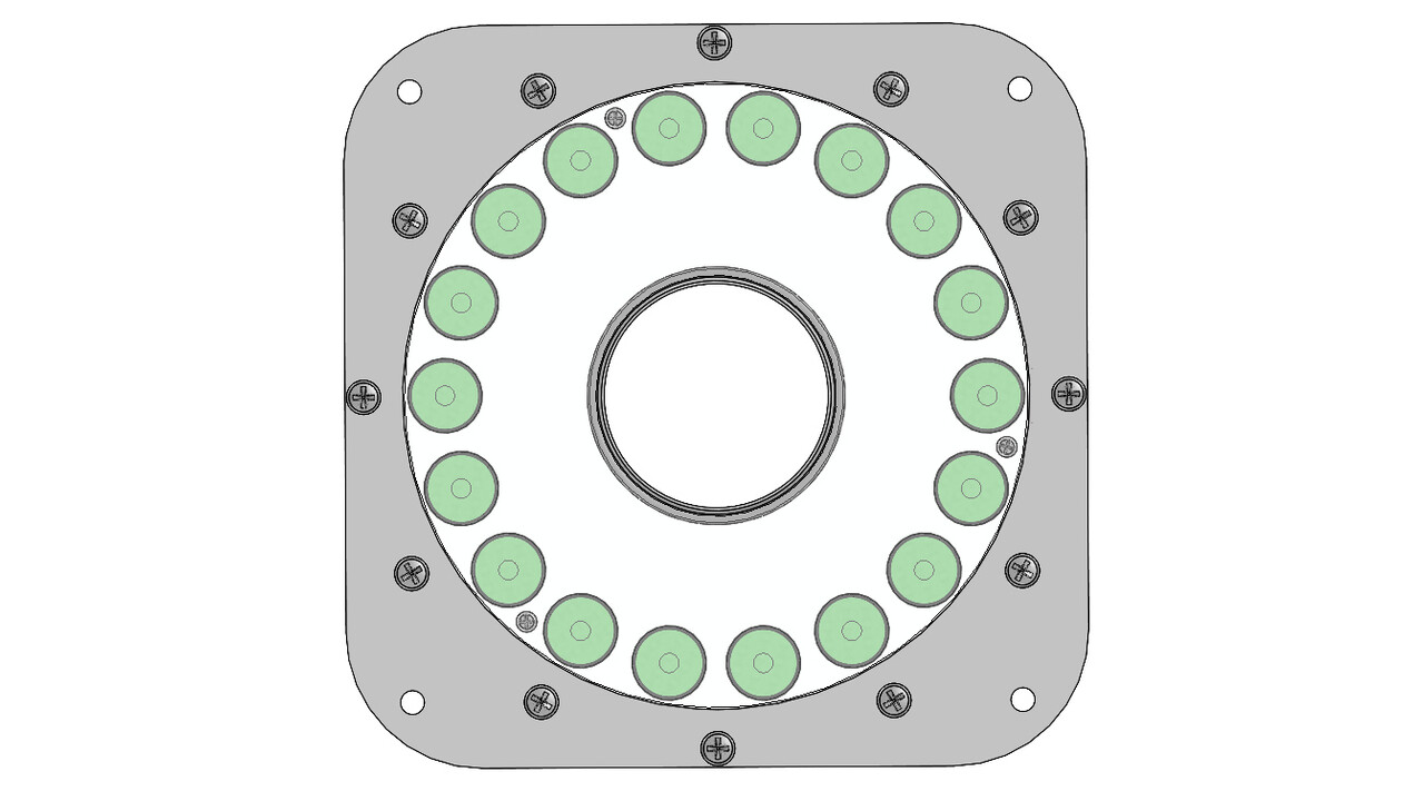 Кольцевой светильник Astral Corona можно доукомплектовать вставкой с внутренней резьбой 1", 1½” или 2” по выбору для непосредственного прямого монтажа светильника на фонтанной насадке. Другой важной особенностью прожектора Astral Corona – это ремонтопригодность. Светильник полностью разбирается и все его комплектующие от уплотнения до светодиодного модуля возможно заменить или отремонтировать.