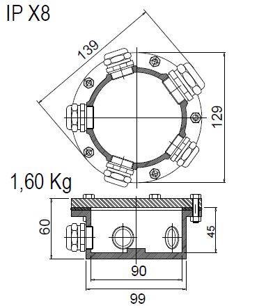 Распаячная подводная коробка круглая 4x10-14мм Junction Box 1PG21 + 4PG16