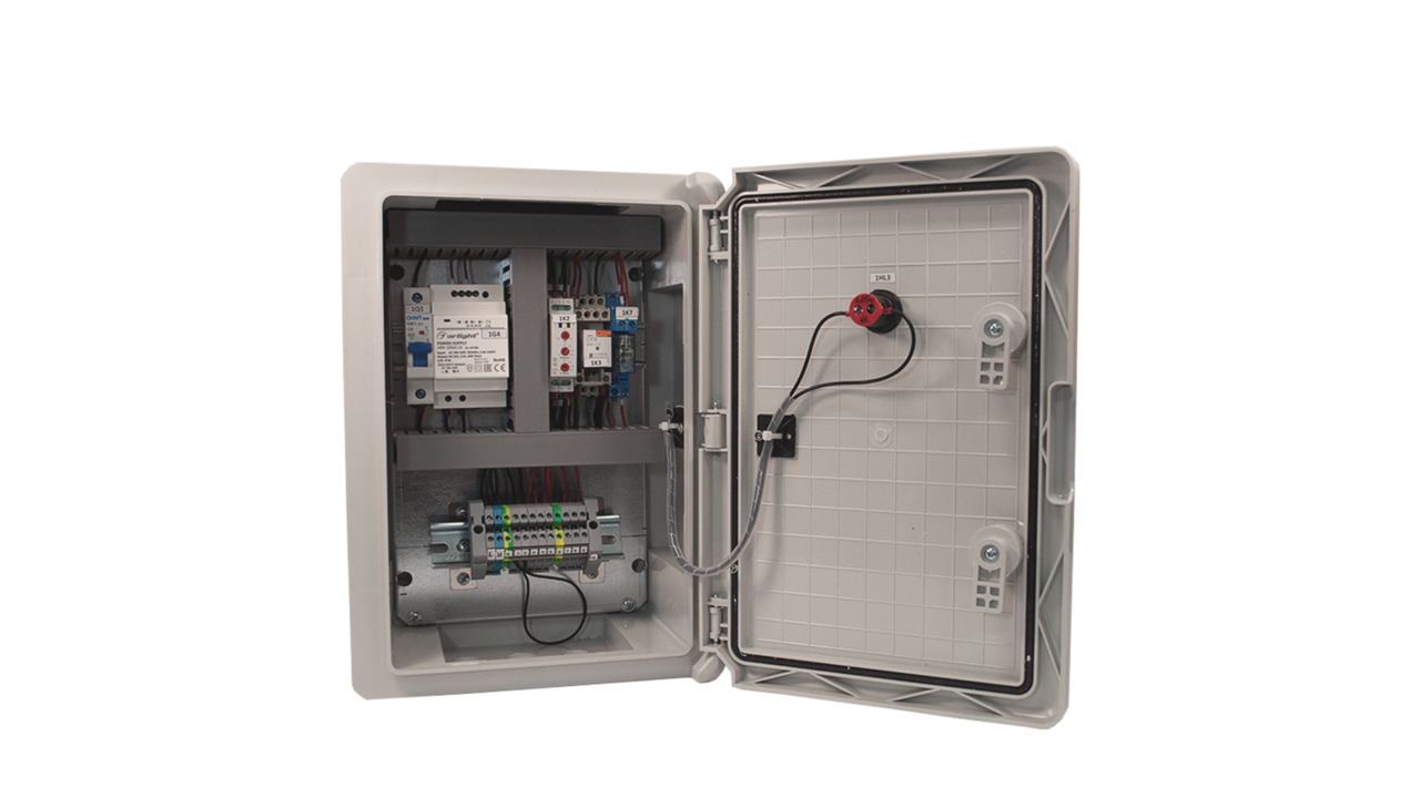 На дверце шкафа расположена сигнальная лампа затопления технического помещения.