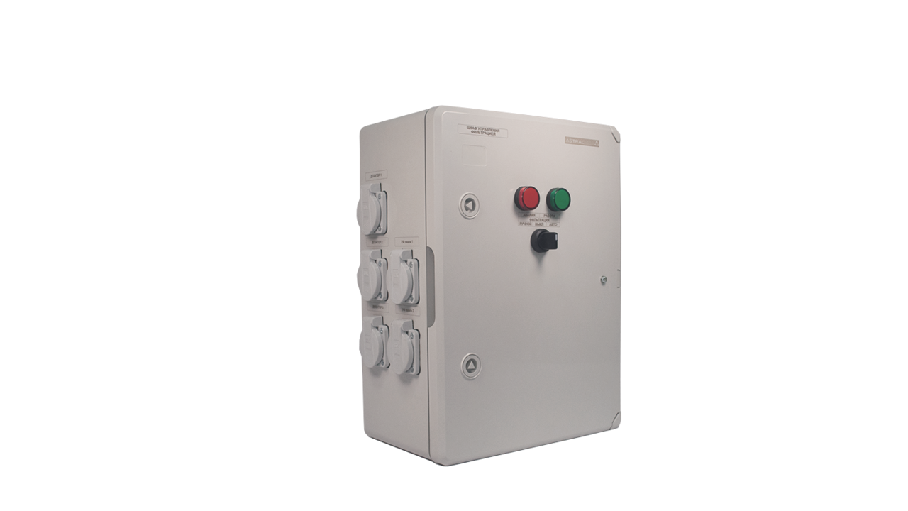 Комплектация шкафа: автоматы, УЗО, таймер электронный недельный, контактор, розетка влагозащищенная IP54 16А для Уф-излучателя - 2 шт., розетка влагозащищенная IP54 16А для дозатора химии - 3 шт.