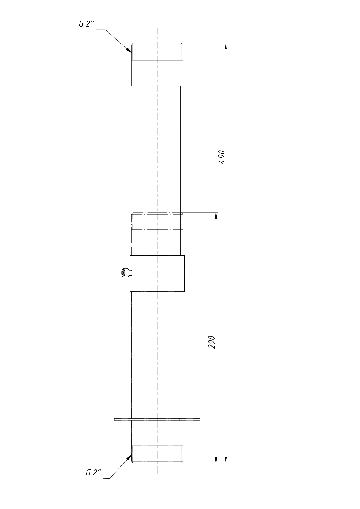 Закладной патрубок телескопический подключения скиммера, резьба 2" (нар.) - резьба 2" (нар.)