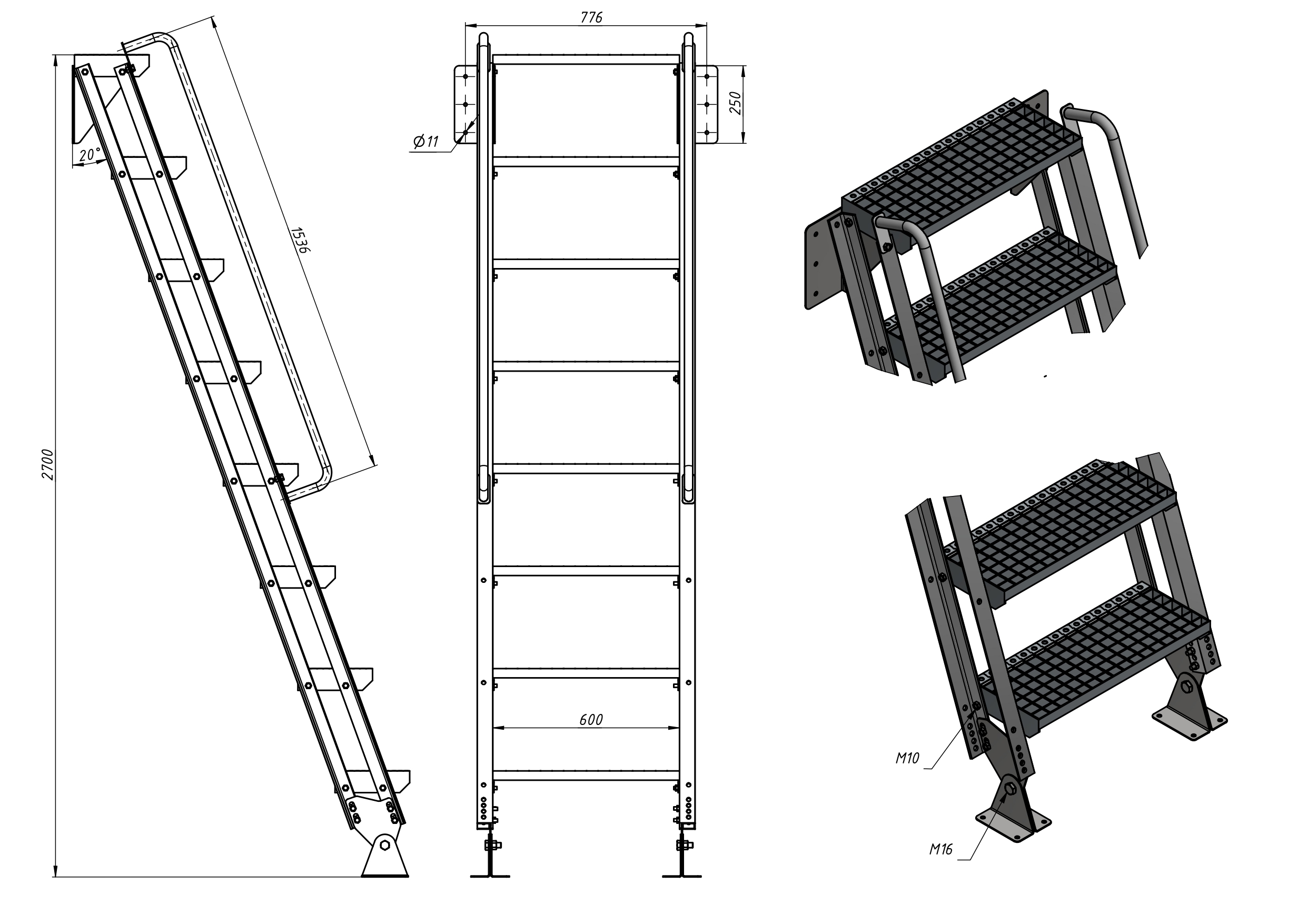 По запросу разрабатываем и изготавливаем лестницы других размеров, конфигураций и комплектаций.