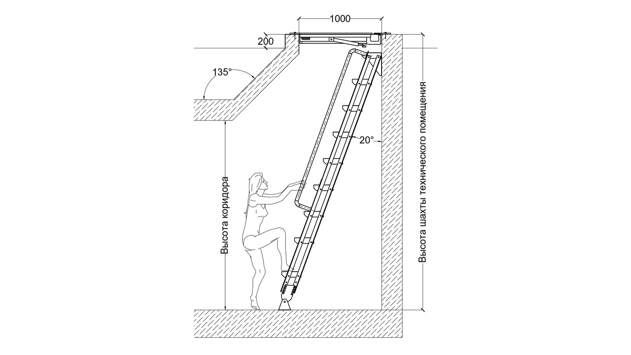 Лестница технического помещения фонтана на высоту шахты 300 см