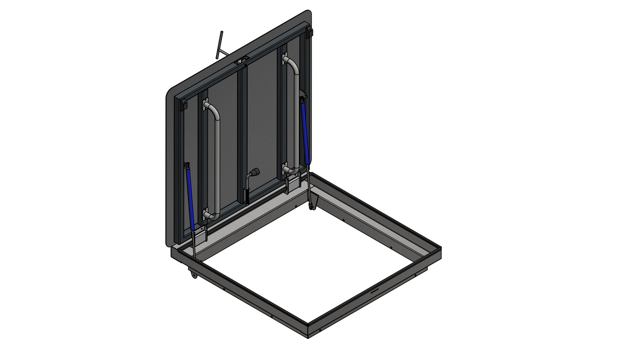 Инженеры нашей компании разработали специальный люк технического помещения фонтана. Представляет собой герметичную конструкцию для наружной установки. Предусмотрен проем достаточного размера для заноса и размещения габаритного фонтанного оборудования, такого как насосы, шкафы управления и фильтры. Люк снабжен поручнем, газлифтом, фиксатором открытия и закрывающим устройством. Верхняя крышка выполнена из стали с антискользящим теснением. Люк выдерживает нагрузку от лёгкой уборочной техники.
