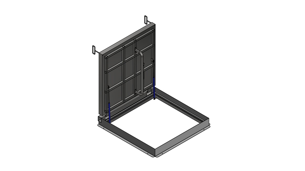 Инженеры нашей компании разработали специальный люк технического помещения фонтана. Представляет собой герметичную конструкцию для скрытой установки под облицовку толщиной 100 мм. Предусмотрен проем достаточного размера для заноса и размещения габаритного фонтанного оборудования, такого как насосы, шкафы управления и фильтры. Люк снабжен поручнем, газлифтом, фиксатором открытия и закрывающим устройством. Верхняя крышка выполнена из стали с антискользящим теснением. Люк выдерживает нагрузку от лёгкой уборочной техники.