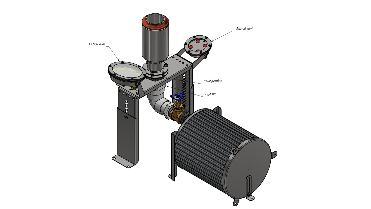 Уникальным предложением нашей компании является база крепления насадки и двух светильников. Модель кронштейна серии BKN преимущественно применяется в фонтанах с погружными оборудованием, где необходимо надежно смонтировать форсунку в стороне от подводного насоса. На горизонтальной поверхности BKN предусмотрены также отверстия для монтажа светильников. База имеет регулировку по высоте в диапазоне 27-46 см и выбирается по диаметру трубопровода или насадки. Нами разработан модельный ряд таких кронштейнов для диаметров от 1” до 3”. Еще одной областью применения базы BKN – это необходимость снять нагрузку с напорного трубопровода при наличии тяжелой фонтанной насадки из бронзы или меди большого диаметра.