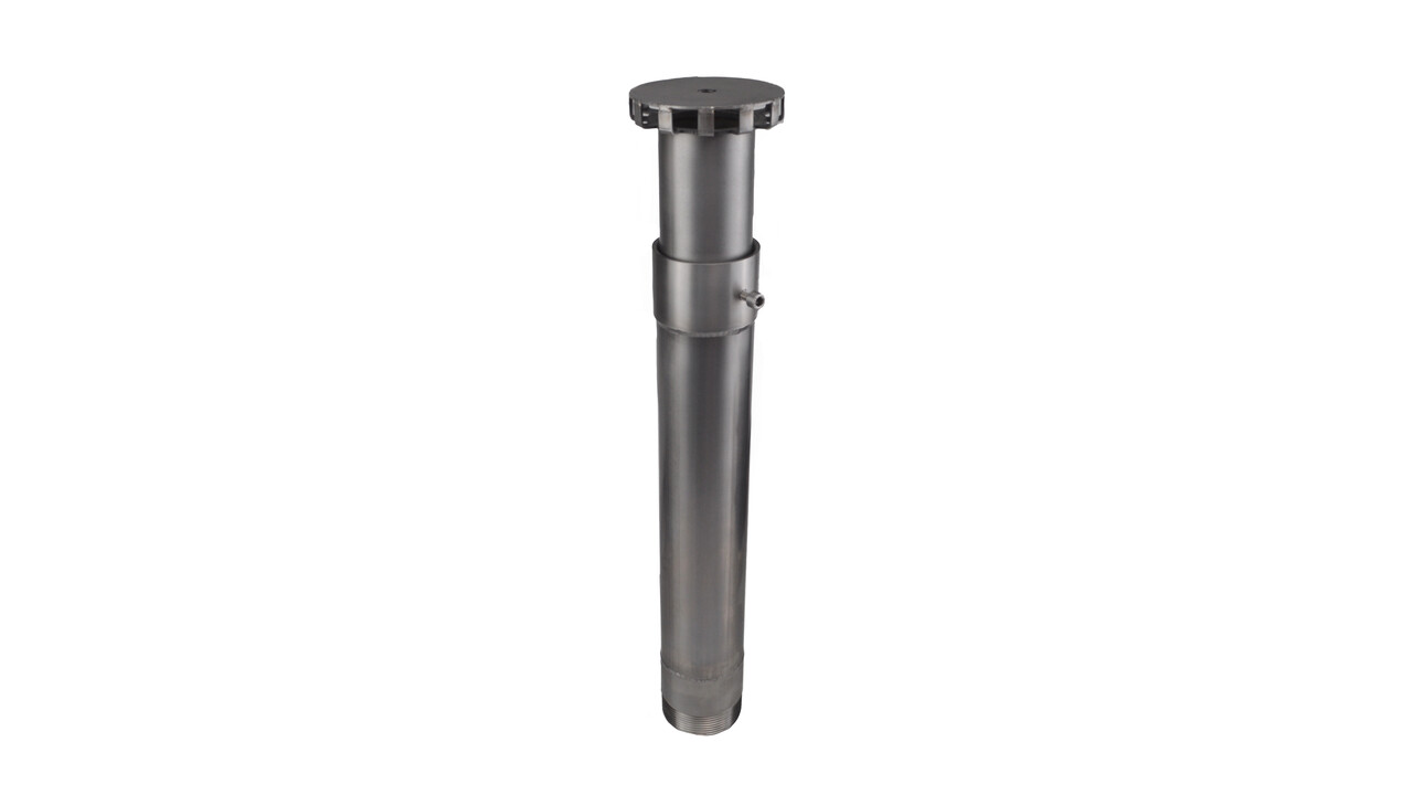 Специальная телескопическая труба предназначена для поддержания стабильного уровня воды в фонтане и предотвращения от переполнения чаши. Переливную трубу можно смонтировать в любом месте фонтана, установив ее на закладную деталь. Телескопическая конструкция позволяет отрегулировать максимальный уровень воды в диапазоне от 340 до 600 мм. Через трубу перелива очень удобно слить воду просто открутив ее от закладной в днище фонтана, тем самым не используя отдельный донный слив. По запросу изготавливаем любые модификации телескопических переливных труб как по диаметру, так и по длине.