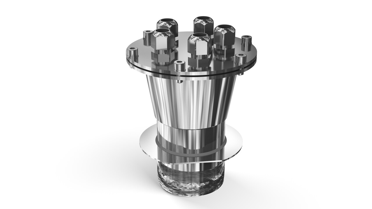 Кабельный ввод - лучший способ обеспечить водонепроницаемое соединение кабелей и проход через стену или днище фонтана ниже уровня воды. Благодаря продуманной конструкции подводного кабельного ввода можно провести и расключить кабели разного диаметра. Это очень прочная и устойчивая к коррозии модель, изготовленная из нержавеющей стали.