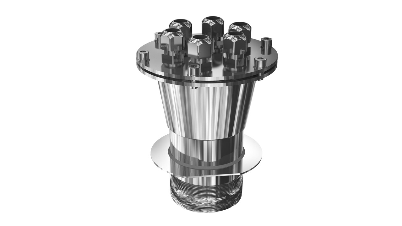 Кабельный ввод - лучший способ обеспечить водонепроницаемое соединение кабелей и проход через стену или днище фонтана ниже уровня воды. Благодаря продуманной конструкции подводного кабельного ввода можно провести и расключить кабели разного диаметра. Это очень прочная и устойчивая к коррозии модель, изготовленная из нержавеющей стали.