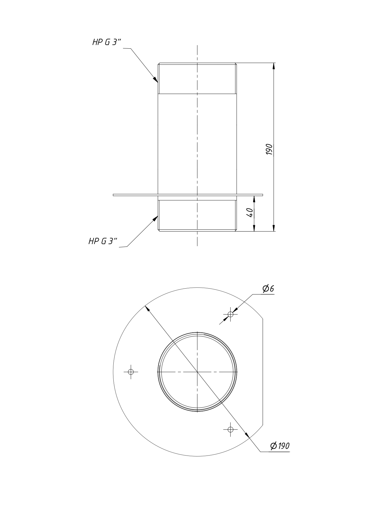 Закладной патрубок резьба 3" (нар.) - резьба 3" (нар.), длина до 50