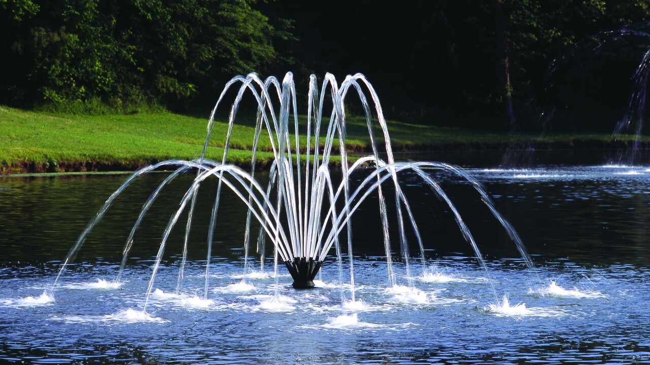 Насадка Double Arch для плавающего модуля Display Aerator представляет собой двухуровневую водную картину, которая состоит из 8 высоких дугообразных потоков и 8 подобных, более низких, струй. Этот узор плавающего фонтана имеет отличный визуальный эффект за счет двухуровневой комбинации струй, поскольку половина потоков находится на максимальной высоте, а другая половина создает внушительный диаметр.