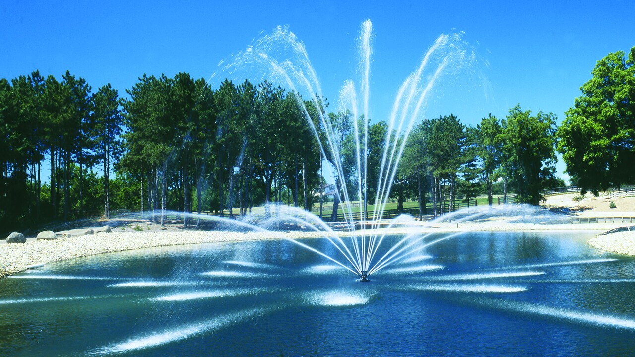 Насадка Spoke & Trellis для плавающего модуля Titan Fountain создает умеренно высокие изогнутые струи, окруженные низкими широкими потоками. Этот водный рисунок плавающего фонтана обеспечивает большую площадь покрытия, который хорошо смотрится не только днем, но и вечером с подсветкой.