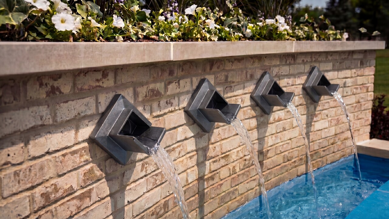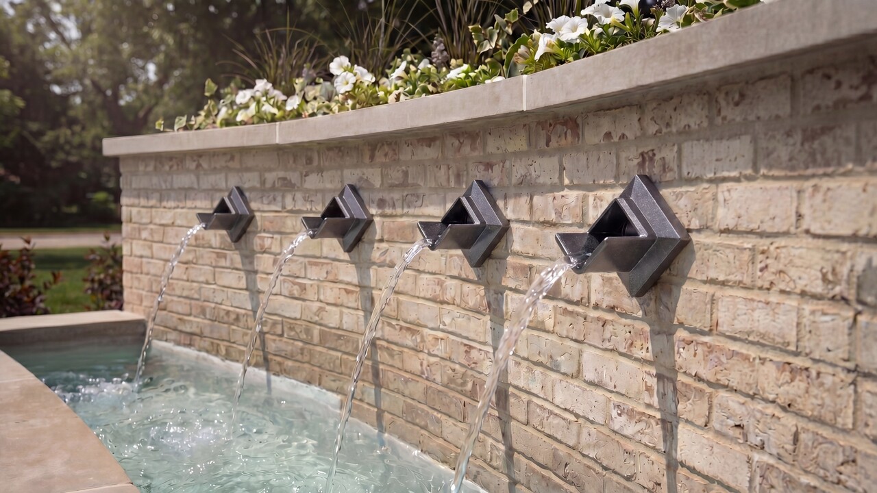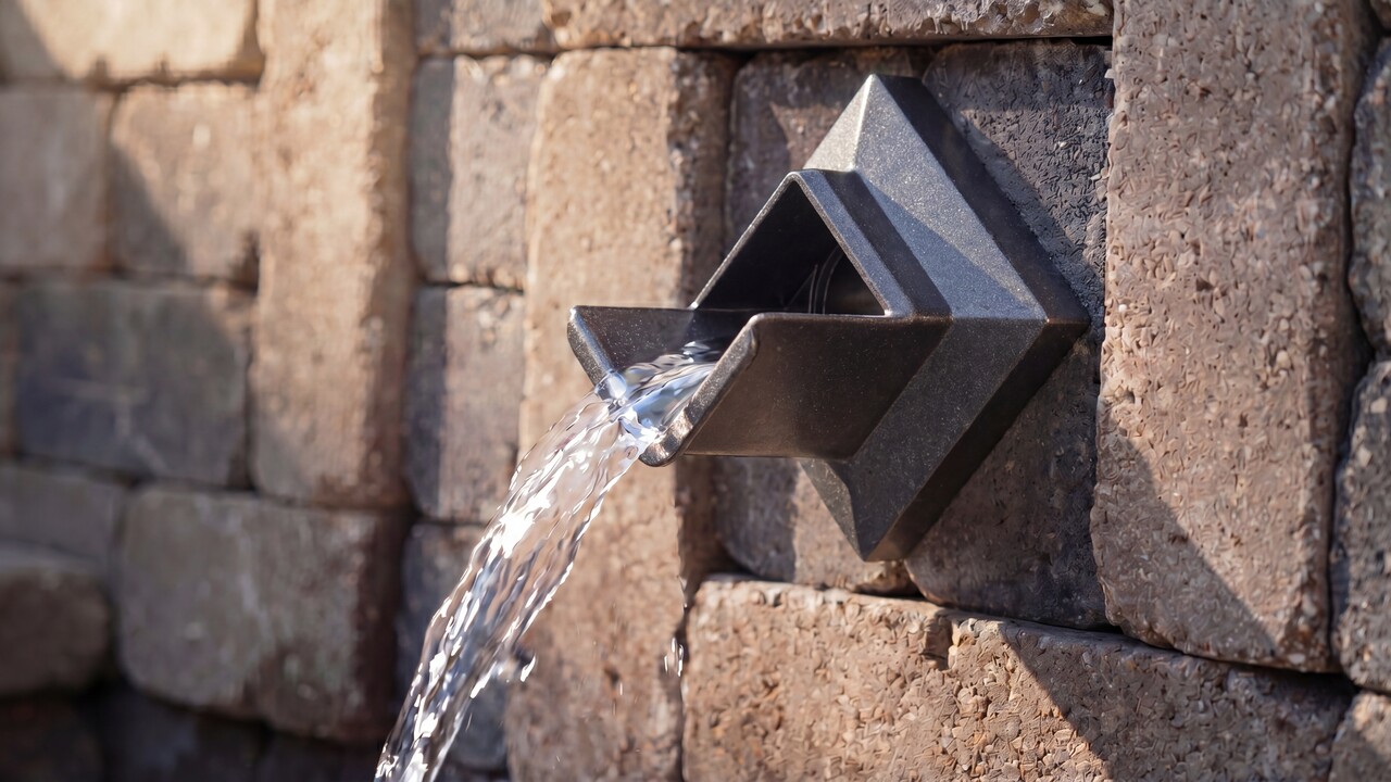 Настенные водосточные желоба — это простой и элегантный способ создать вид и звук воды на вертикальные поверхности. Желоба хорошо смотрятся не только в комбинации из нескольких штук, но также и в единичном количестве. Применяемый нержавеющий материал является привлекательным акцентом как для традиционных, так и для современных стен и патио.