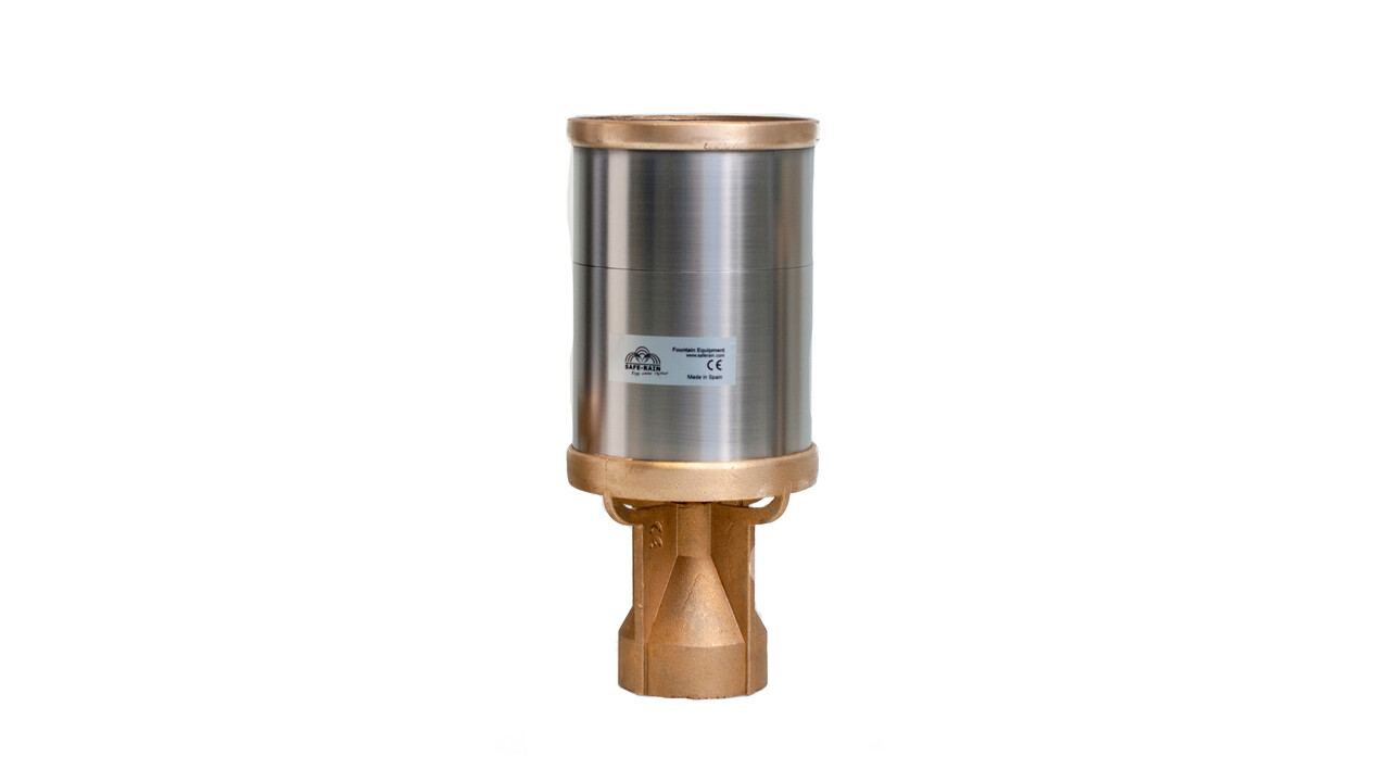 Данный тип насадок выполнен из комбинации двух металлов, а именно латуни и нержавеющей стали. Cascade Jet является одной из наиболее распространенных форсунок, которая активно используется в архитектурных фонтанах. Если она смонтирована согласно рекомендованному уровню воды, указанному производителем, то на выходе генерируется очень красивый конус вспененной воды чем-то напоминающий силуэт новогодней елки. Насадка Cascade Jet укомплектована шаровым соединением для регулировки угла наклона.