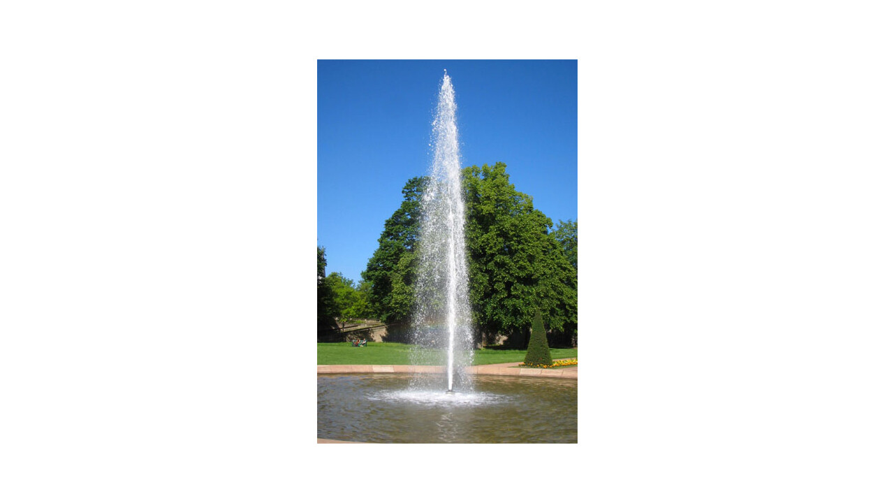 Форсунка Geyser Jet создает на выходе струю, которая благодаря инжекции смешивается с воздухом. В итоге фонтанная фигура представляет собой столб вспененной белой воды, которая при относительно небольшом расходе и давлении достигает большой высоты. Насадка Geyser Jet укомплектована шаровым соединением для регулировки угла наклона. Данный тип насадок выполнен из комбинации двух металлов, а именно латуни и нержавеющей стали.
