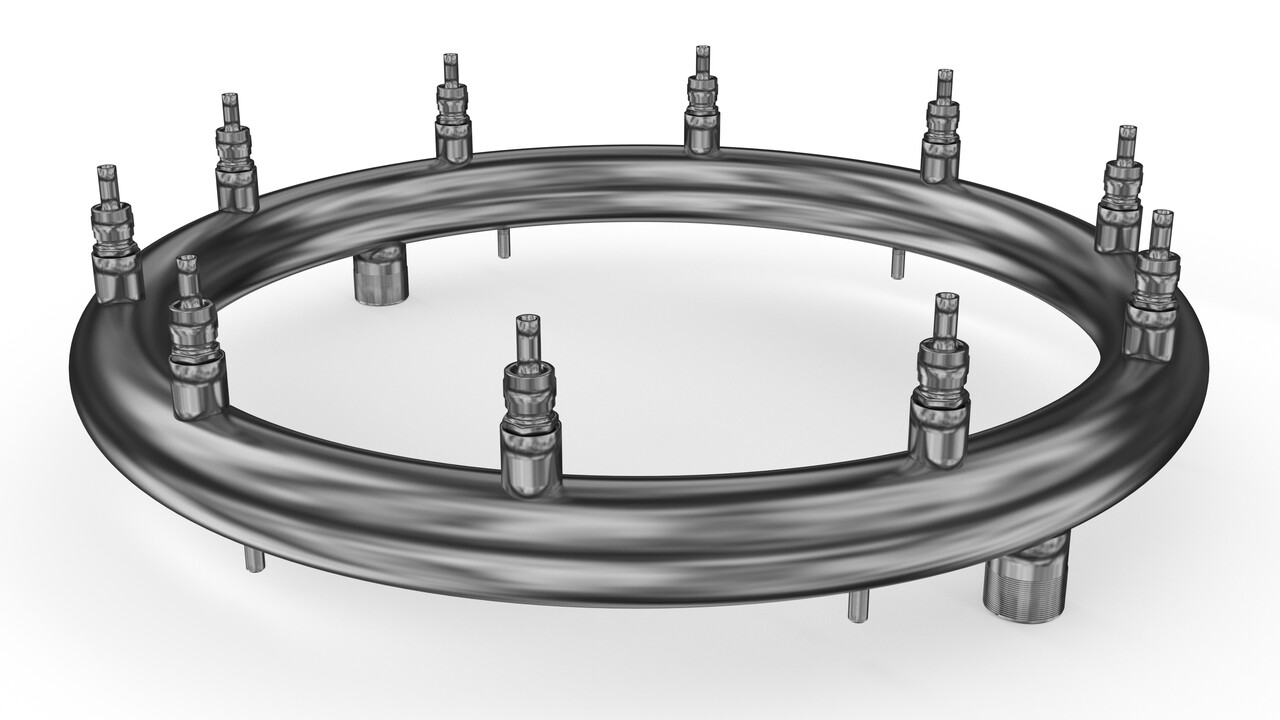 Тесно сотрудничая с нашими клиентами на протяжении многих лет, мы разработали серию фонтанных колец с диаметром форсунок 6 мм и 8 мм. Кольца Astral Ring отвечает всем требованиям классических архитектурных фонтанов. Регулируемые форсунки способны создавать разнообразные формы и комбинации струй: купол, столб, арки, узоры и т.д.. Благодаря разнообразным эффектам, фонтанные кольца находят свое применение в музыкальных, динамических, пешеходных и плавающих фонтанах. Для красивого водного рисунка важно не только количество насадок, но и их диаметр, количество входов правильного подсоединения, диаметр самой трубы распределителя и т.д.