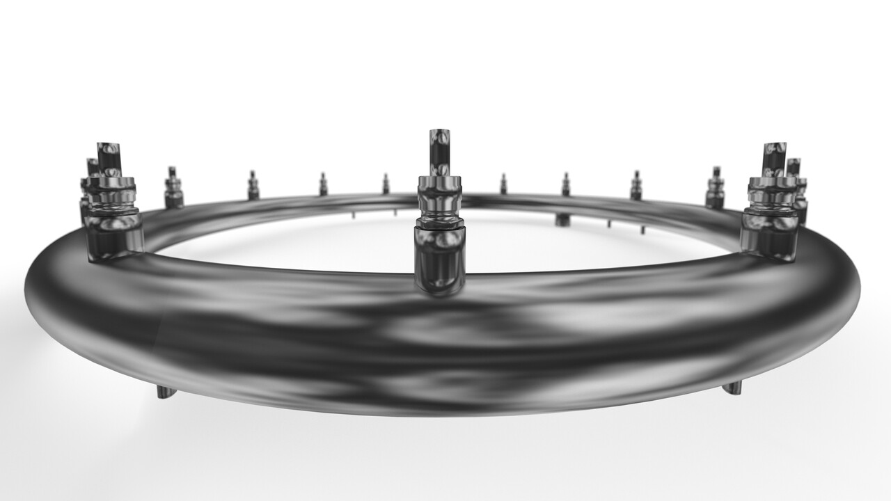 Тесно сотрудничая с нашими клиентами на протяжении многих лет, мы разработали серию фонтанных колец с диаметром форсунок 6 мм и 8 мм. Кольца Astral Ring отвечает всем требованиям классических архитектурных фонтанов. Регулируемые форсунки способны создавать разнообразные формы и комбинации струй: купол, столб, арки, узоры и т.д.. Благодаря разнообразным эффектам, фонтанные кольца находят свое применение в музыкальных, динамических, пешеходных и плавающих фонтанах. Для красивого водного рисунка важно не только количество насадок, но и их диаметр, количество входов правильного подсоединения, диаметр самой трубы распределителя и т.д.