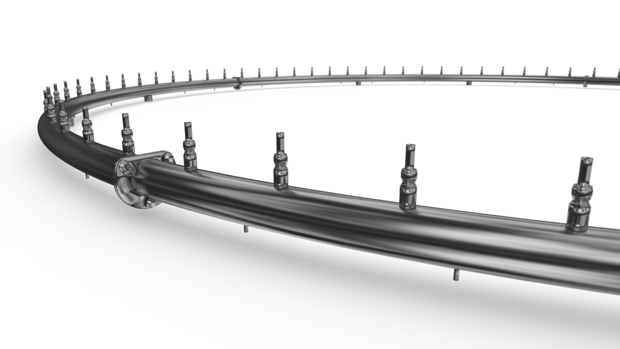 Тесно сотрудничая с нашими клиентами на протяжении многих лет, мы разработали серию фонтанных колец с диаметром форсунок 6 мм и 8 мм. Кольца Astral Ring отвечает всем требованиям классических архитектурных фонтанов. Регулируемые форсунки способны создавать разнообразные формы и комбинации струй: купол, столб, арки, узоры и т.д.. Благодаря разнообразным эффектам, фонтанные кольца находят свое применение в музыкальных, динамических, пешеходных и плавающих фонтанах. Для красивого водного рисунка важно не только количество насадок, но и их диаметр, количество входов правильного подсоединения, диаметр самой трубы распределителя и т.д.