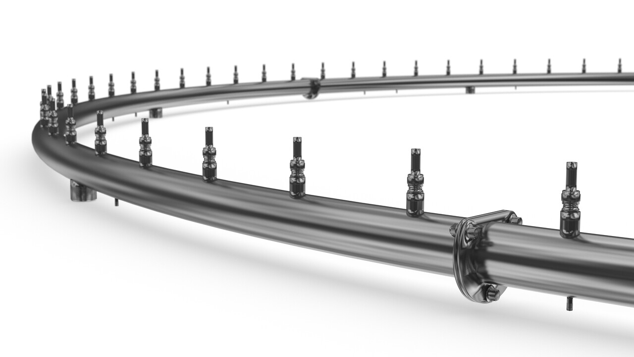 Тесно сотрудничая с нашими клиентами на протяжении многих лет, мы разработали серию фонтанных колец с диаметром форсунок 6 мм и 8 мм. Кольца Astral Ring отвечает всем требованиям классических архитектурных фонтанов. Регулируемые форсунки способны создавать разнообразные формы и комбинации струй: купол, столб, арки, узоры и т.д.. Благодаря разнообразным эффектам, фонтанные кольца находят свое применение в музыкальных, динамических, пешеходных и плавающих фонтанах. Для красивого водного рисунка важно не только количество насадок, но и их диаметр, количество входов правильного подсоединения, диаметр самой трубы распределителя и т.д.