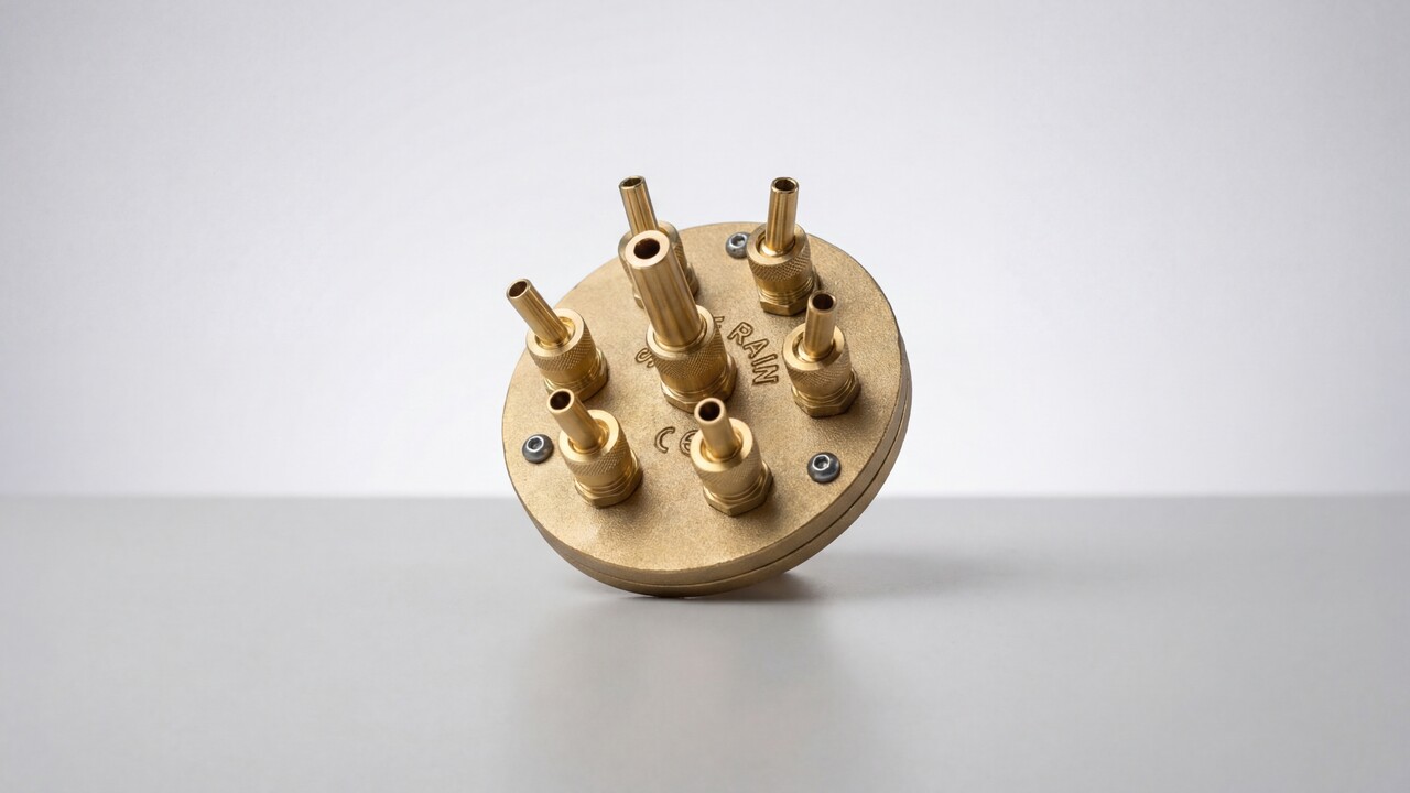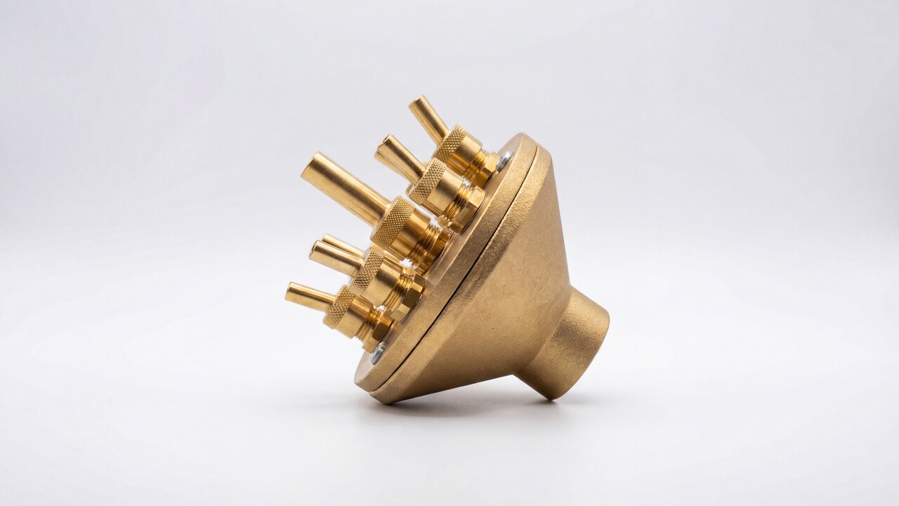 Насадка для фонтана Crown Special состоит из отдельных сопел установленных таким образом, что создается рисунок из струй воды на разной высоте и под разным углом наклона. Конструкция форсунки имеет встроенный распределитель потока для получения эффектной многоуровневой водной картины в виде цветка или букета. Такая форсунка при монтаже не требует отдельного шарового соединения для установки ее в вертикальном положении, т.к. все сопла имеют собственную регулировку угла наклона. За счет этого можно наклонить периферийные сопла, в значимости от модели форсунки, в пределах от 12º до 18º и создать свой индивидуальный рисунок фонтана.