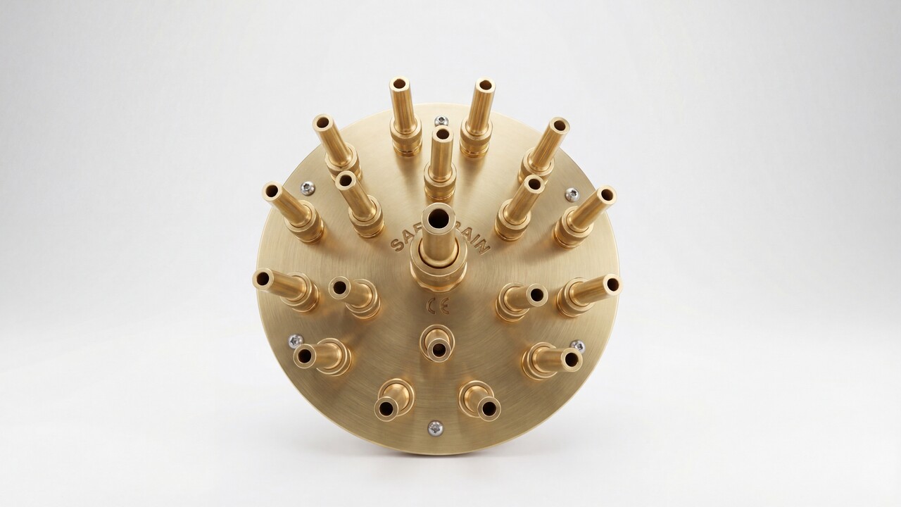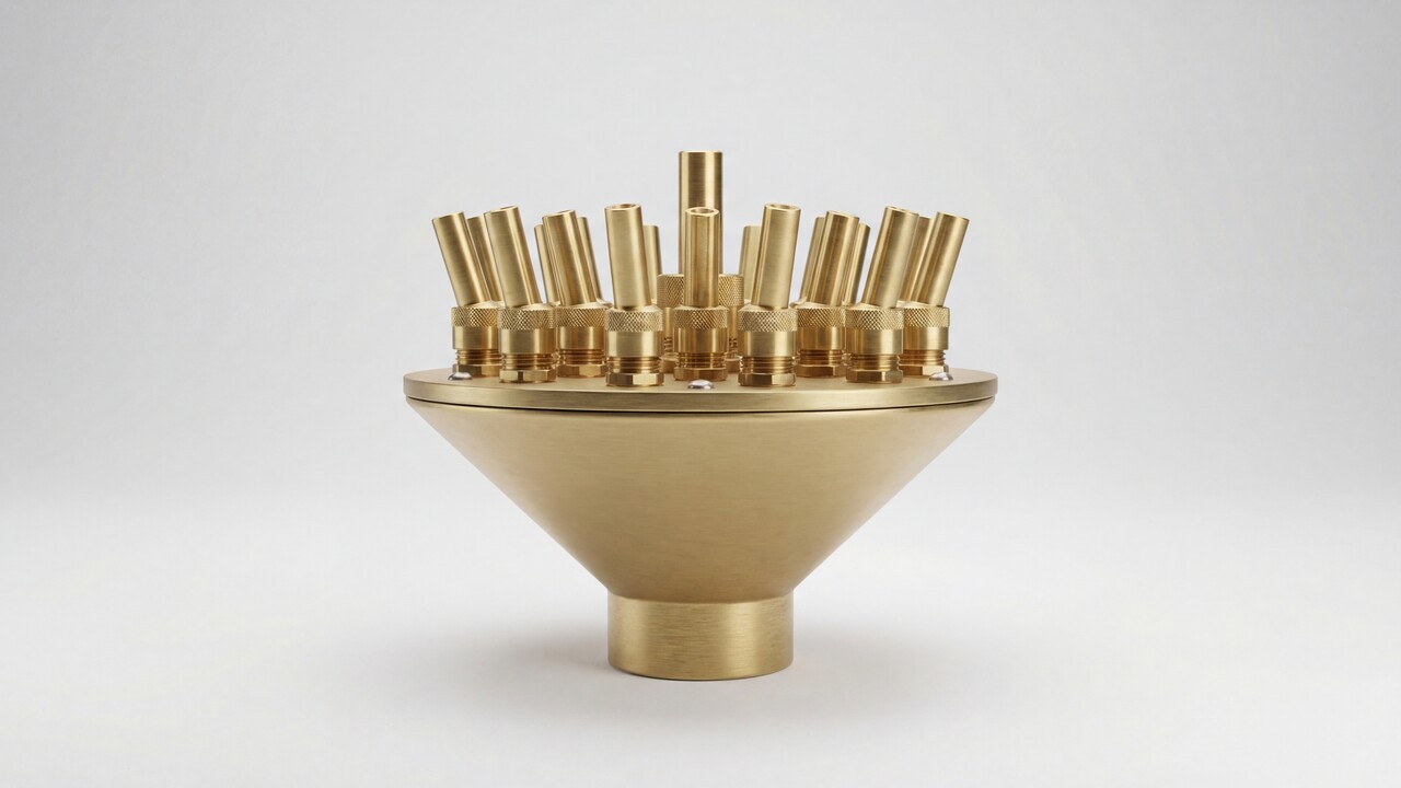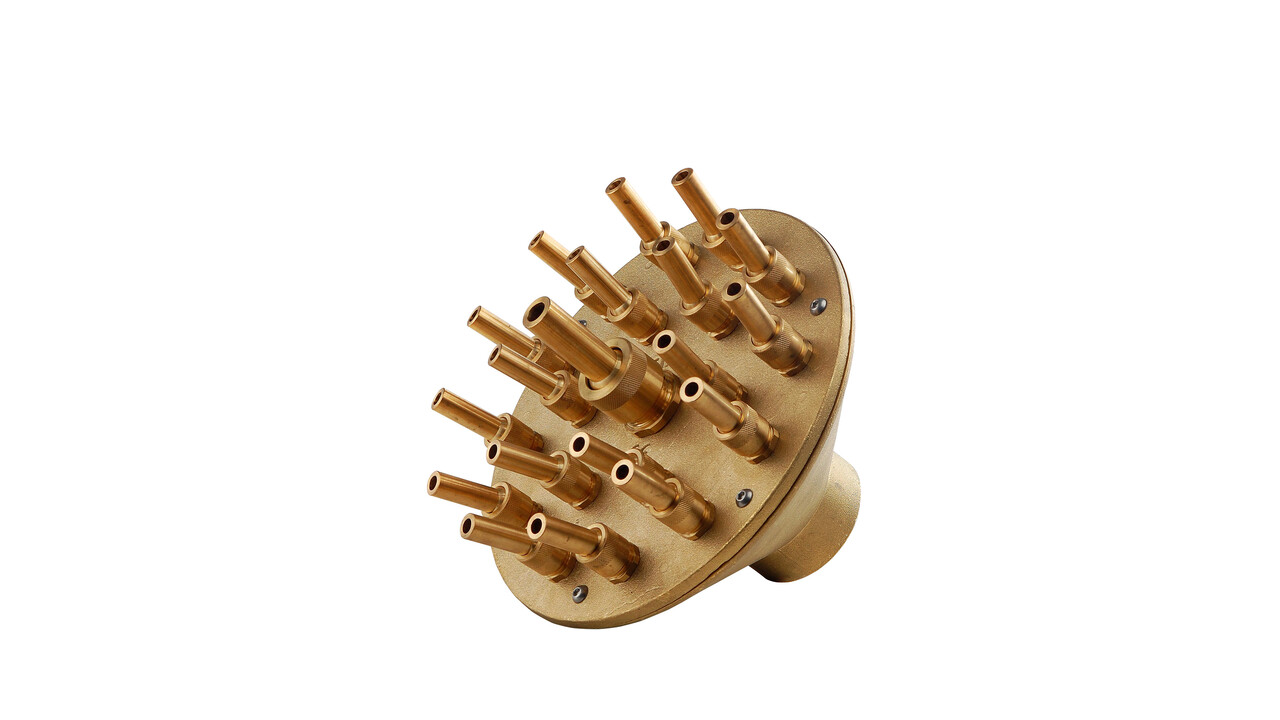 Насадка для фонтана Crown Special состоит из отдельных сопел установленных таким образом, что создается рисунок из струй воды на разной высоте и под разным углом наклона. Конструкция форсунки имеет встроенный распределитель потока для получения эффектной многоуровневой водной картины в виде цветка или букета. Такая форсунка при монтаже не требует отдельного шарового соединения для установки ее в вертикальном положении, т.к. все сопла имеют собственную регулировку угла наклона. За счет этого можно наклонить периферийные сопла, в значимости от модели форсунки, в пределах от 12º до 18º и создать свой индивидуальный рисунок фонтана.