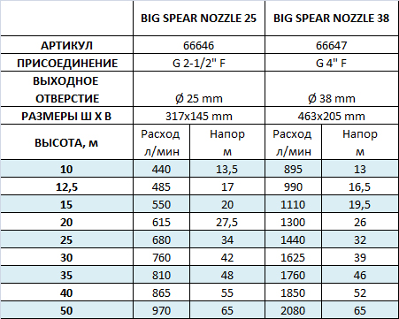 Форсунки серии Spear Big Nozzle предназначены для создания высоких струй в больших фонтанах. Эта серия используется как в качестве одиночной центральной струи в вертикальном положении, так и в группах, например по периметру фонтана с эффектом параболы. Надежная конструкция форсунки и ее крепкое шаровое соединение выдерживает высокое давление насоса и не меняет своего положения в течение сезона работы фонтана.